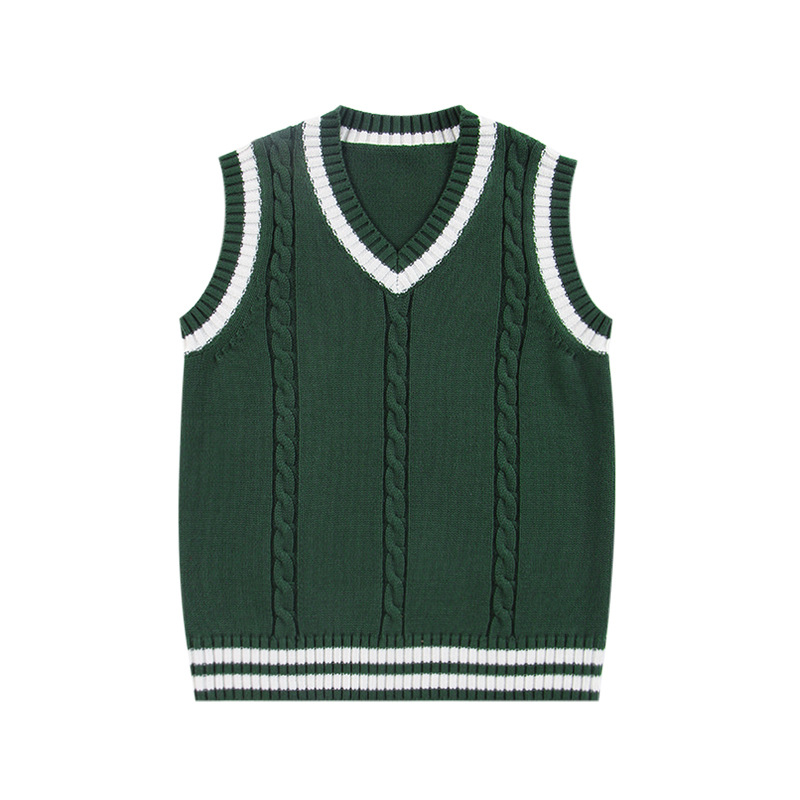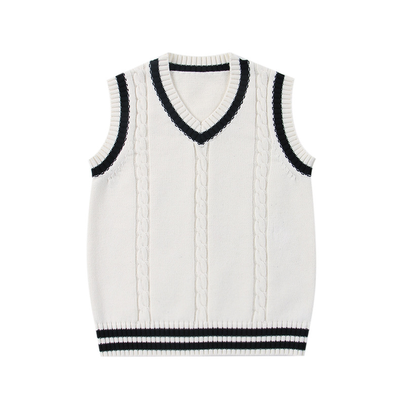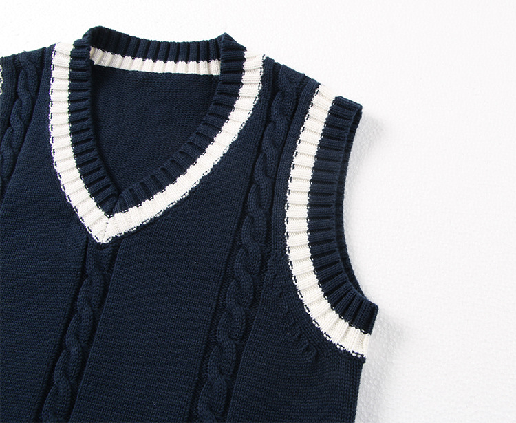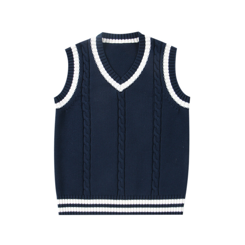대학 스타일의 니트 조끼 여성 2024 봄과 가을 새 스웨터 오버레이 민소매 탑 울 스쿨 유니폼스토어 가기