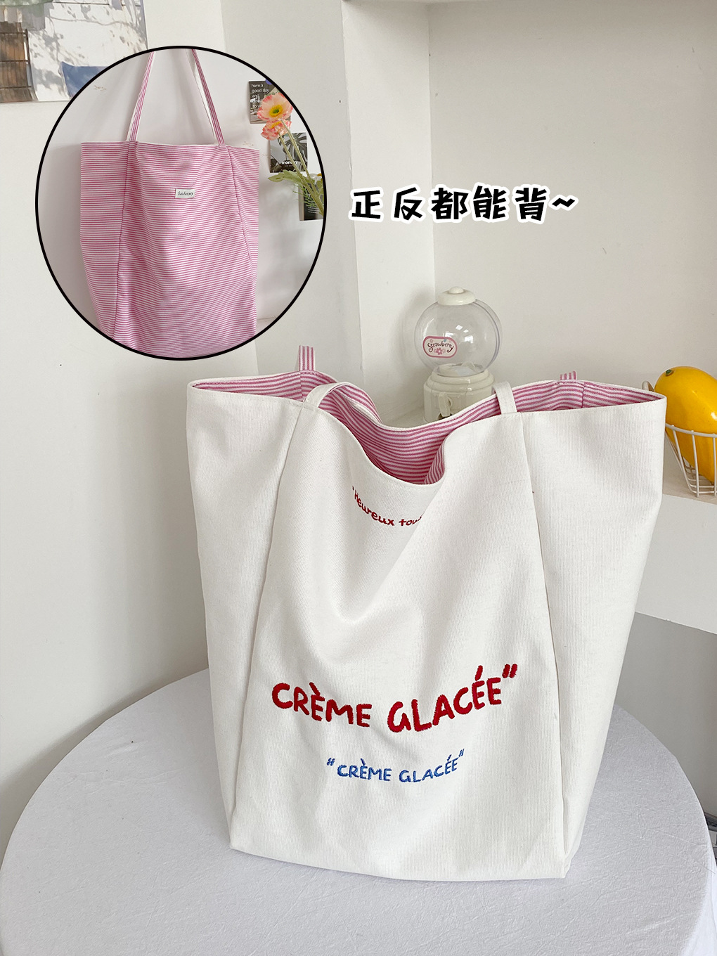 줄무늬 캔버스 가방 2024 새로운 한국 스타일 인 토트 캐주얼 가방 어깨 대용량 토트 백 쇼핑백