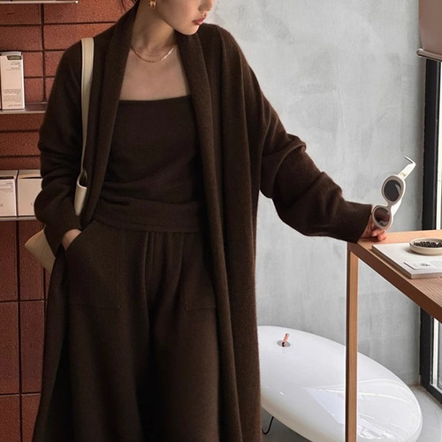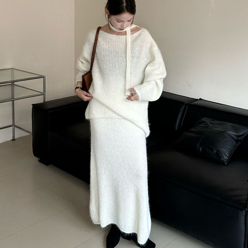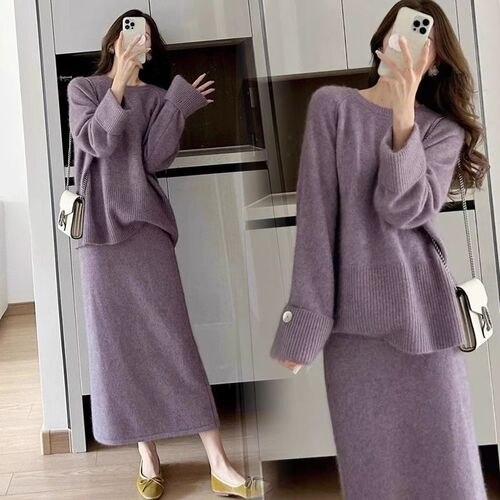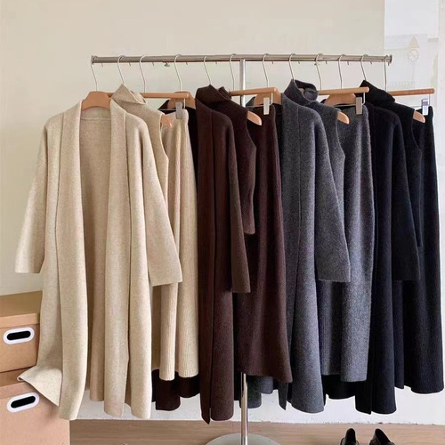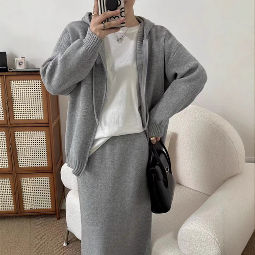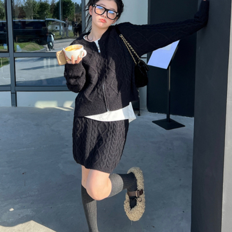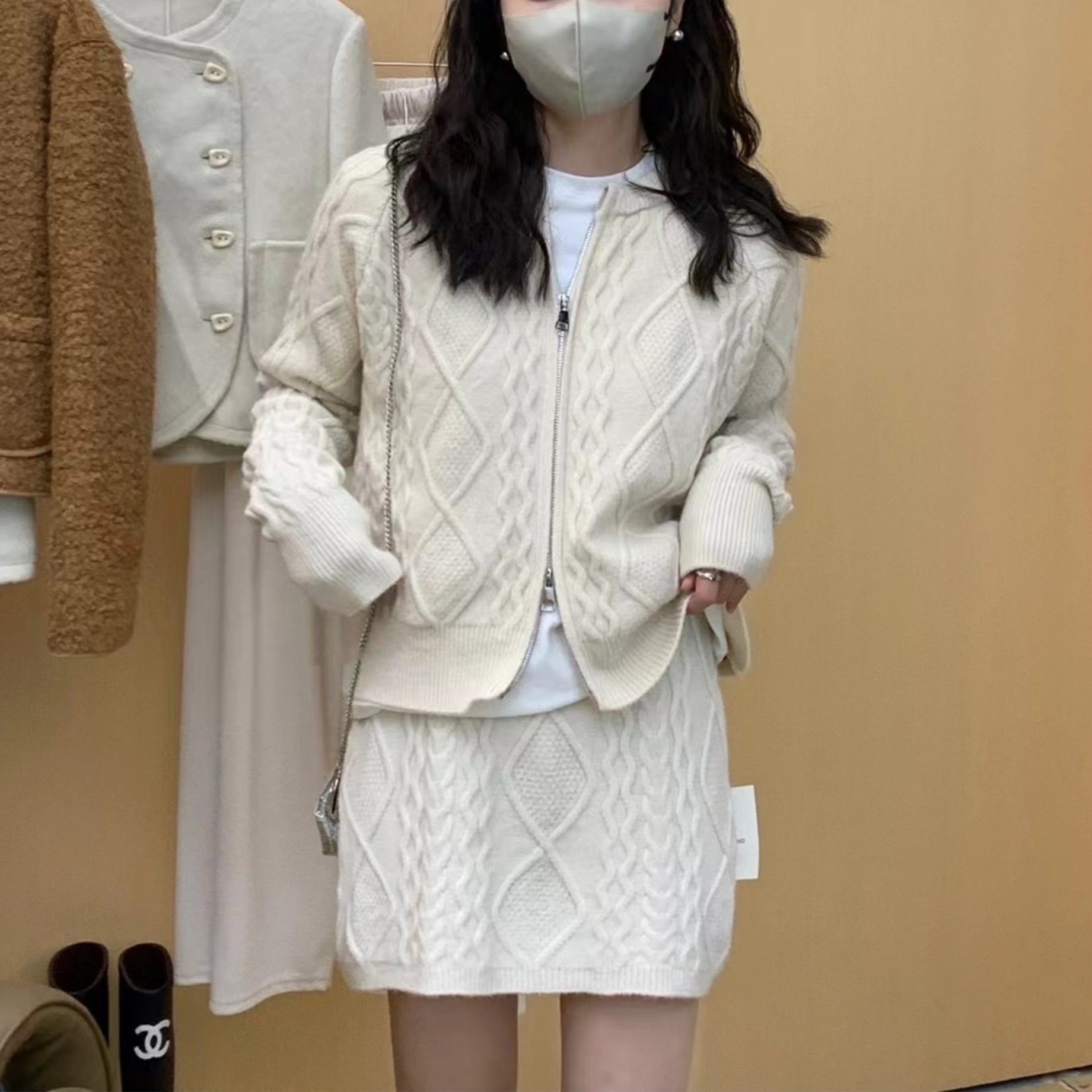 가을과 겨울 도시 레트로 캐주얼 니트웨어 세트 여성용 지퍼 스웨터 카디건 재킷 하프 스커트 투피스 세트스토어 가기