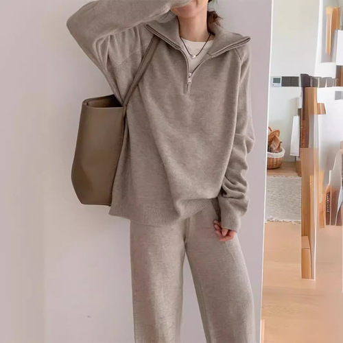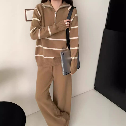 가을과 겨울 도시 레트로 캐주얼 니트웨어 세트 여성용 지퍼 스웨터 카디건 재킷 하프 스커트 투피스 세트