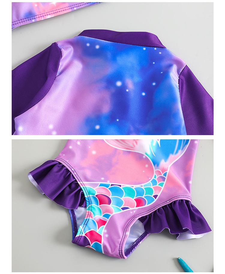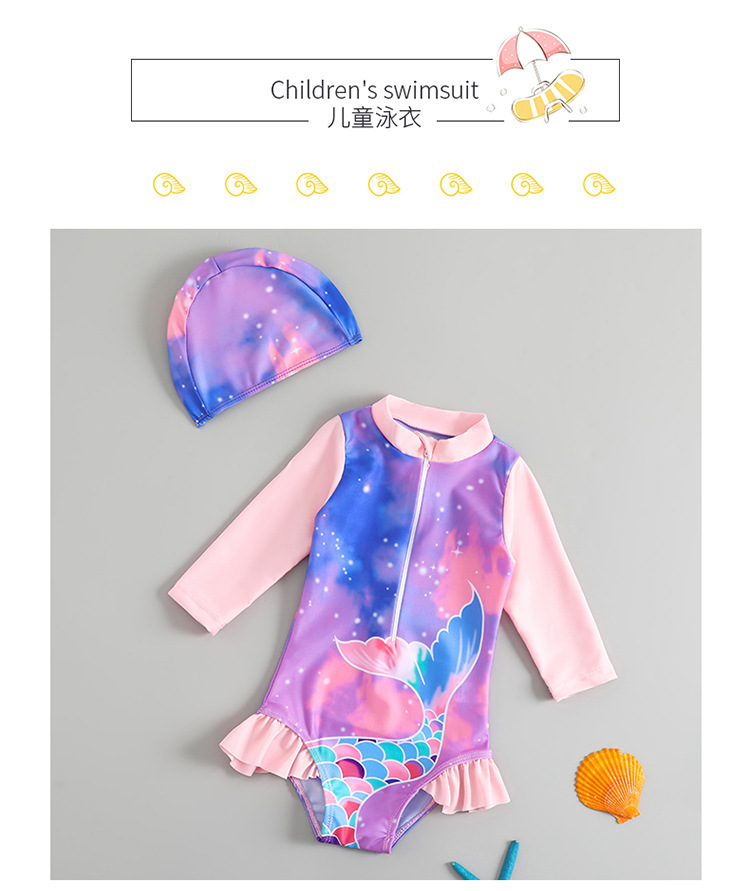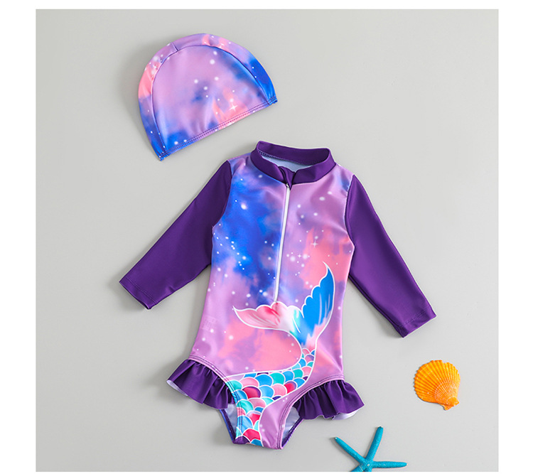 2024 새로운 어린이 수영복 긴팔 빠른 건조 선 스크린 소녀 인어 귀여운 아기 인쇄 수영복