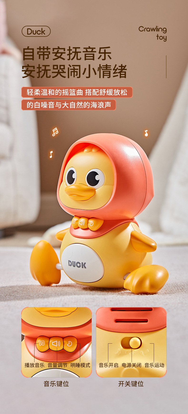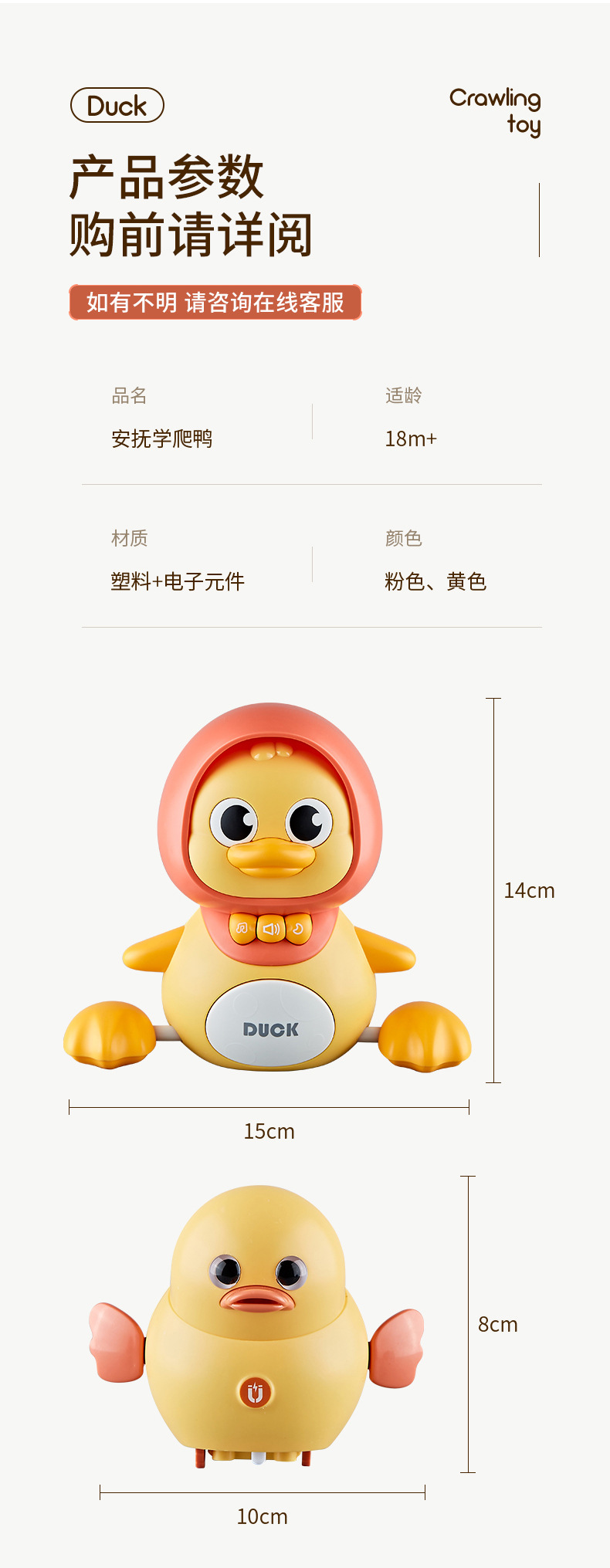 如不是因为质量问题,产品退回都需扣除发出运费,下单须知!电池使用:小鸭子:2节7号电池(需自备)/鸭妈妈:3节5号电池(需自备)