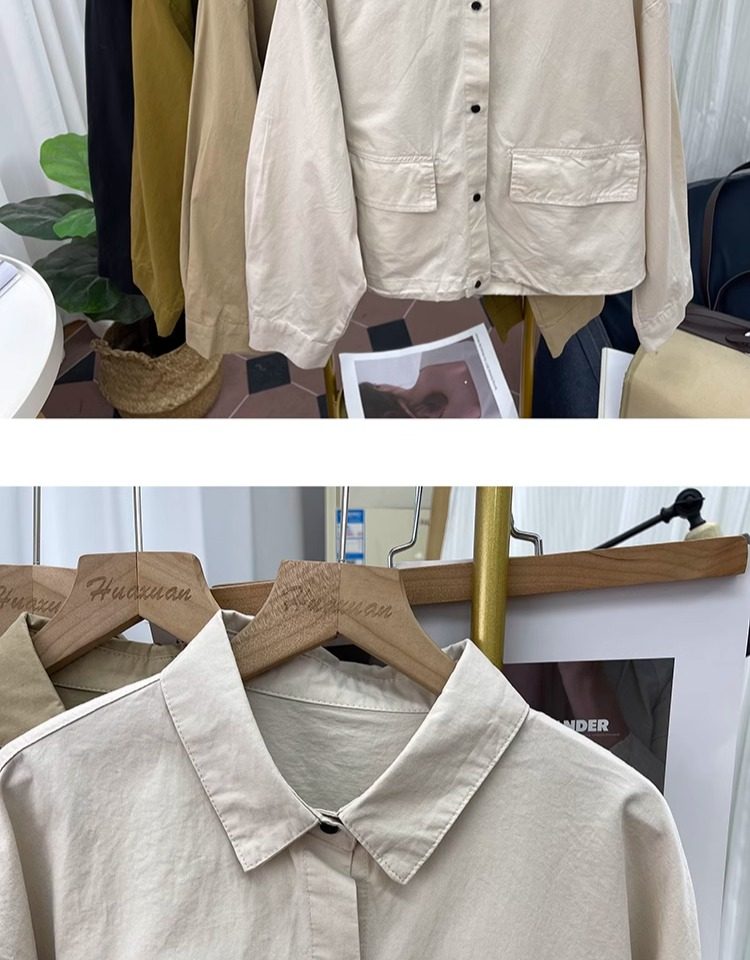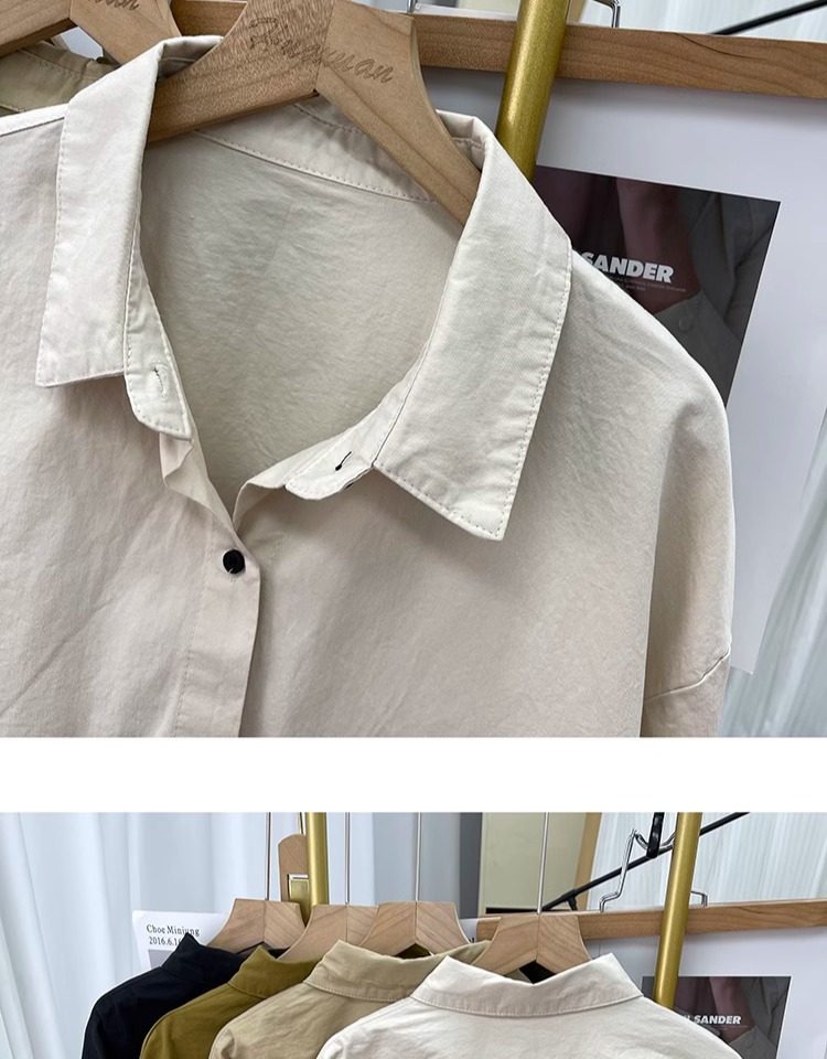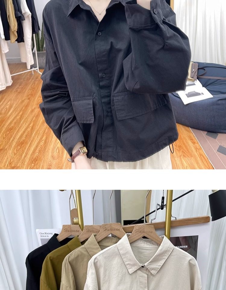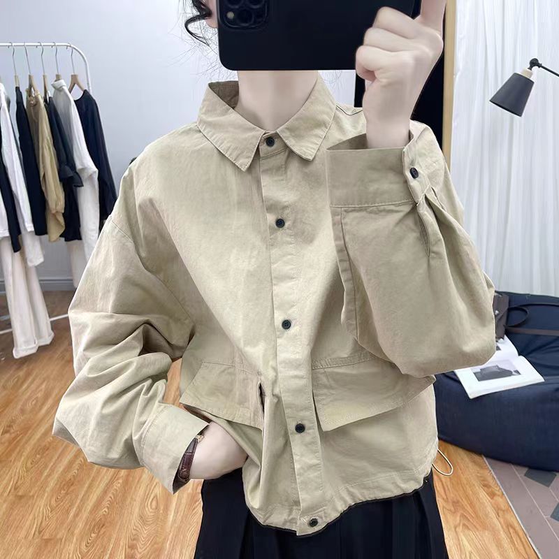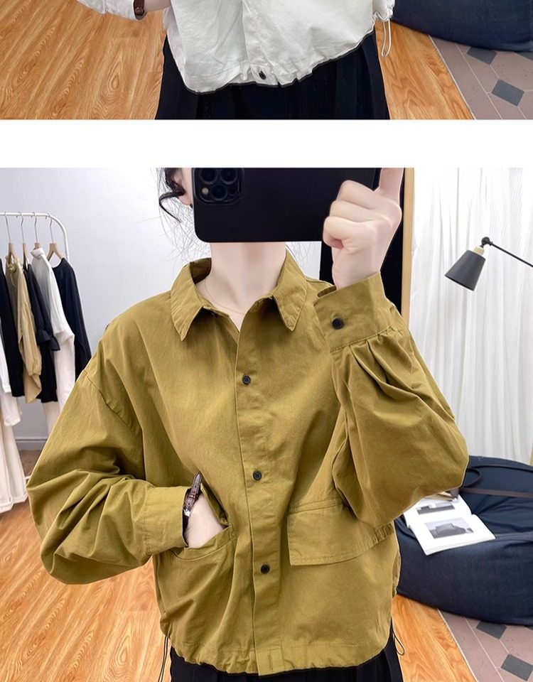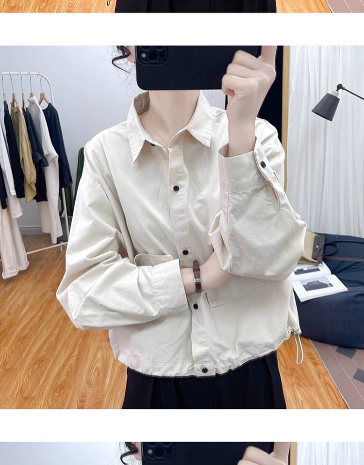 2024 가을 디자인 센스 짧은 느슨한 긴팔 셔츠 여성용 폴로 칼라 탑 끈 셔츠스토어 가기