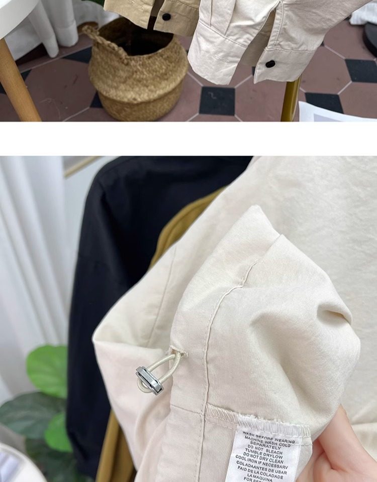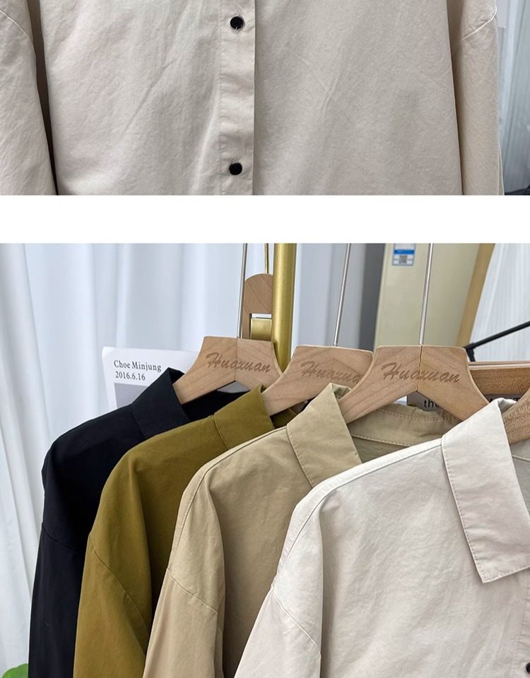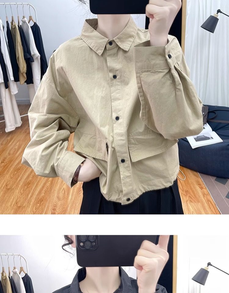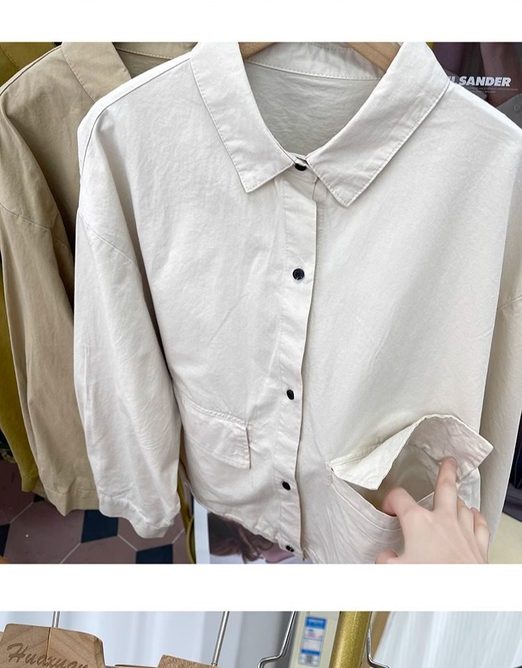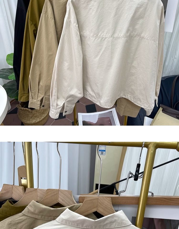 2024 가을 디자인 센스 짧은 느슨한 긴팔 셔츠 여성용 폴로 칼라 탑 끈 셔츠스토어 가기