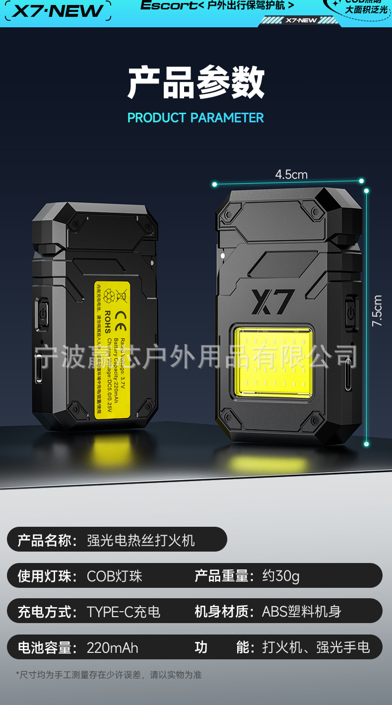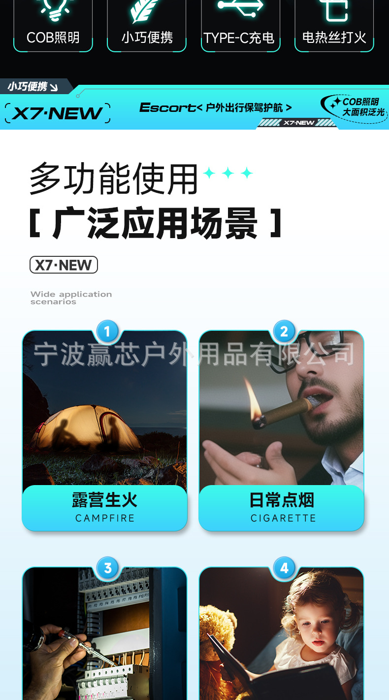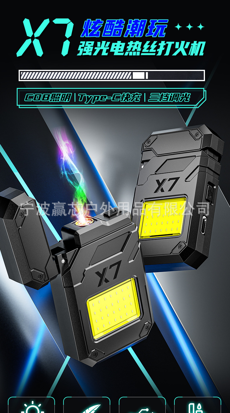 한 X7 휴대용 전기 와이어 라이터에서 충전 뜨거운 판매 전기 와이어 라이터 강한 조명스토어 가기