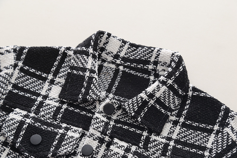 • 블랙 더블 포켓 체크 긴 소매 3 조각 세트