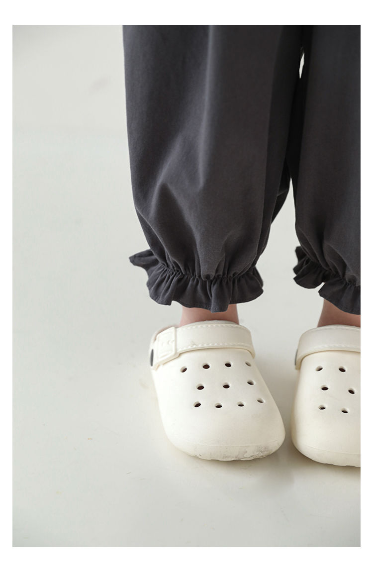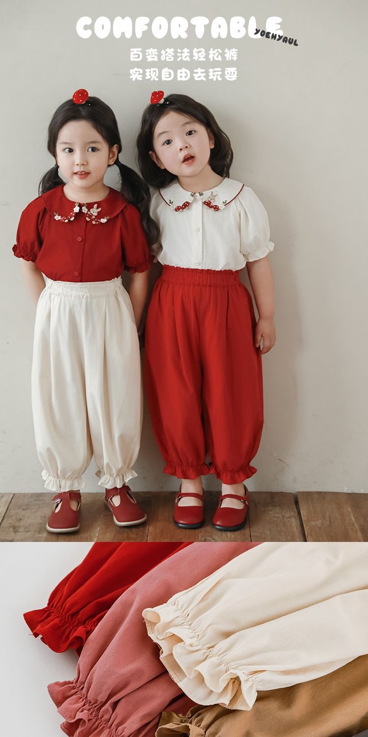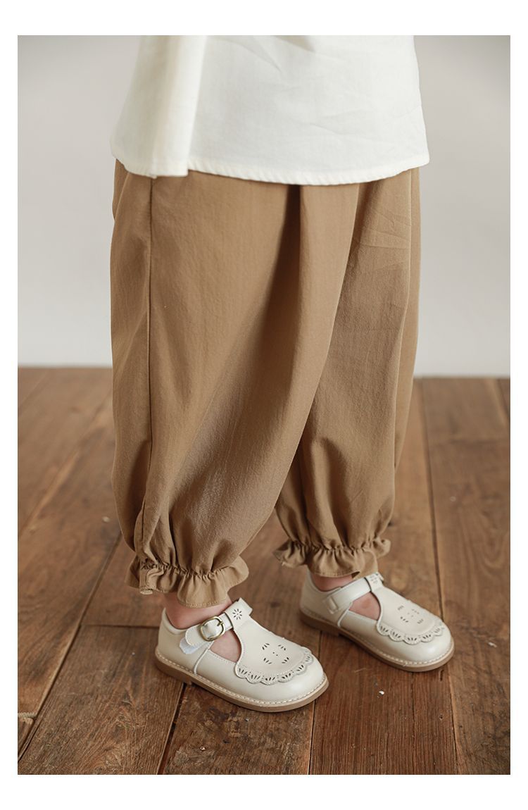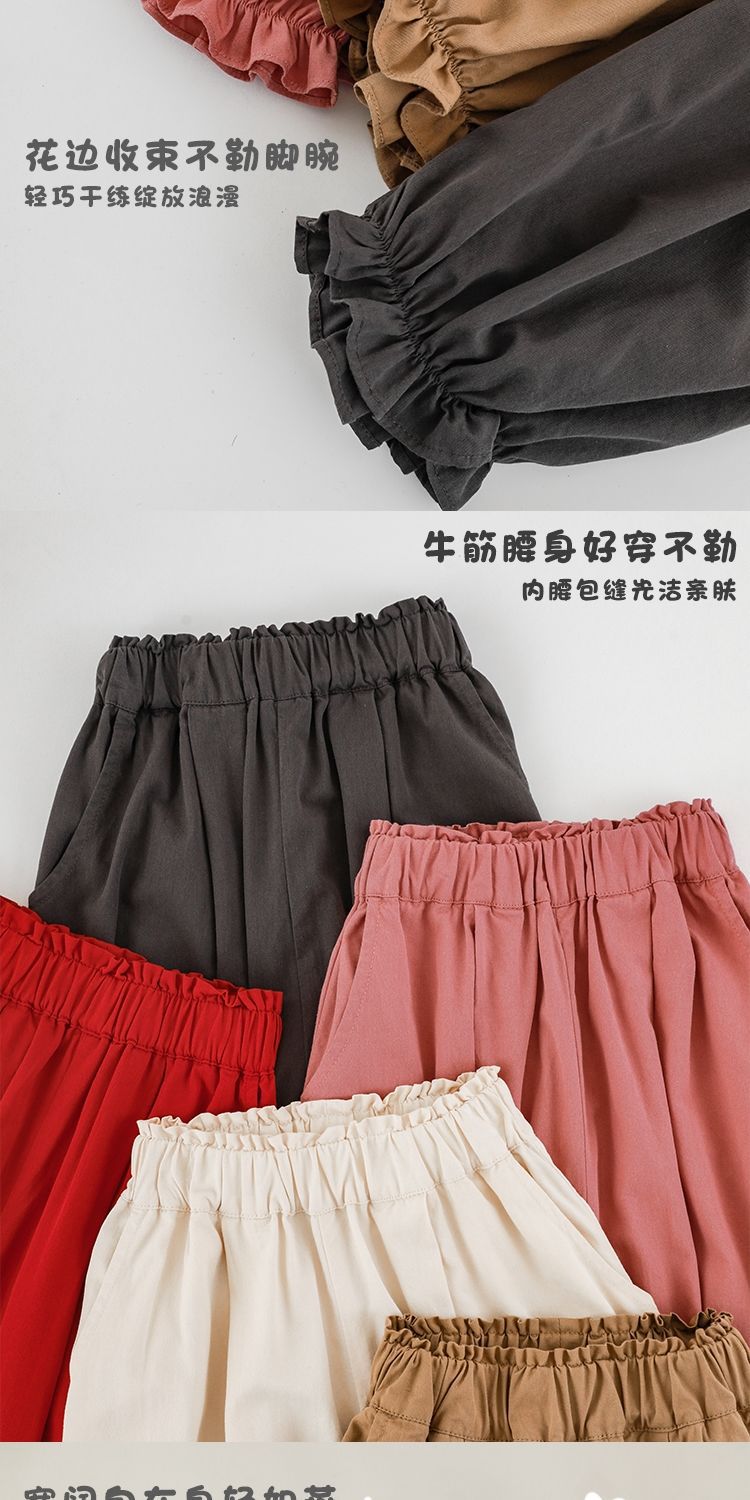 Wulibuyi Girls 2025 새로운 여름 솔리드 컬러 레깅스 어린이의 활력 귀여운 통기성 레이스 캐주얼 바지