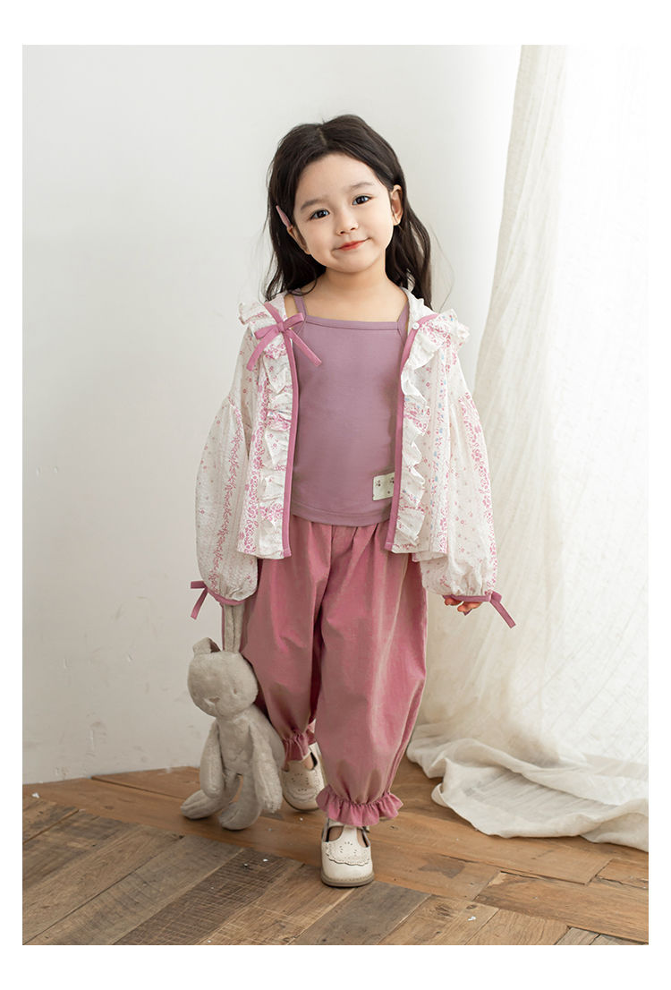 Wulibuyi Girls 2025 새로운 여름 솔리드 컬러 레깅스 어린이의 활력 귀여운 통기성 레이스 캐주얼 바지스토어 가기