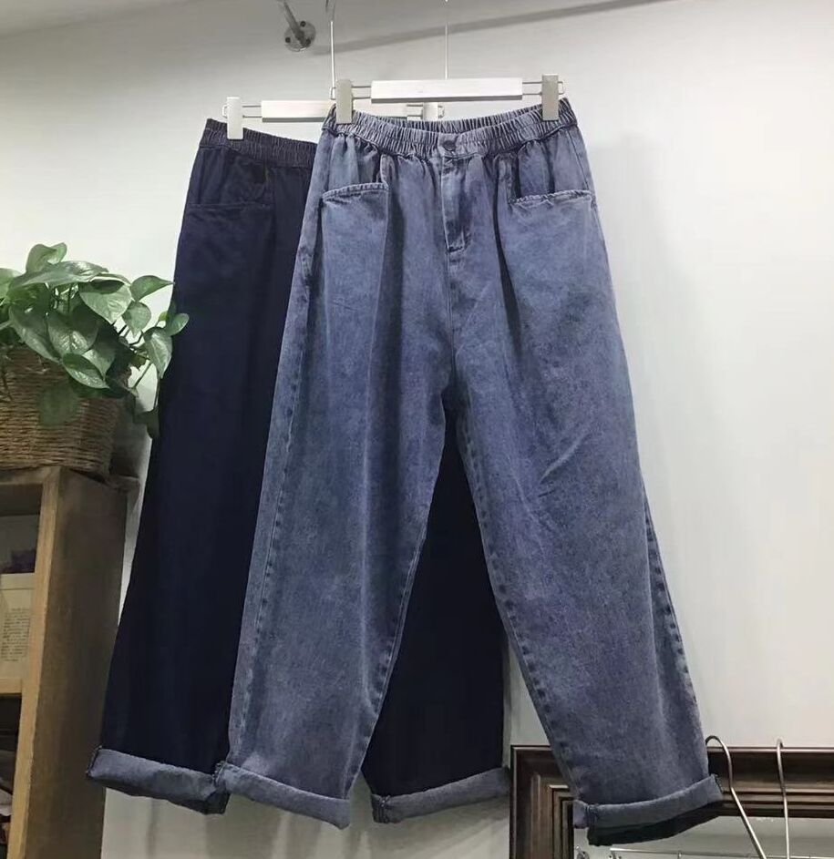 2023 년 봄 뉴 워시 청바지 통근 기본 올 매치 캐주얼 탄성 허리 할란 바지스토어 가기