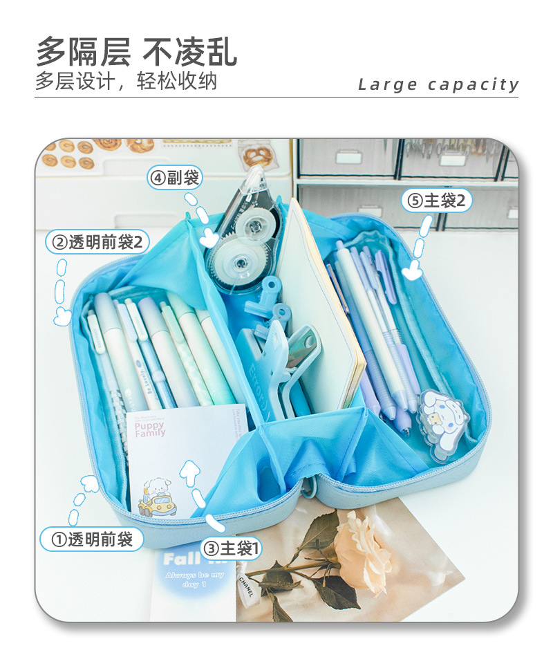 화산 연필 케이스 투명 Ins 더블 레이어 대용량 중학교 소년과 소녀 간단한 높은 가치 연필 케이스 연필 케이스