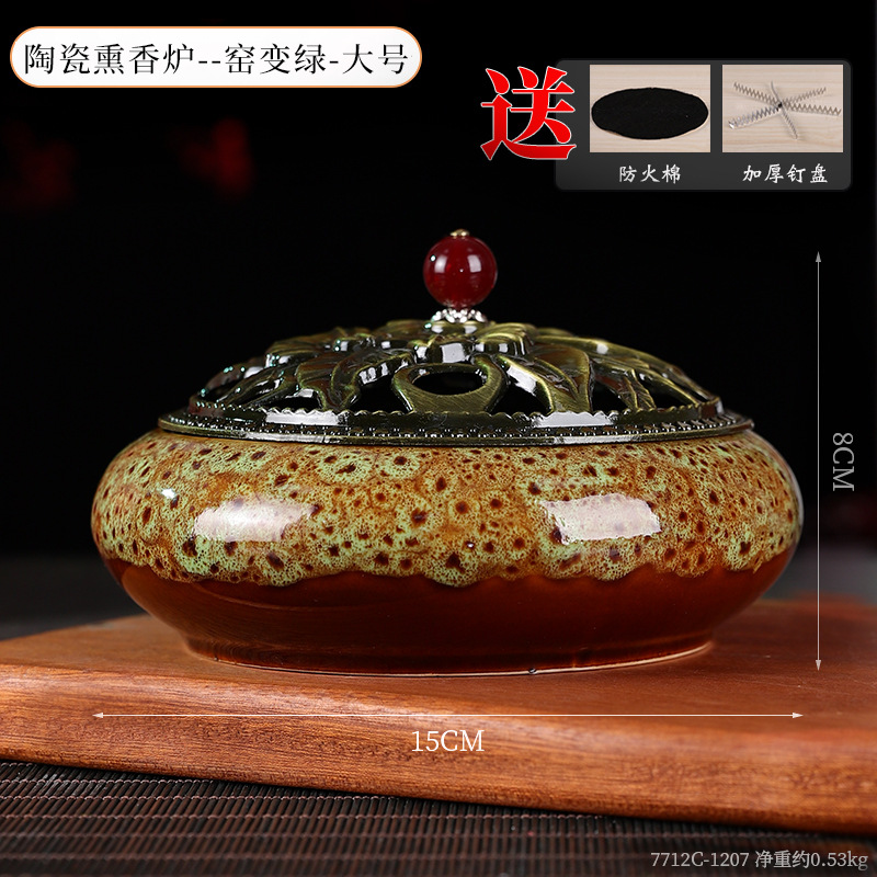 • 7712C-1207 세라믹 향로 - 가마 녹색 - 대형 (방화면 + 네일 트레이 포함)