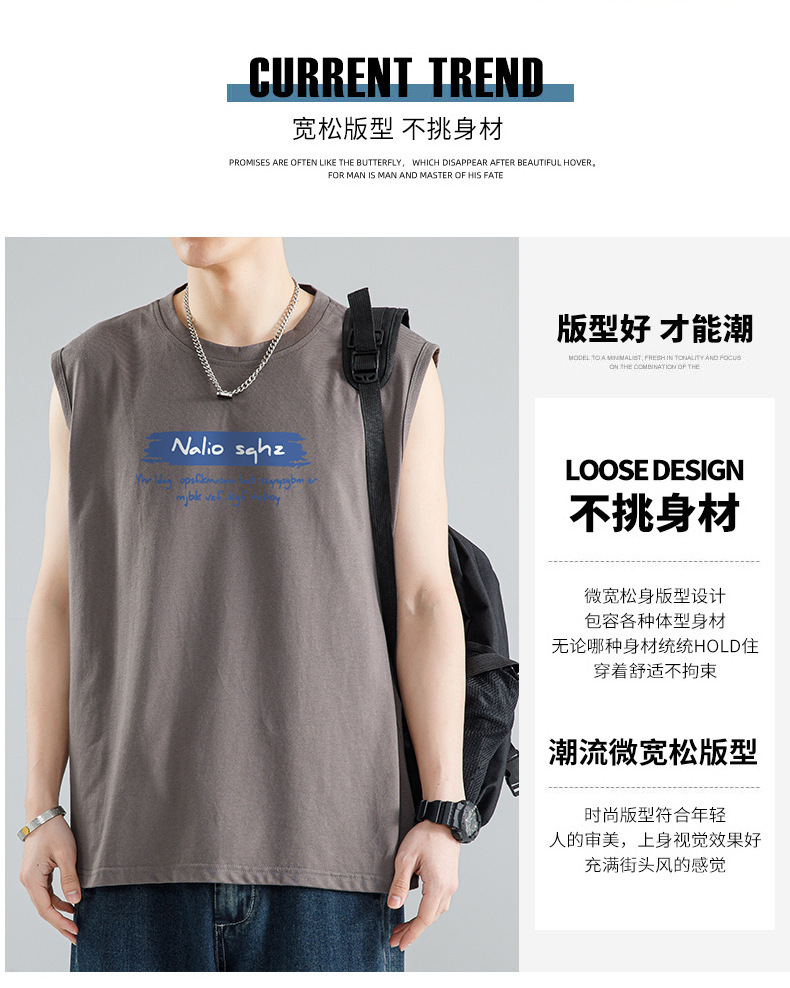 NASA 민소매 티셔츠 남성용 여름 얇은 아이스 실크 패션 브랜드 스포츠 피트니스 허리 코트 느슨한 캐주얼 외부 착용 짧은 소매