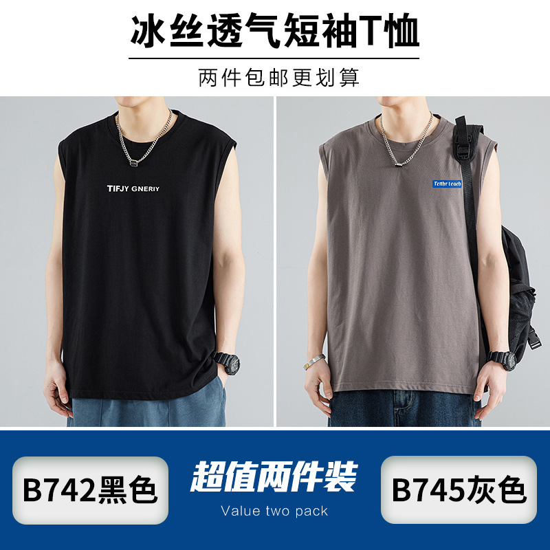 NASA 민소매 티셔츠 남성용 여름 얇은 아이스 실크 패션 브랜드 스포츠 피트니스 허리 코트 느슨한 캐주얼 외부 착용 짧은 소매스토어 가기