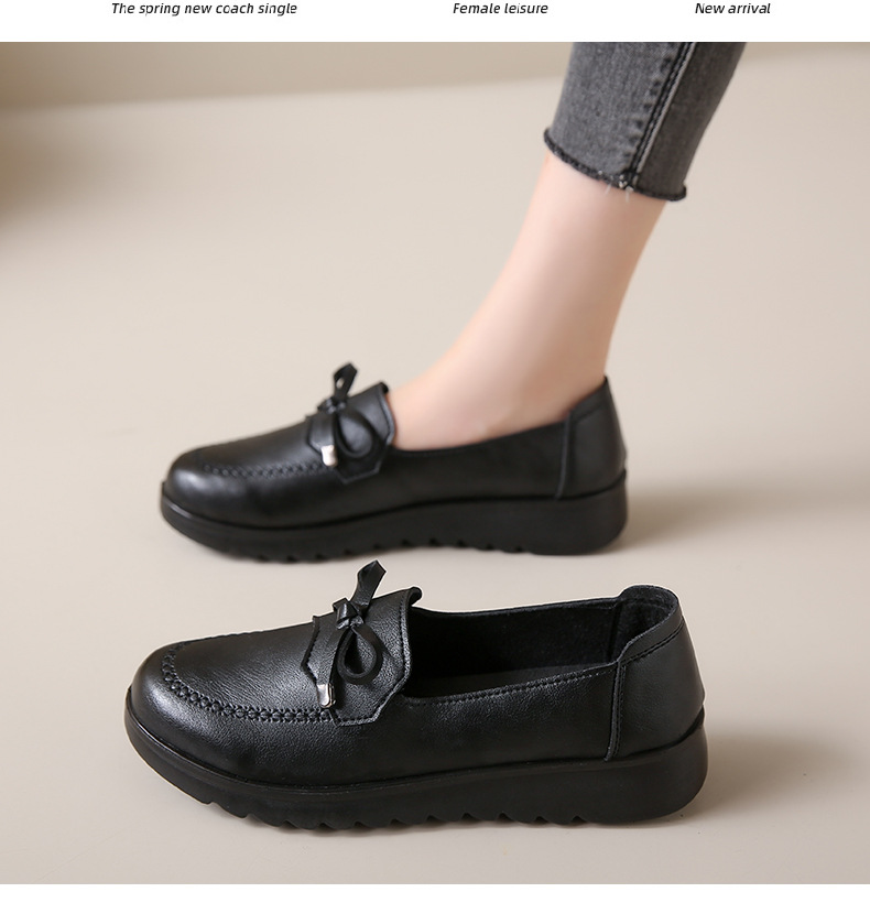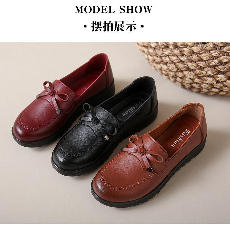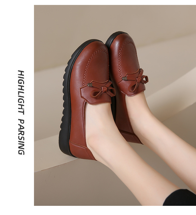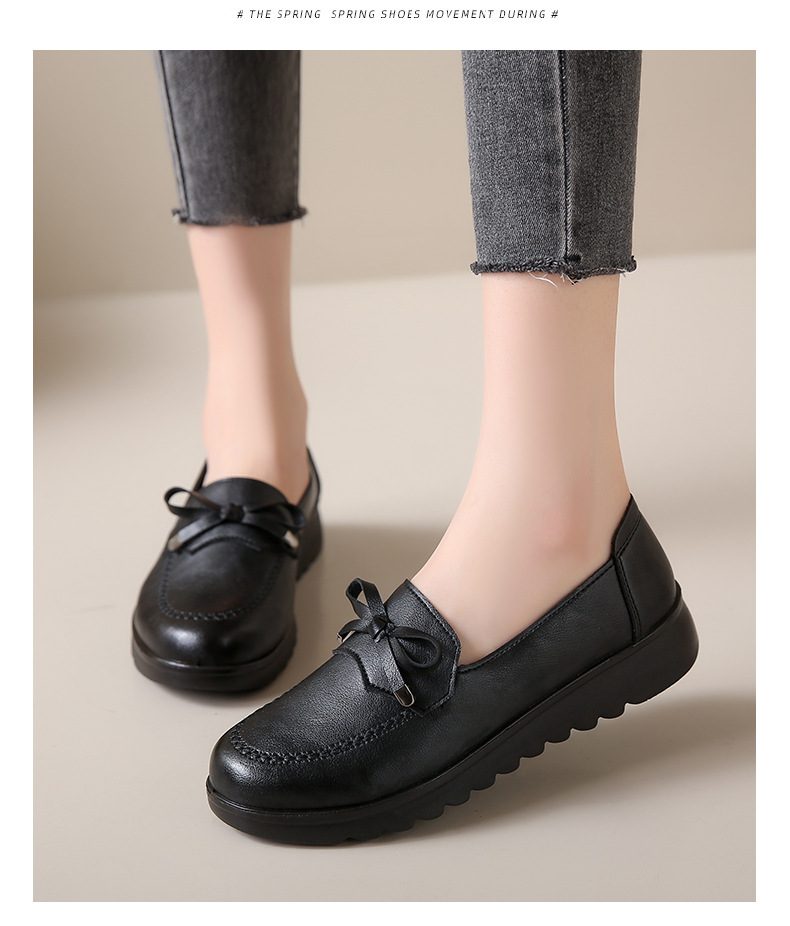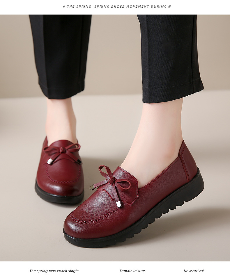봄과 가을 어머니 신발 캐주얼 부드러운 밑창 싱글 레이어 신발 중년 및 노인 가죽 신발 편안한 홈 매일 미끄럼 방지 작업 여성 신발스토어 가기