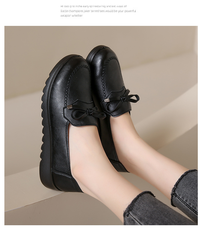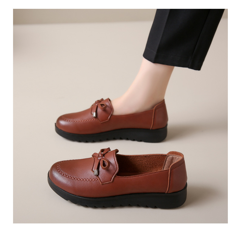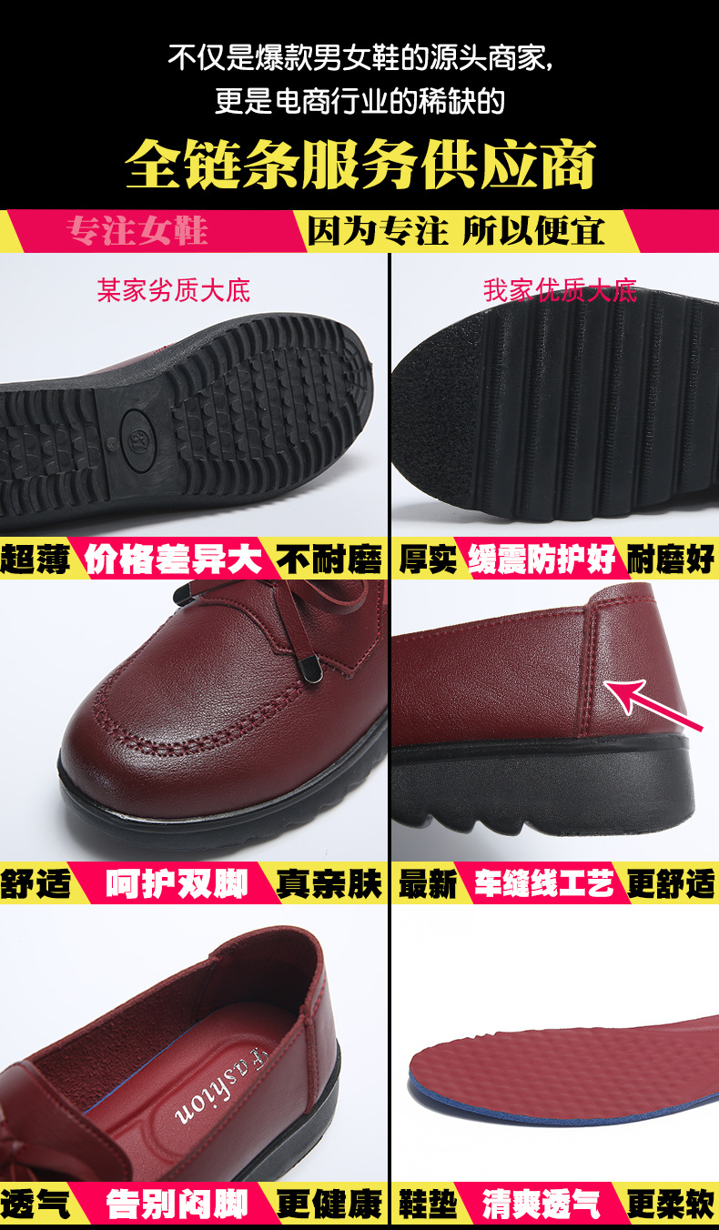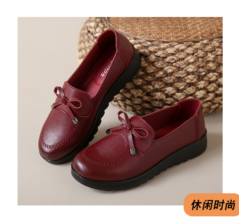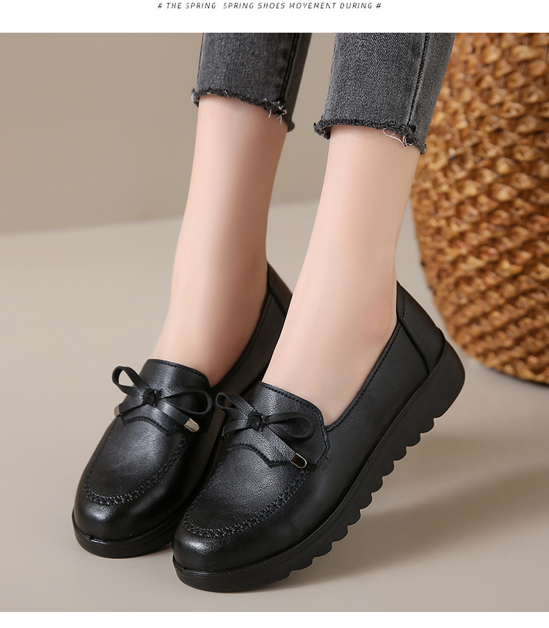 봄과 가을 어머니 신발 캐주얼 부드러운 밑창 싱글 레이어 신발 중년 및 노인 가죽 신발 편안한 홈 매일 미끄럼 방지 작업 여성 신발스토어 가기