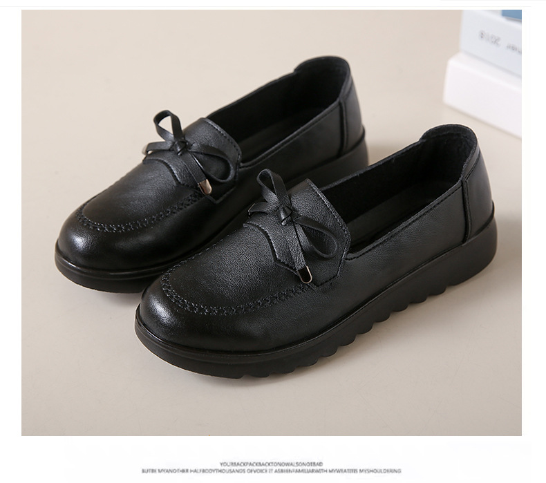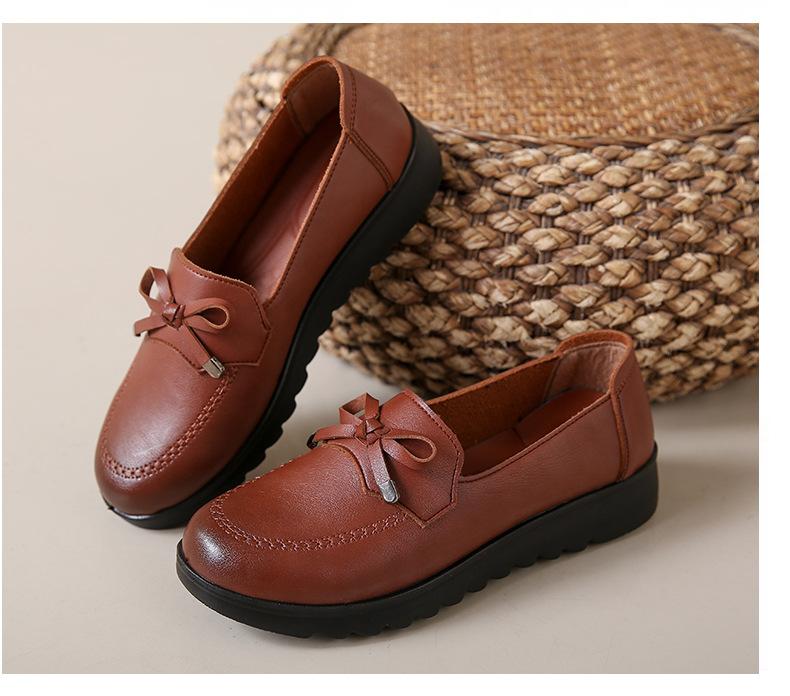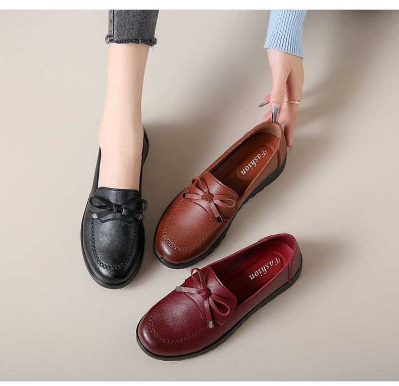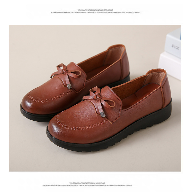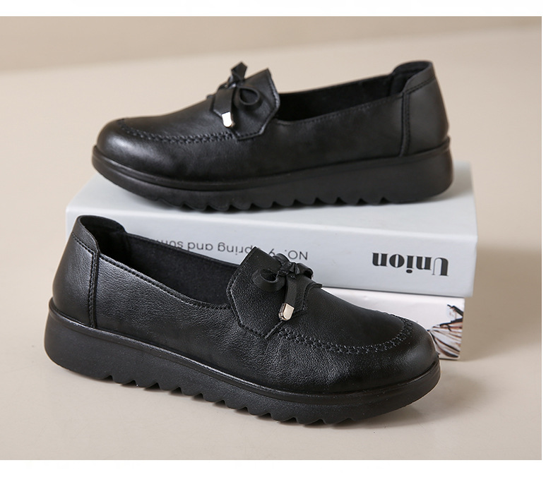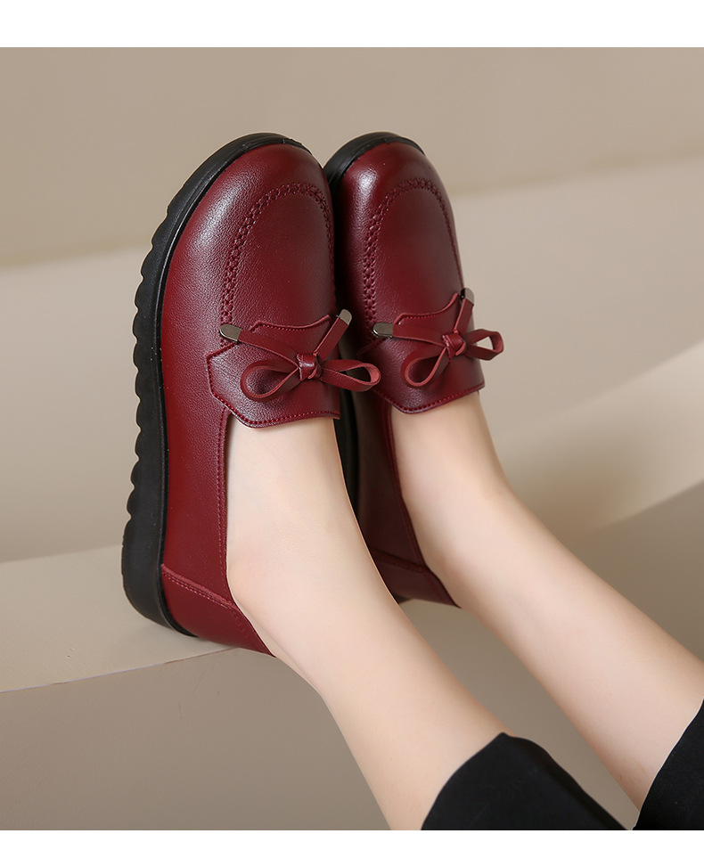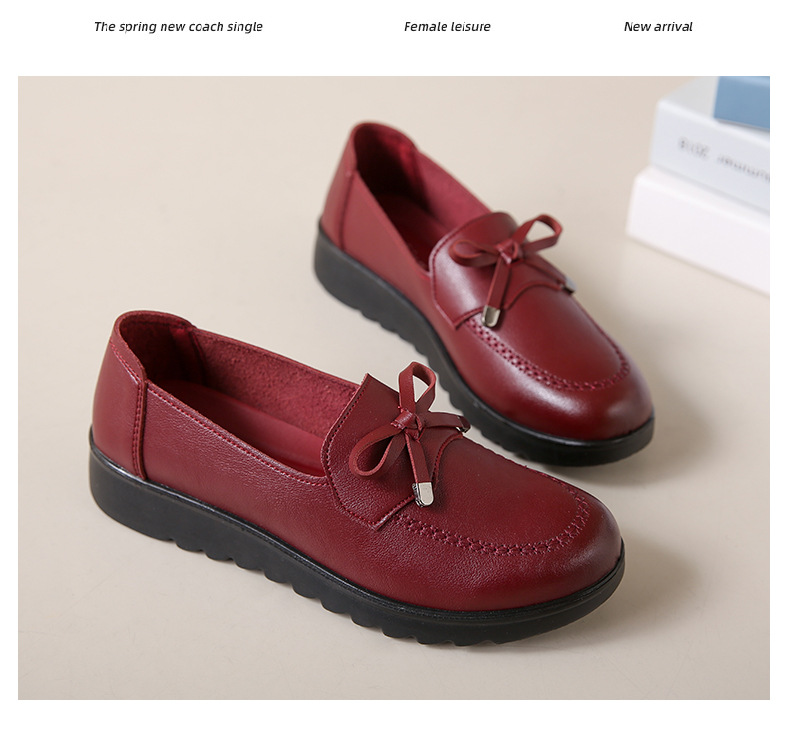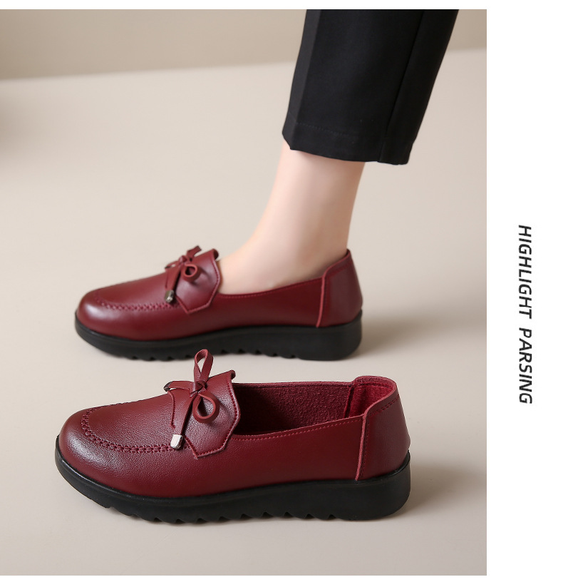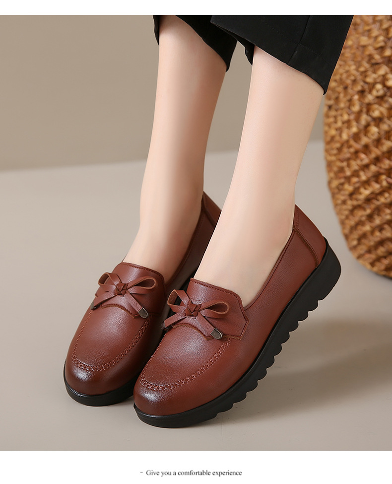 봄과 가을 어머니 신발 캐주얼 부드러운 밑창 싱글 레이어 신발 중년 및 노인 가죽 신발 편안한 홈 매일 미끄럼 방지 작업 여성 신발