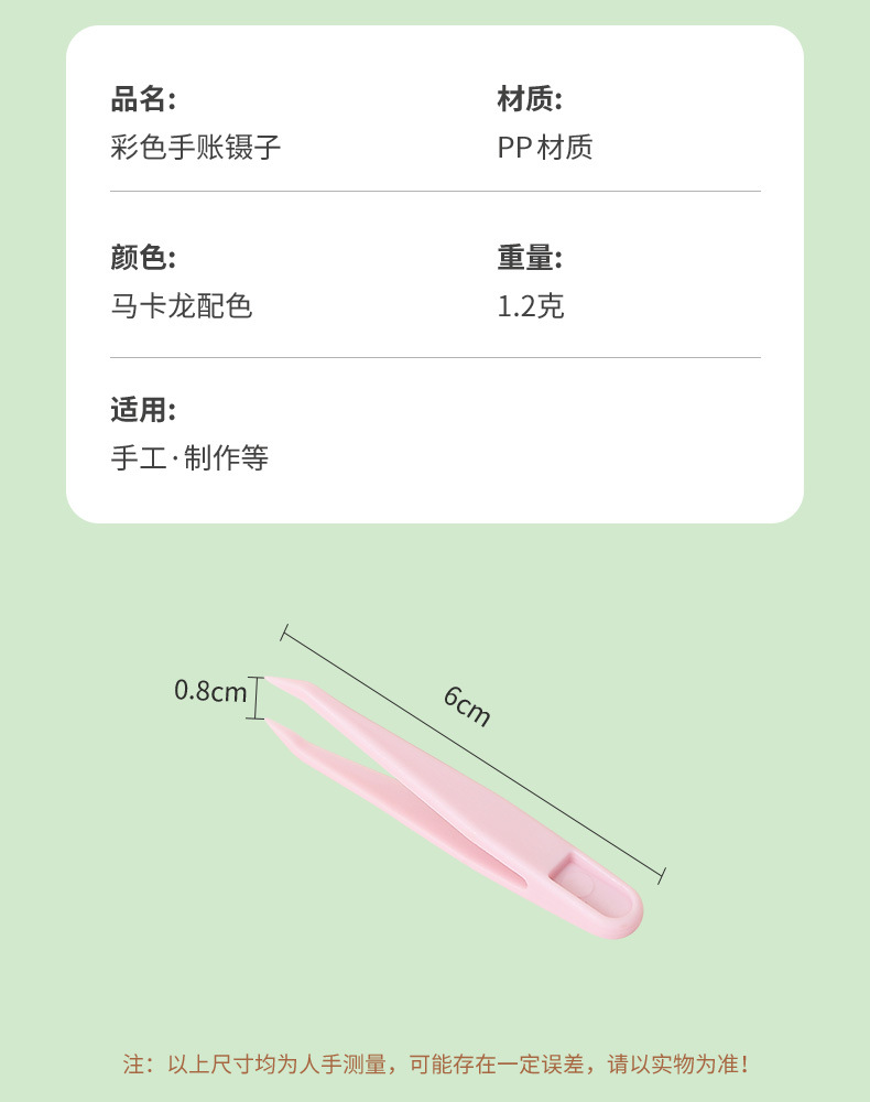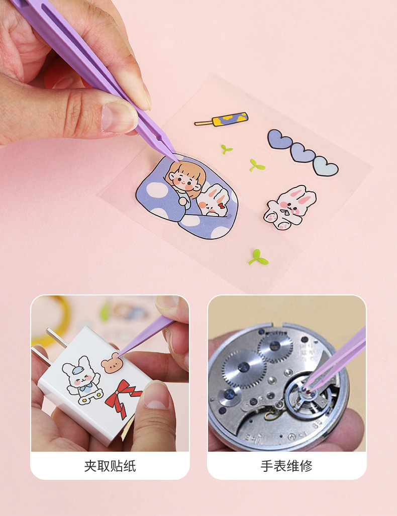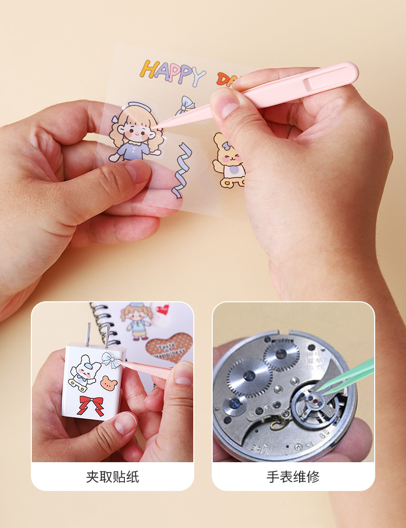 6cm/8cm/11cm/12cm 스트레이트 헤드 핸드 계정 플라스틱 핀셋 diy 컬러 핀셋 테이프 문구 장난감스토어 가기