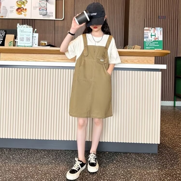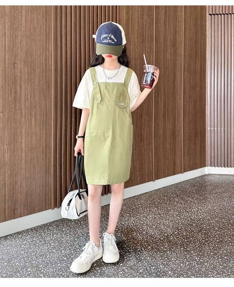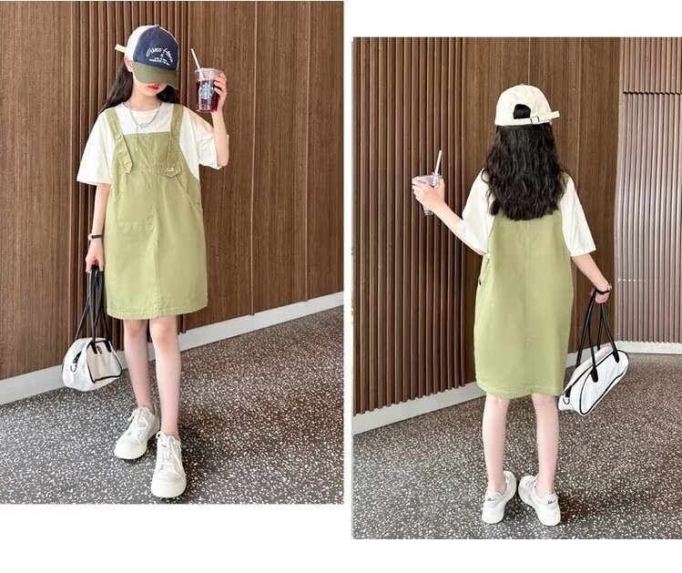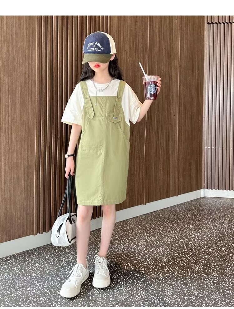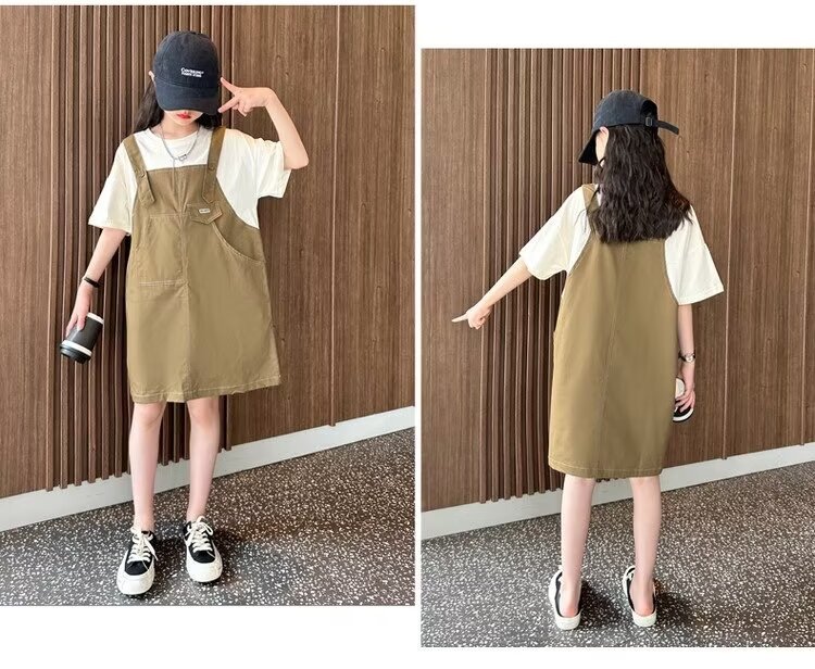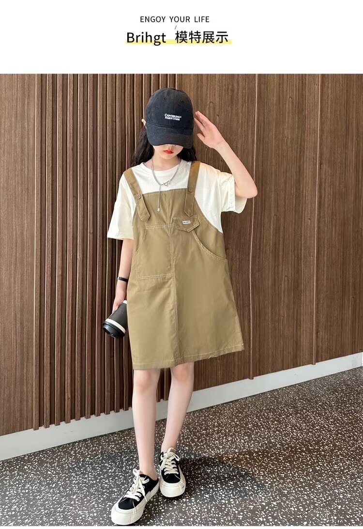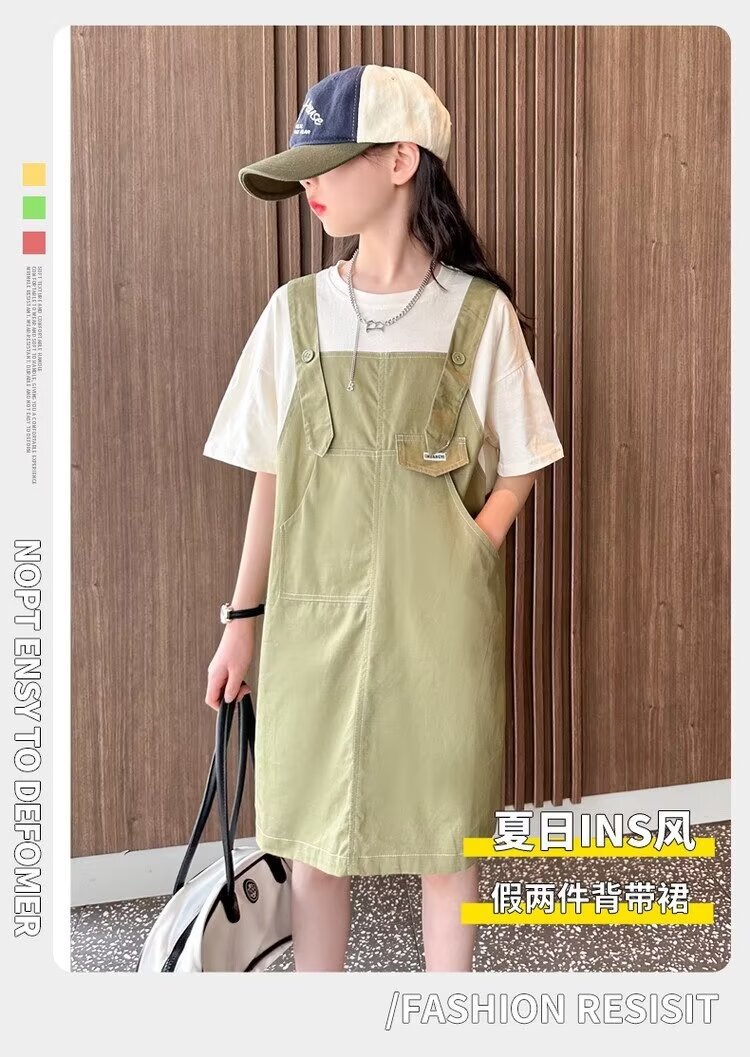 소녀 여름 원피스 원피스 2024 새로운 어린이 서양식 여름 가닥 원피스 소녀 여름 가짜 투피스 원피스스토어 가기