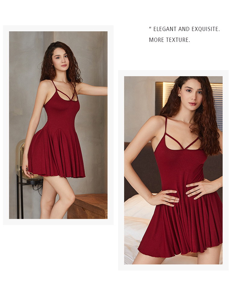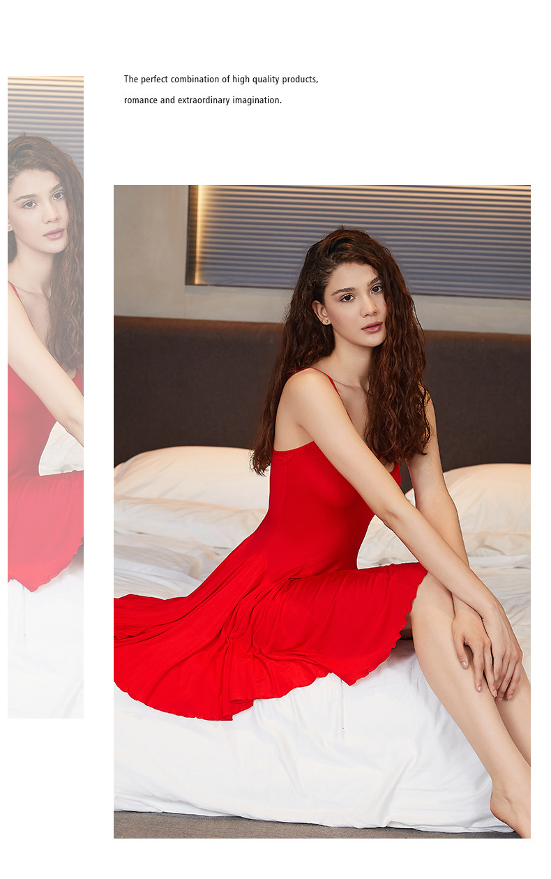 국경 간 대외 무역 유럽과 미국 잠옷 섹시한 니트 코튼 플러스 사이즈 슬링 섹시한 잠옷 여성 패션 주름 홈 옷스토어 가기