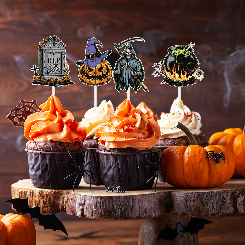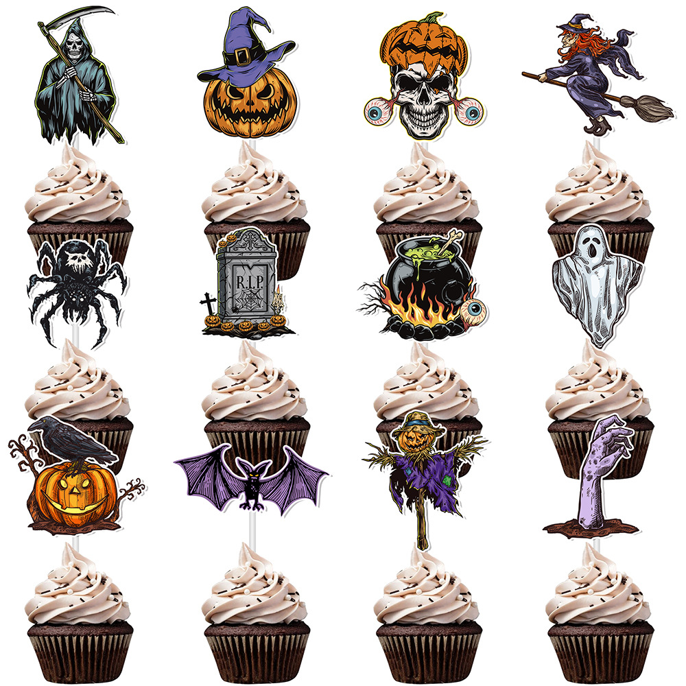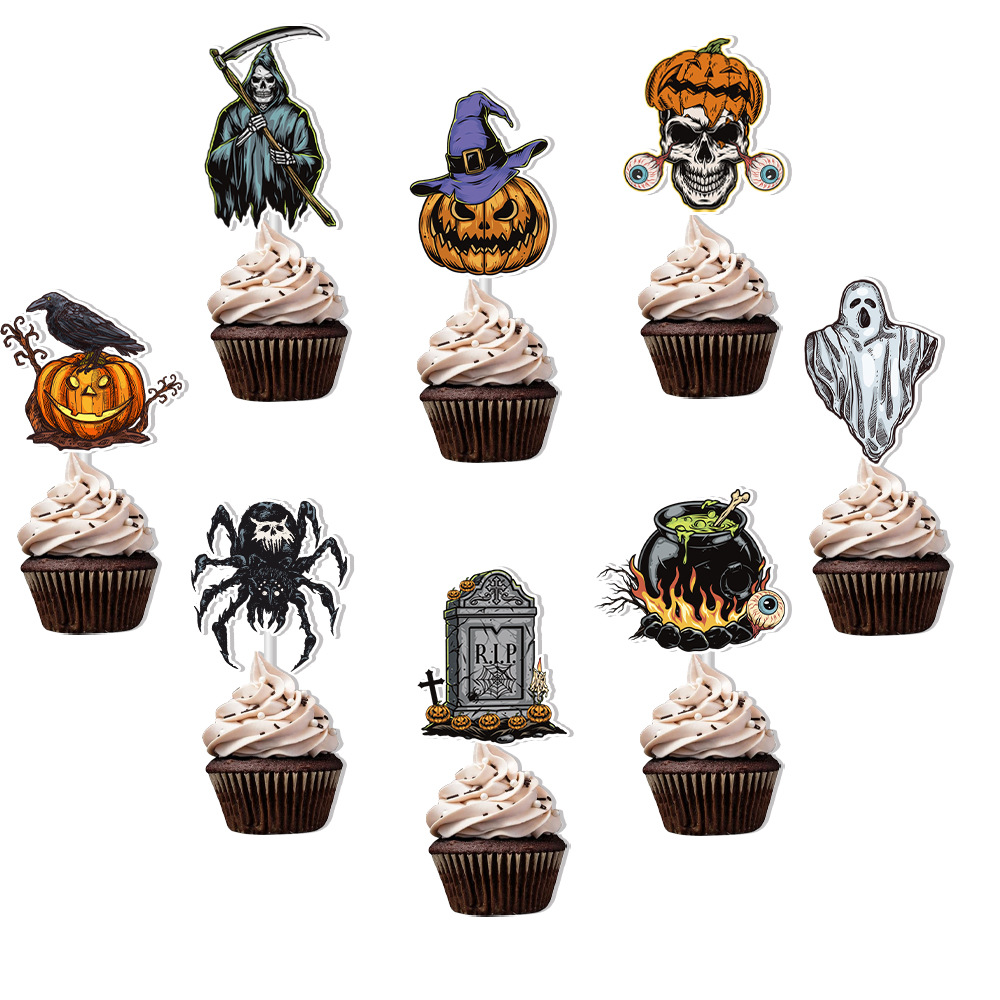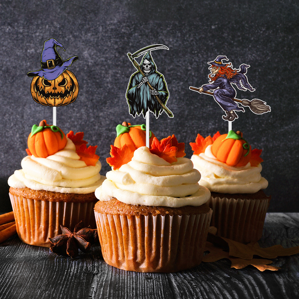 국경 새로운 할로윈 장식 소품 호박 유령 박쥐 케이크 컵 작은 깃발 파티 용품스토어 가기