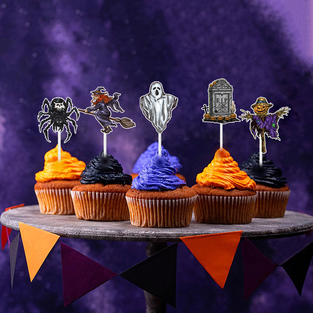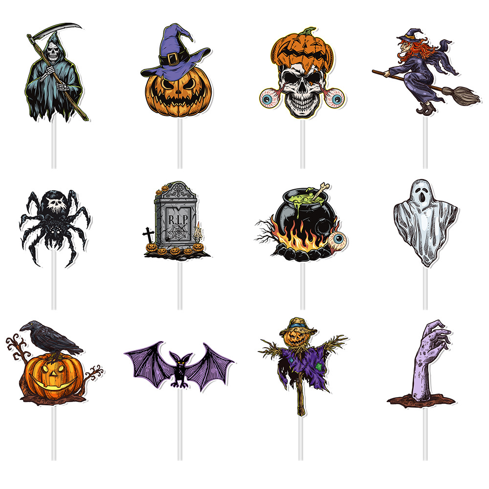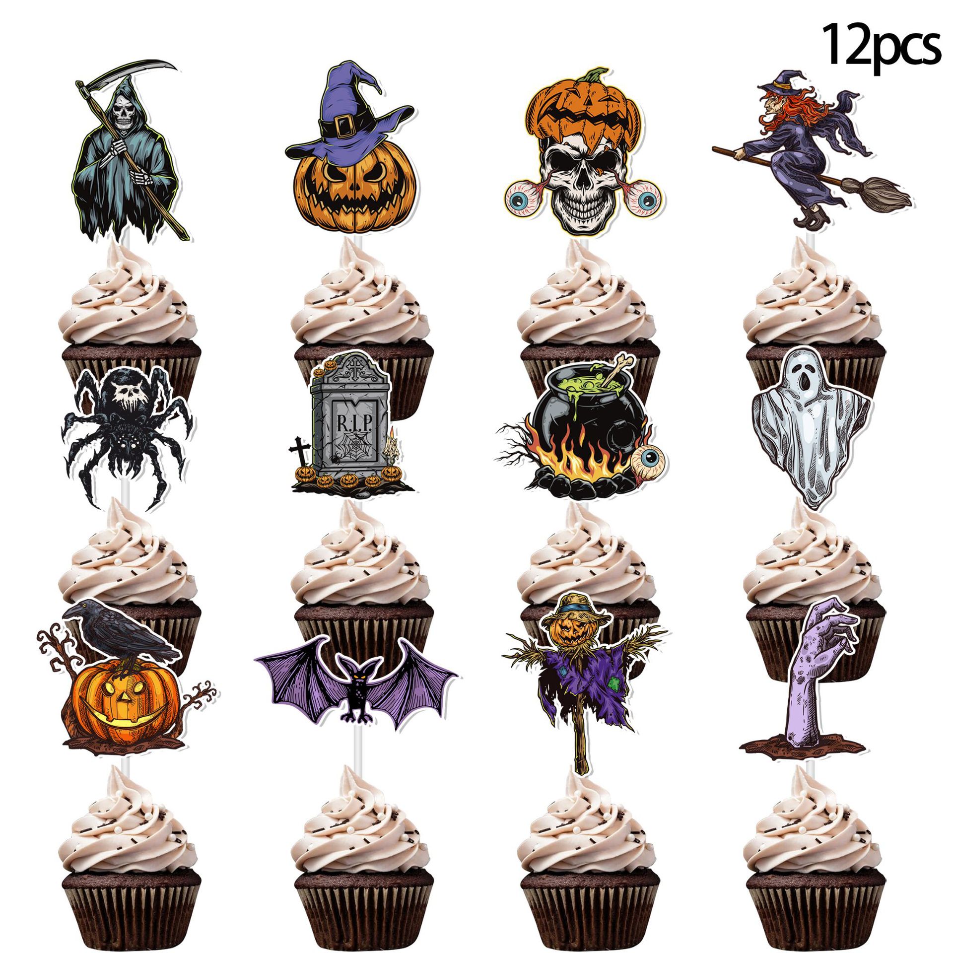 국경 새로운 할로윈 장식 소품 호박 유령 박쥐 케이크 컵 작은 깃발 파티 용품스토어 가기