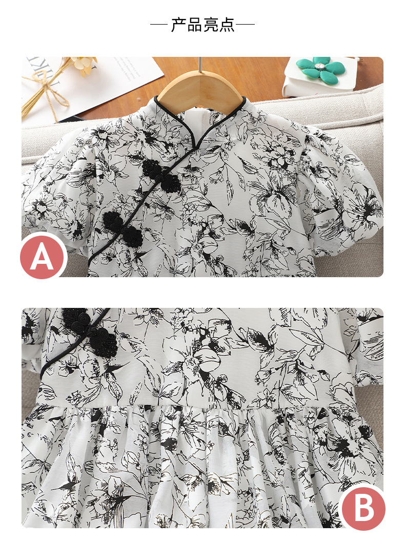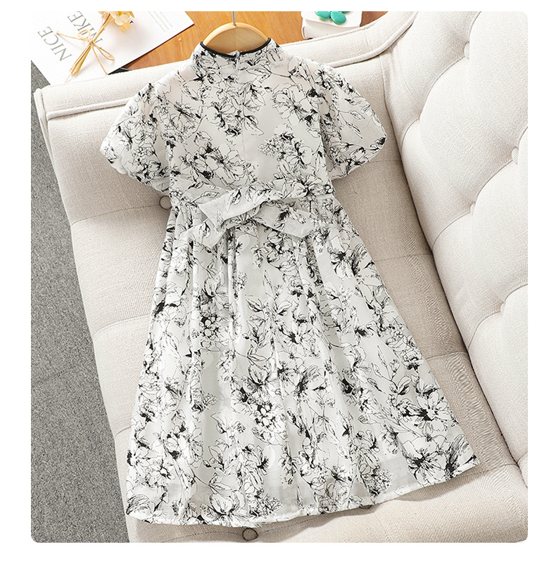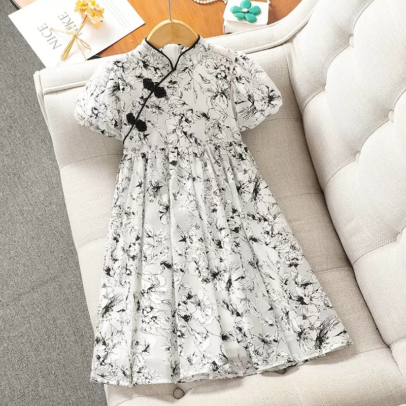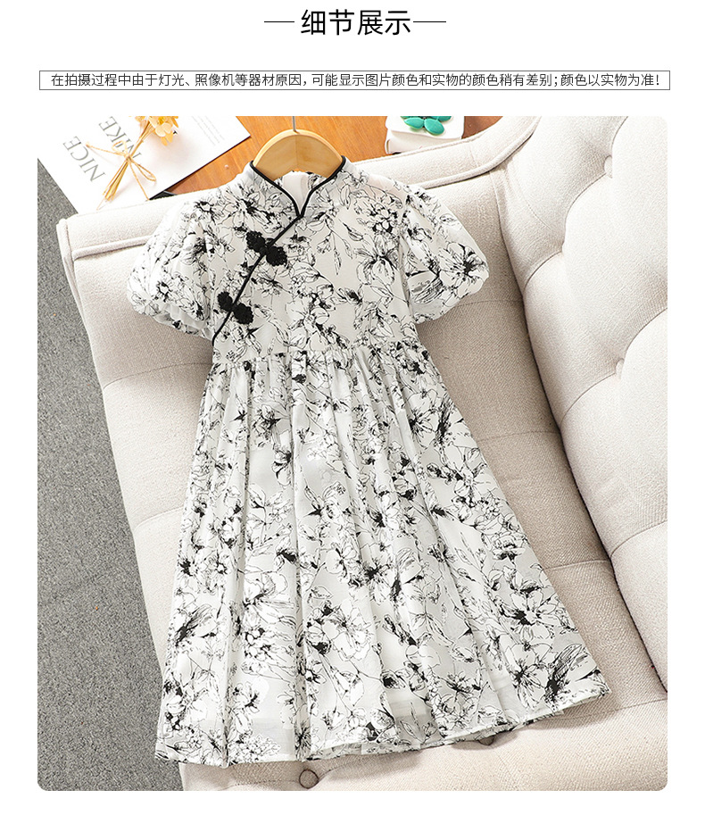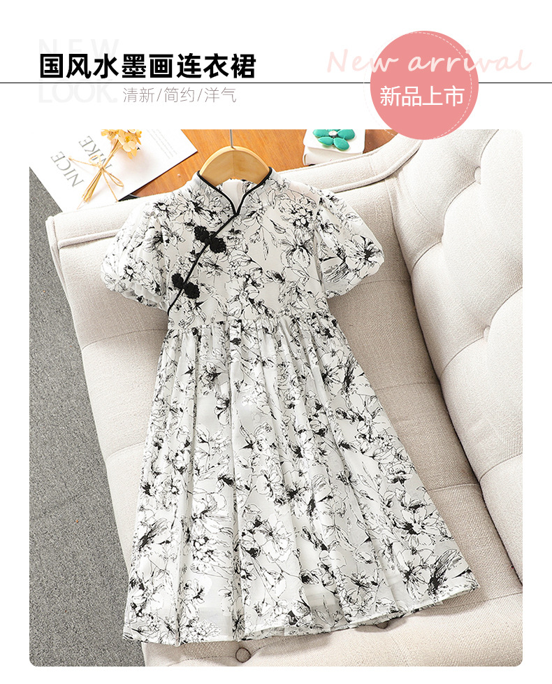 소녀의 국가 스타일 원피스 서양식 중첩 어린이 여름 원피스 공주 원피스 어린이 여름 새로운 중국 스타일 개선 된 청삼 원피스