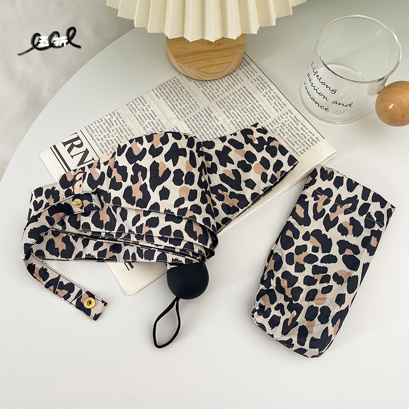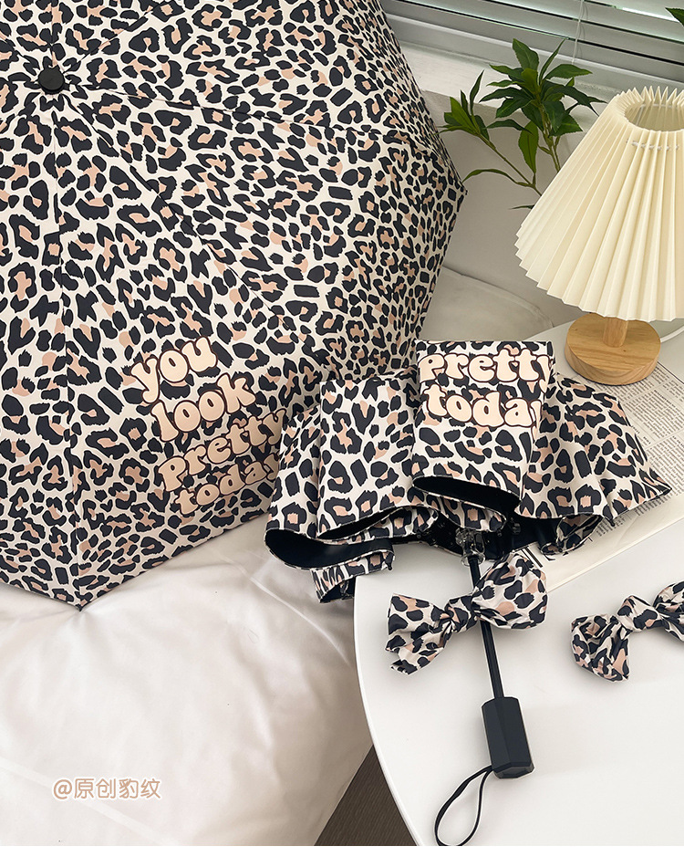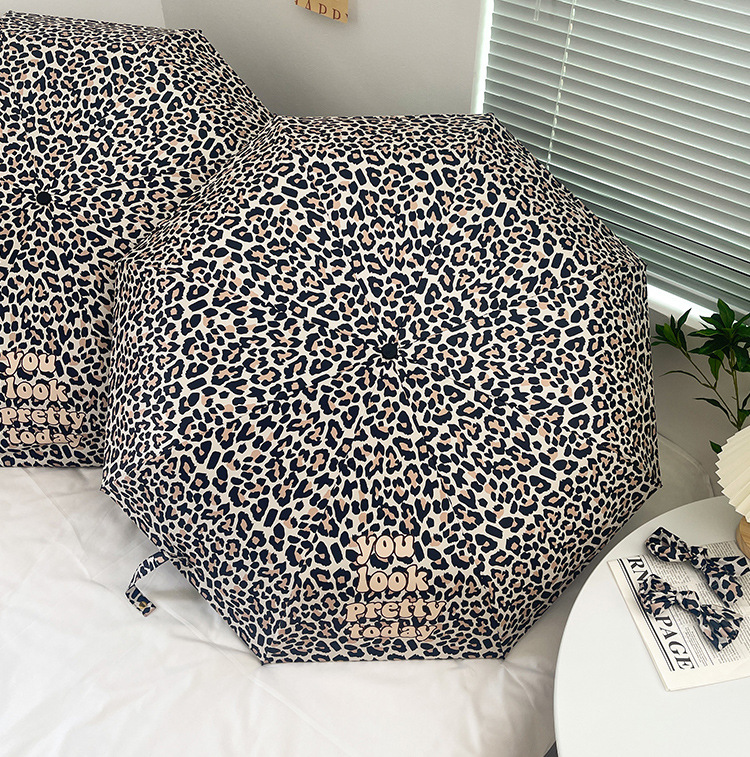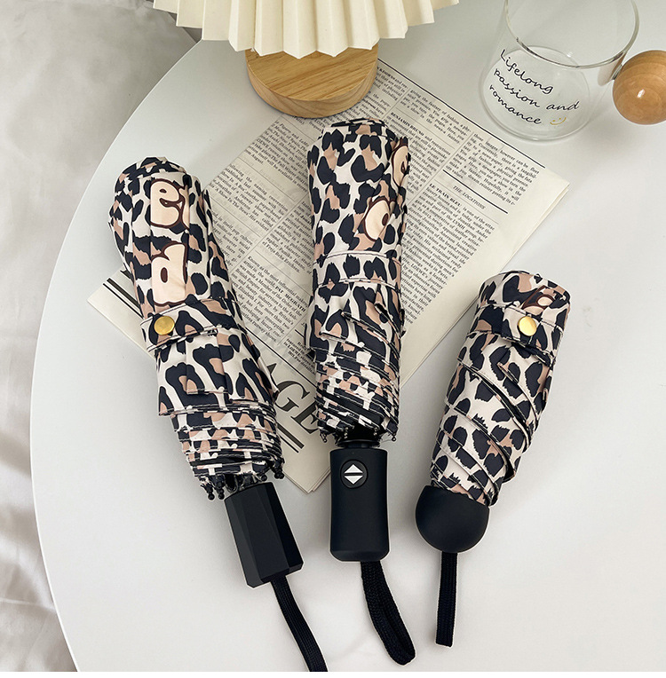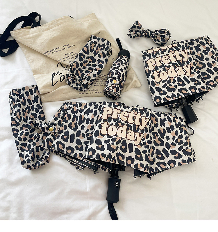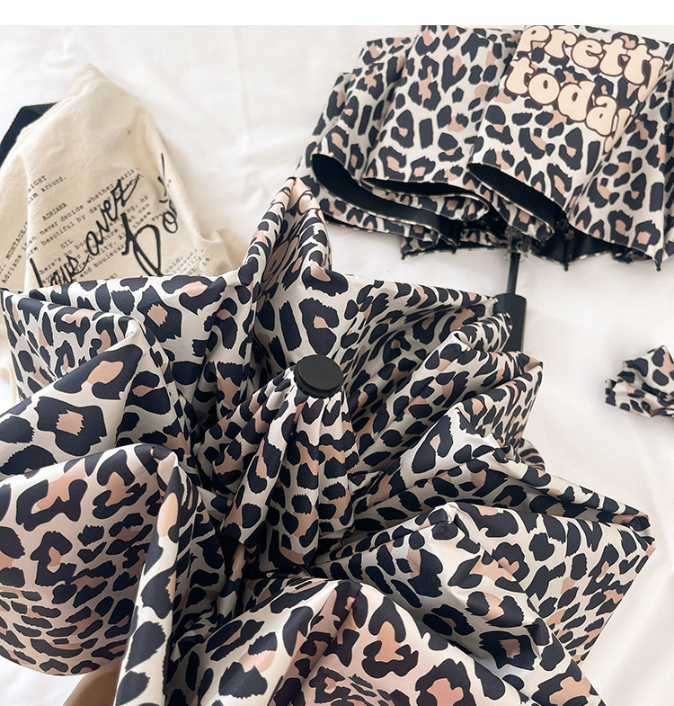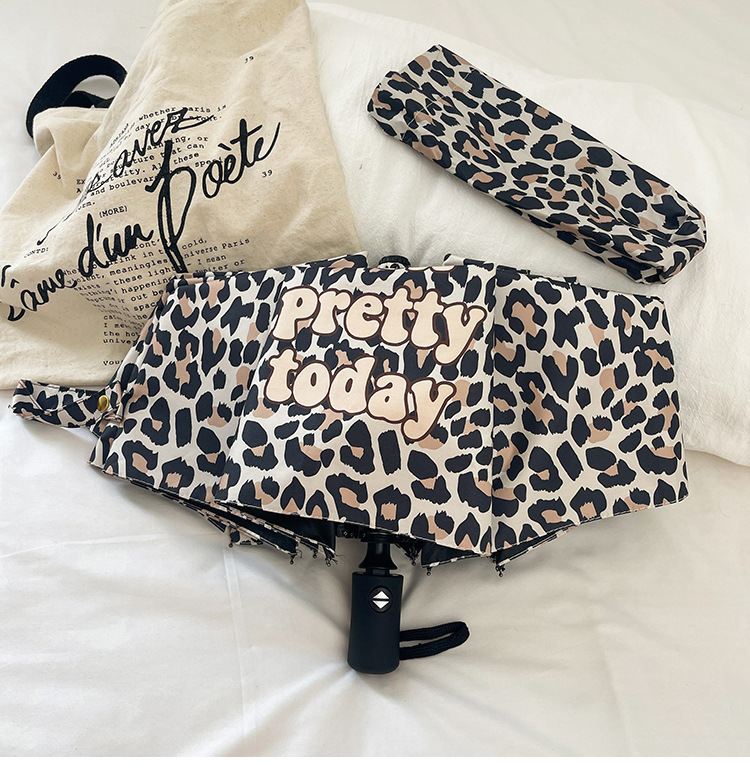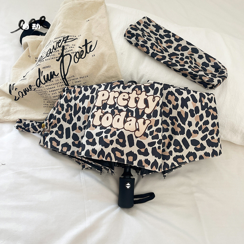 표범 무늬 복고풍 접는 우산 비닐 비 또는 빛 간단한 여성 태양 보호 차양 안티 UV 우산 원 클릭 배달스토어 가기