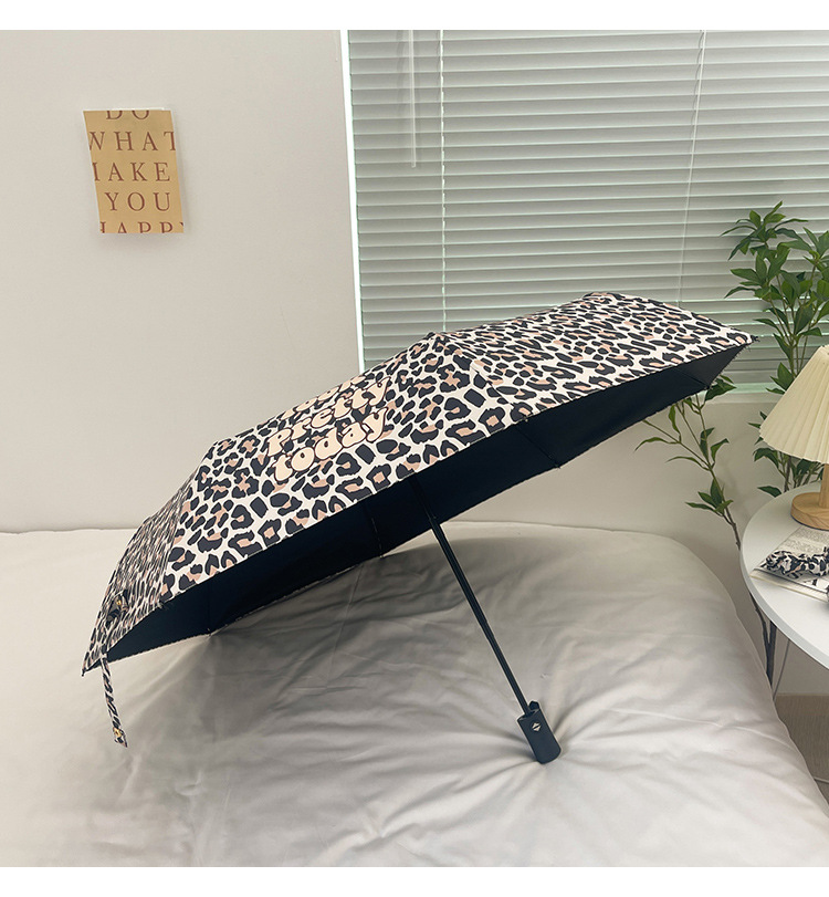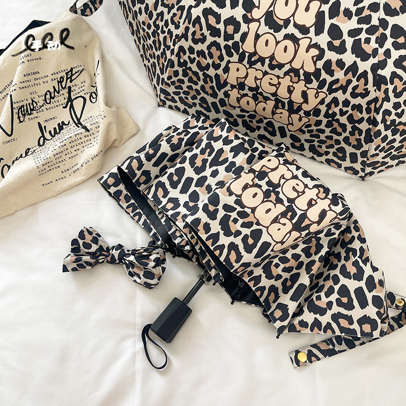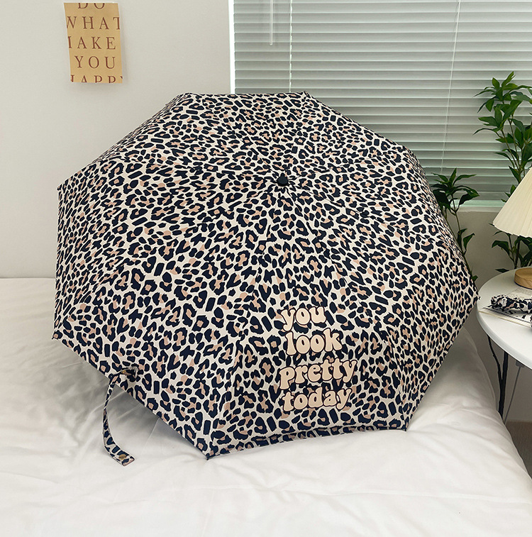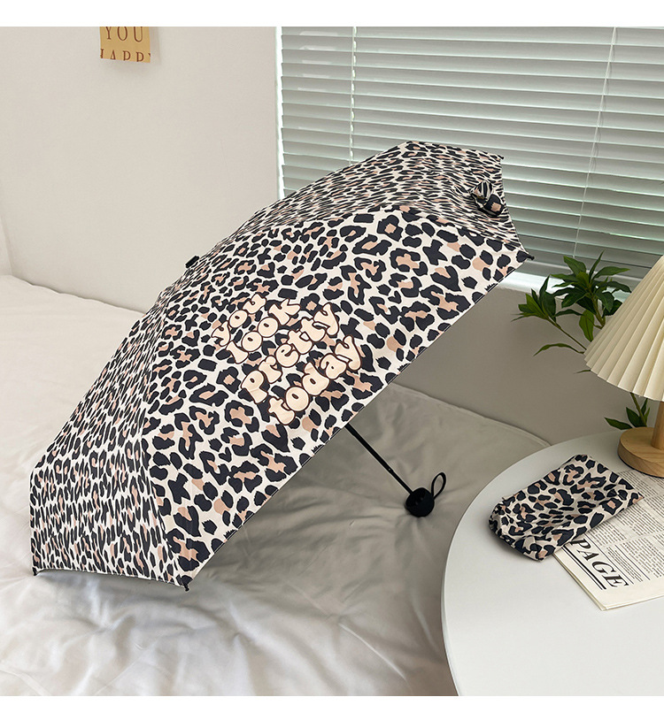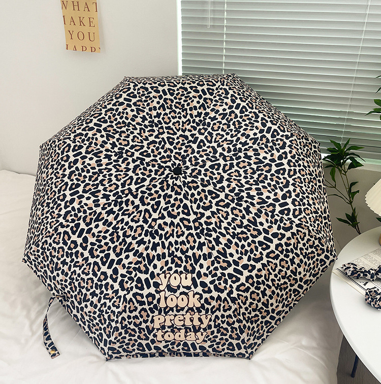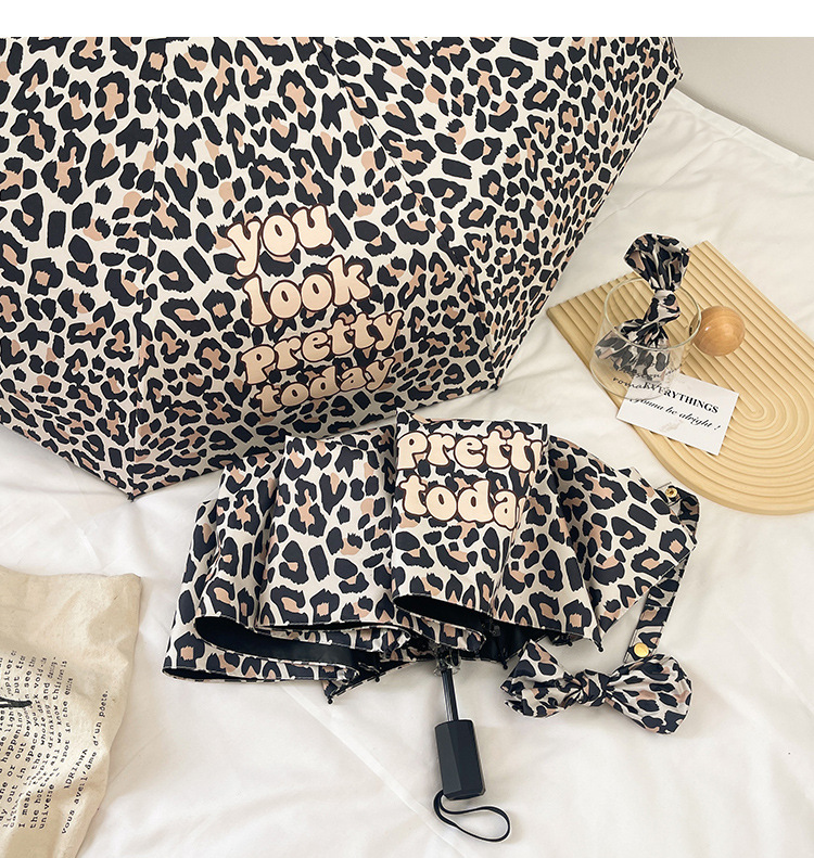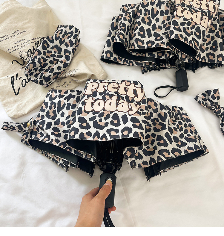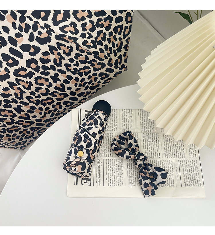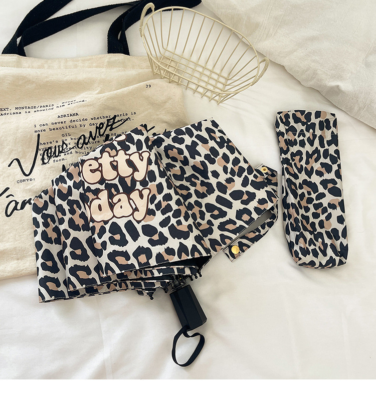 표범 무늬 복고풍 접는 우산 비닐 비 또는 빛 간단한 여성 태양 보호 차양 안티 UV 우산 원 클릭 배달스토어 가기
