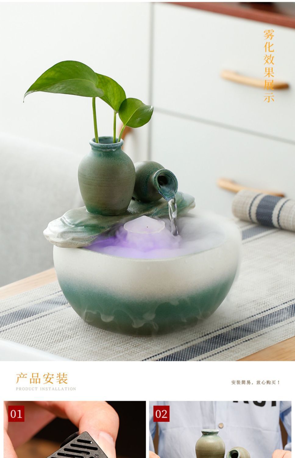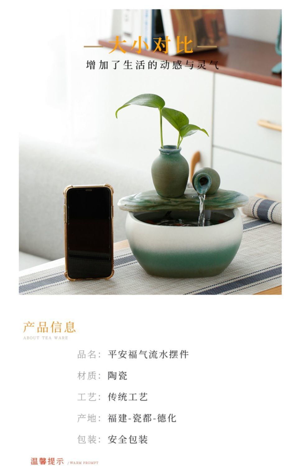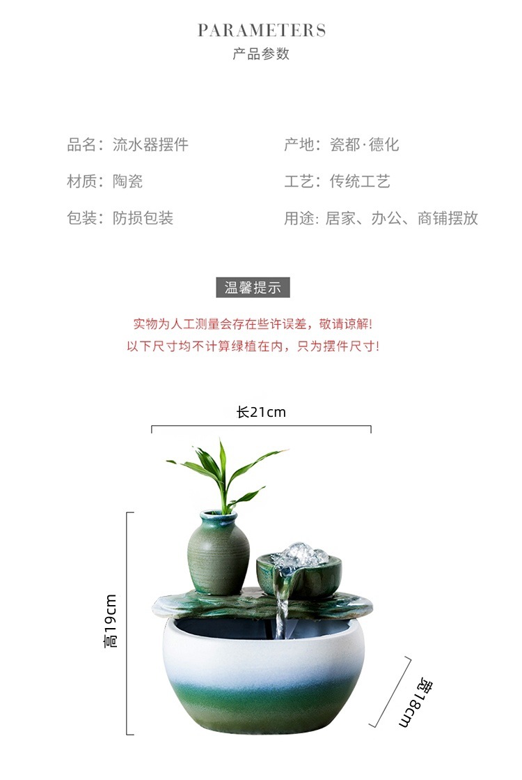 새로운 중국 스타일의 물 장식품 세라믹 분수 물 순환 부 개회식 홈 거실 입구 장식스토어 가기