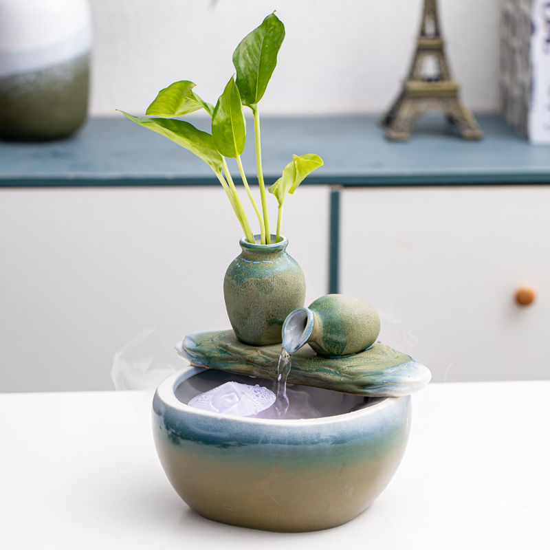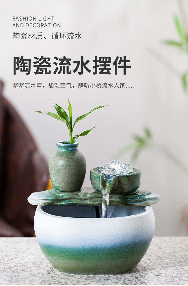 새로운 중국 스타일의 물 장식품 세라믹 분수 물 순환 부 개회식 홈 거실 입구 장식