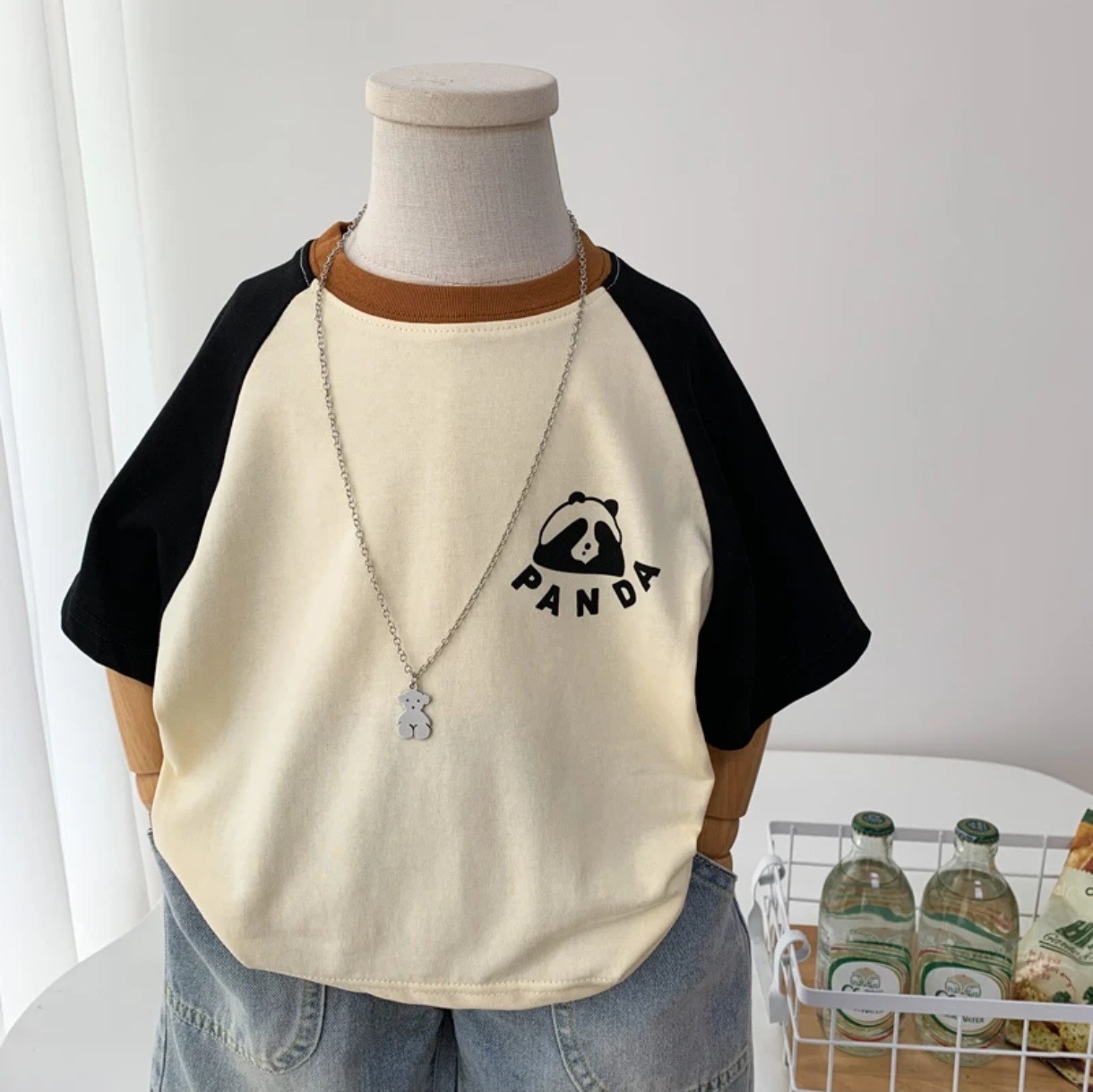 Tongxingyuan 2024 여름 새 아동복 한국 스타일 만화 대비 컬러 티셔츠 소년 소녀 귀여운 편지베이스 T