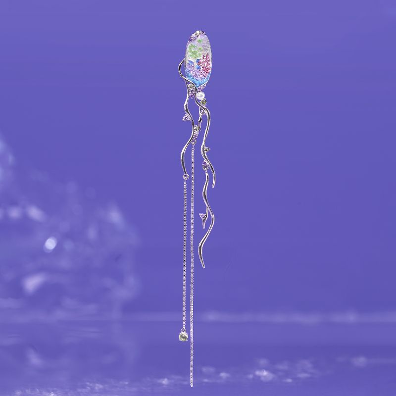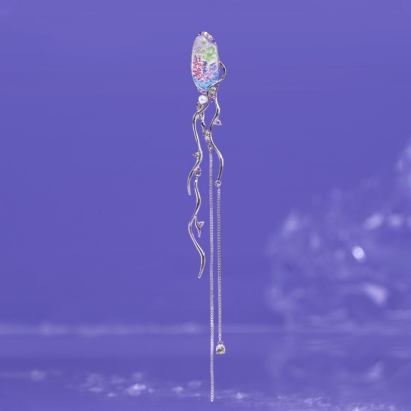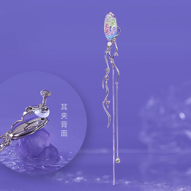 2022 년 새 [모네-비밀 영역] 기질 요정 긴 술 유화 예술 선물 귀걸이 클립