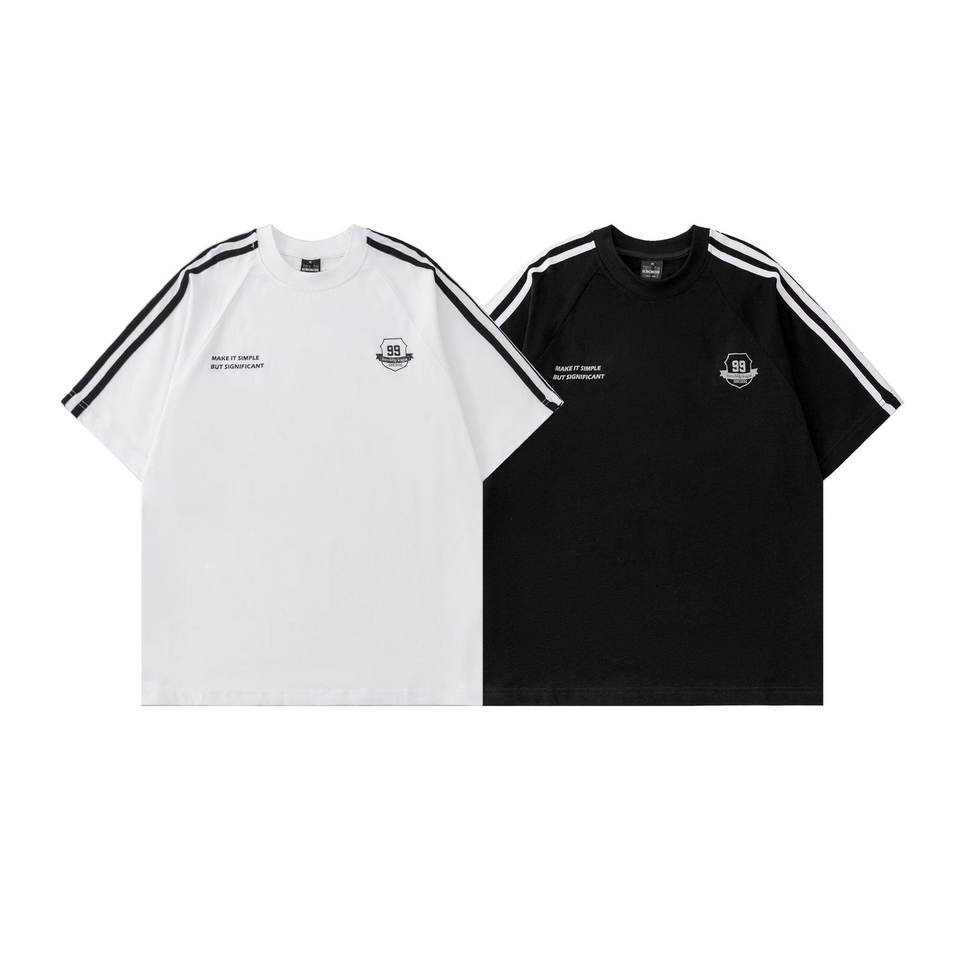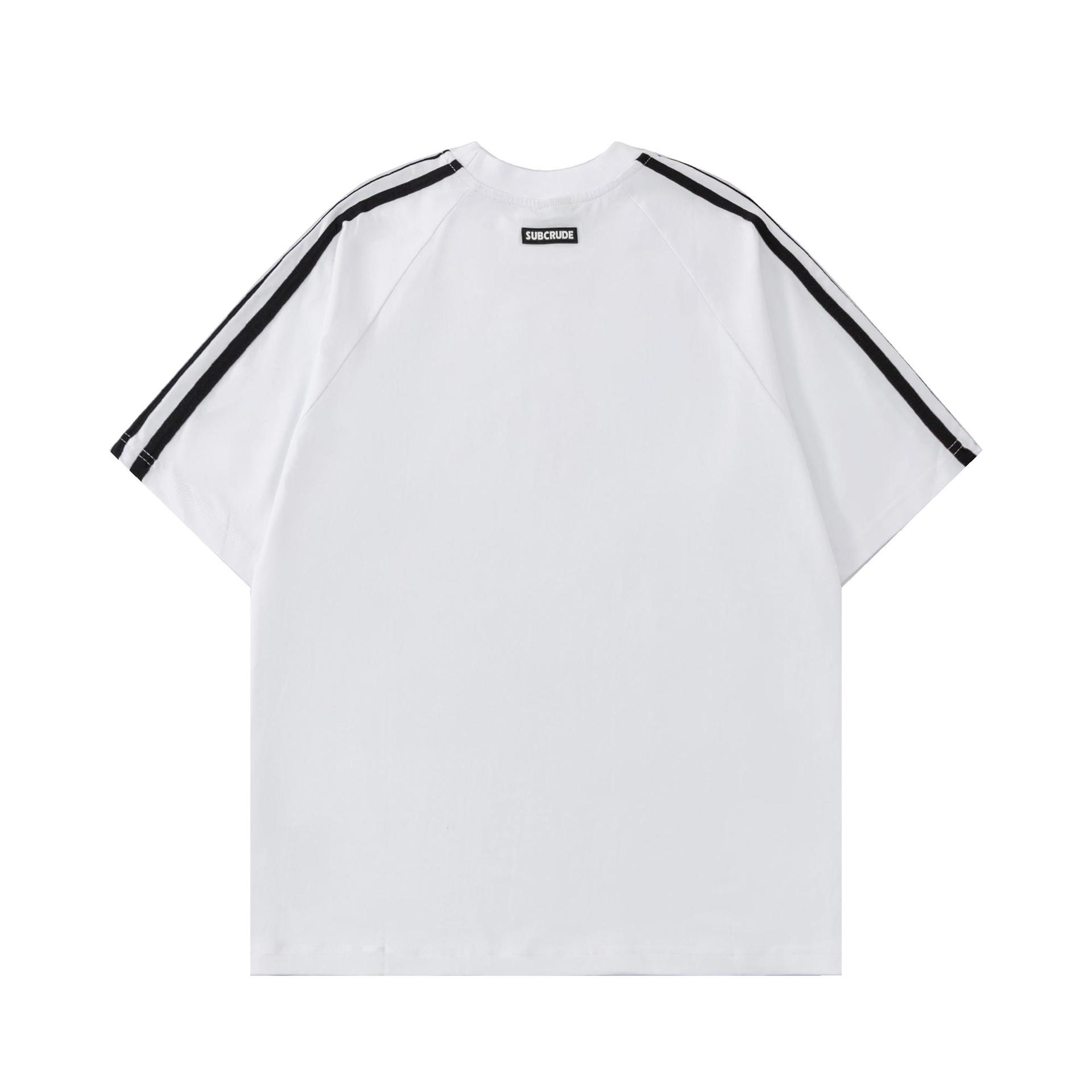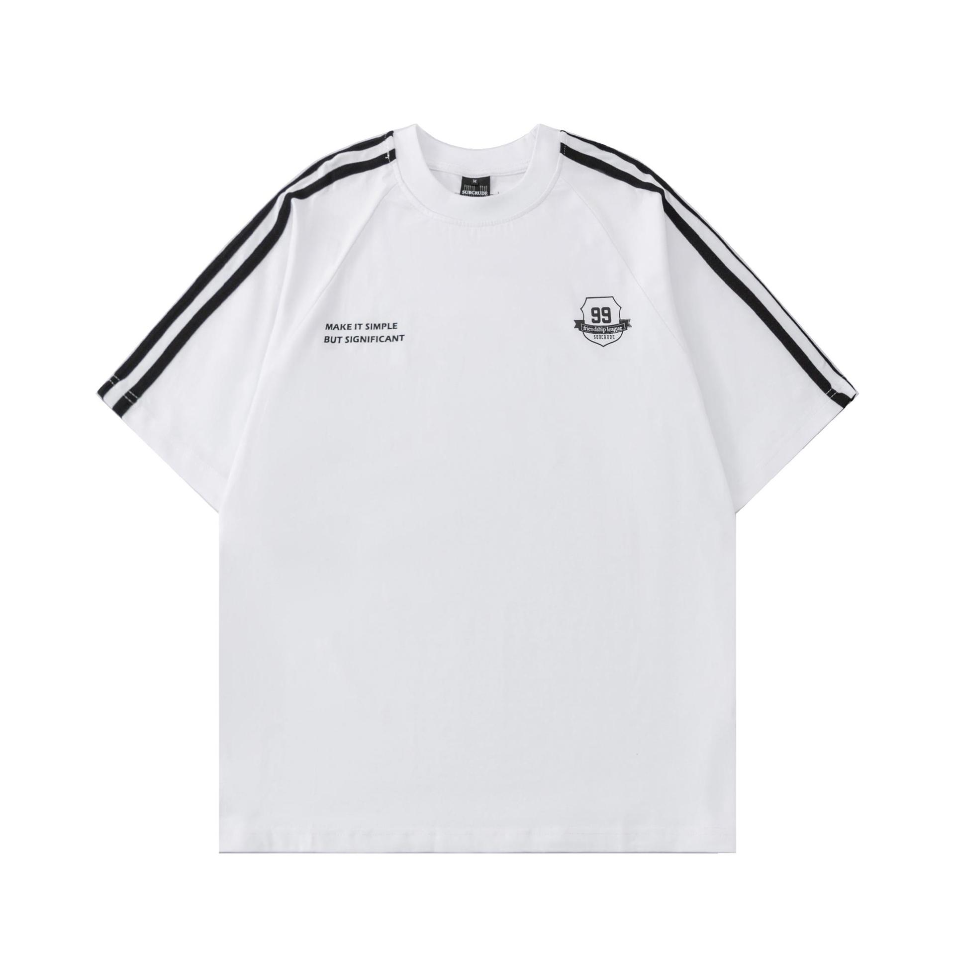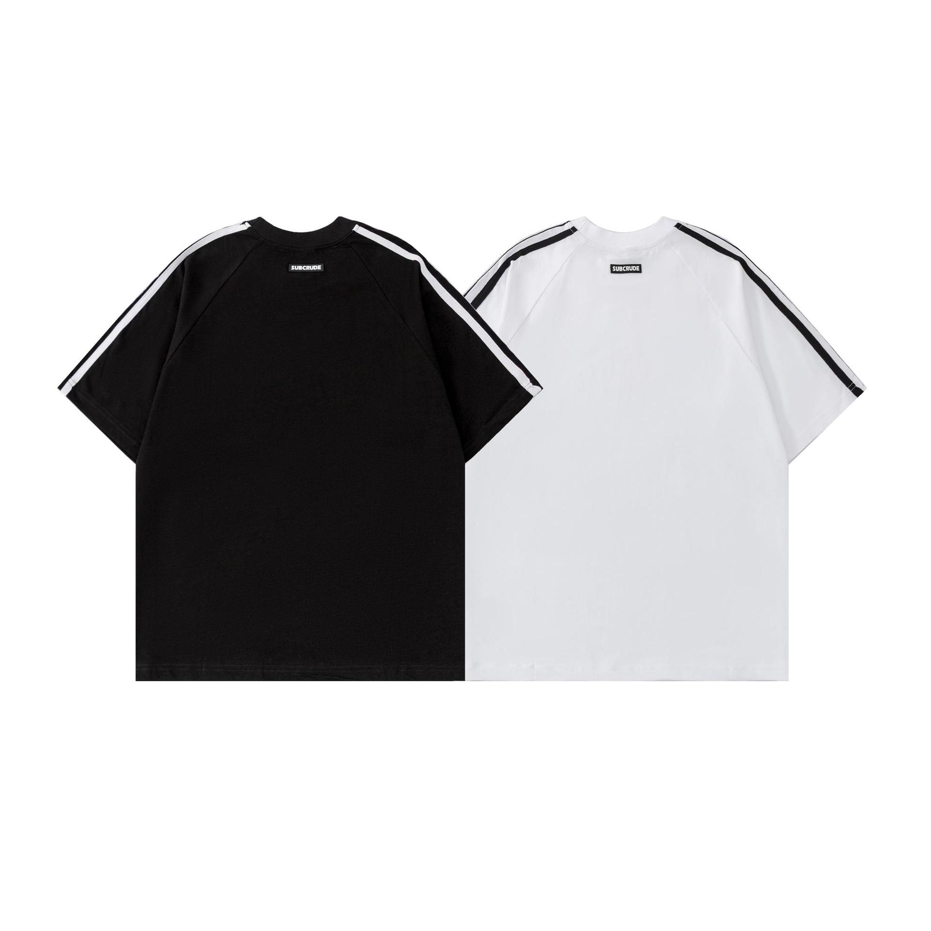 미국식 스트라이프 라벨 바느질 반팔 티셔츠 루즈 스트리트 올매치 남녀 패션 브랜드 커플 반소매 탑