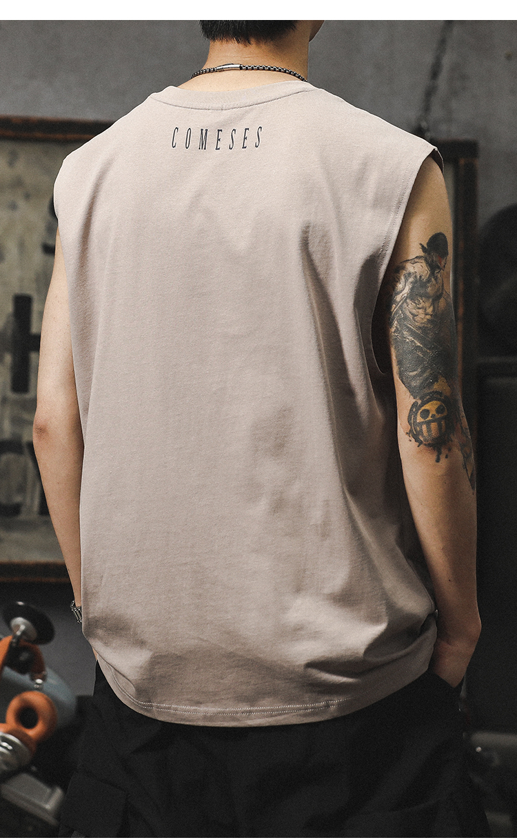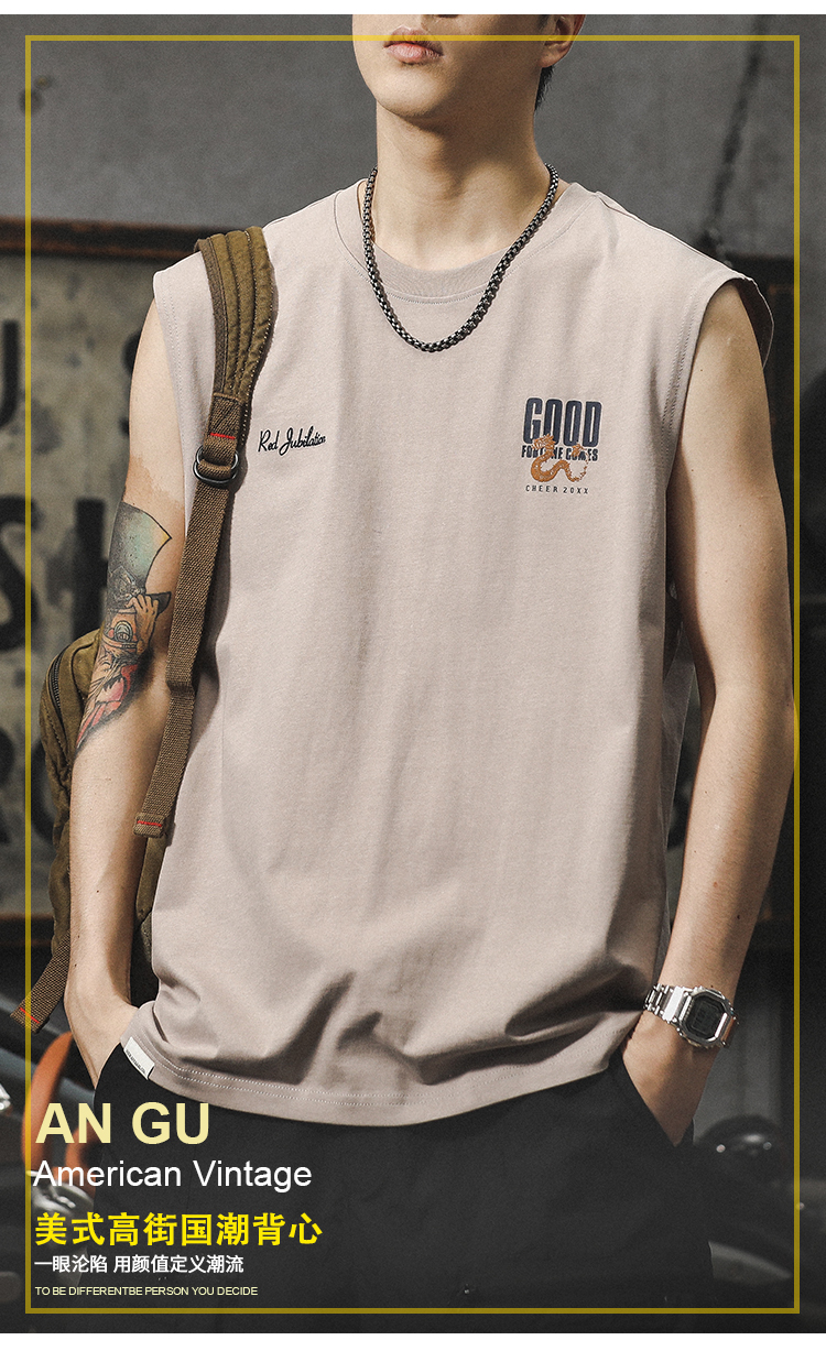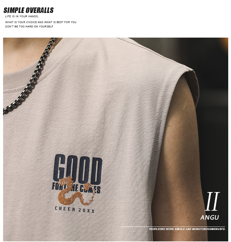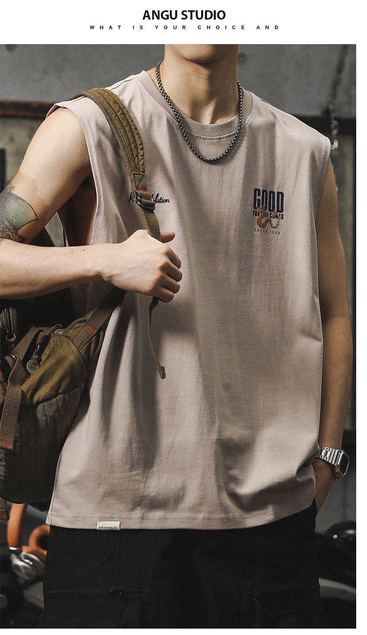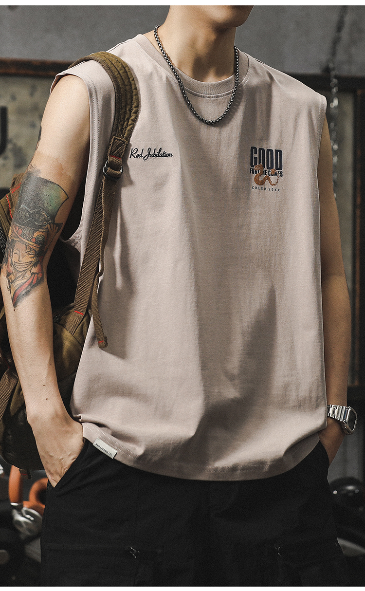 아메리칸 스타일 하이 스트리트 헤비 자수 스포츠 조끼 중국 스타일 느슨한 플러스 사이즈 퓨어 코튼 민소매 남성용 어깨 허리 코트 트렌디 브랜드스토어 가기