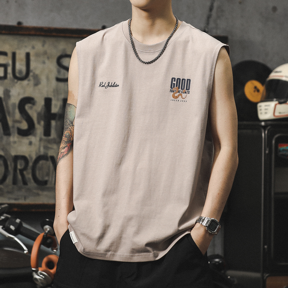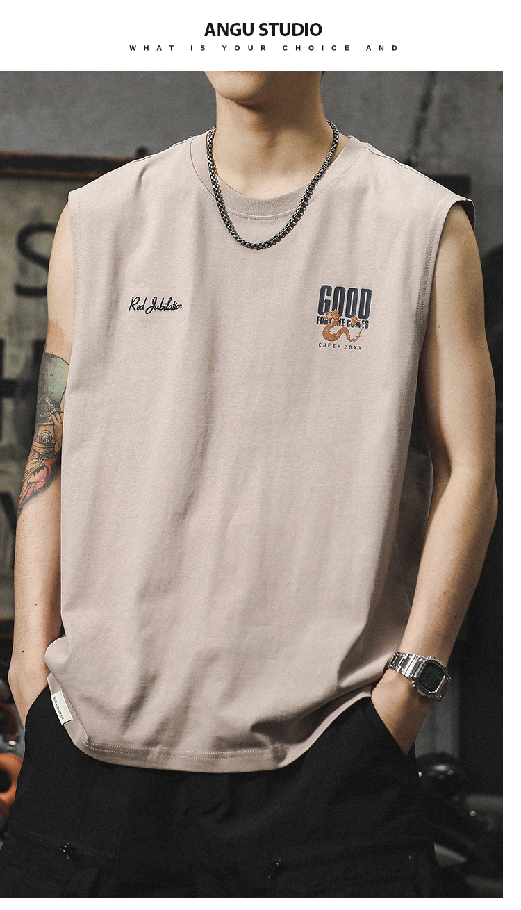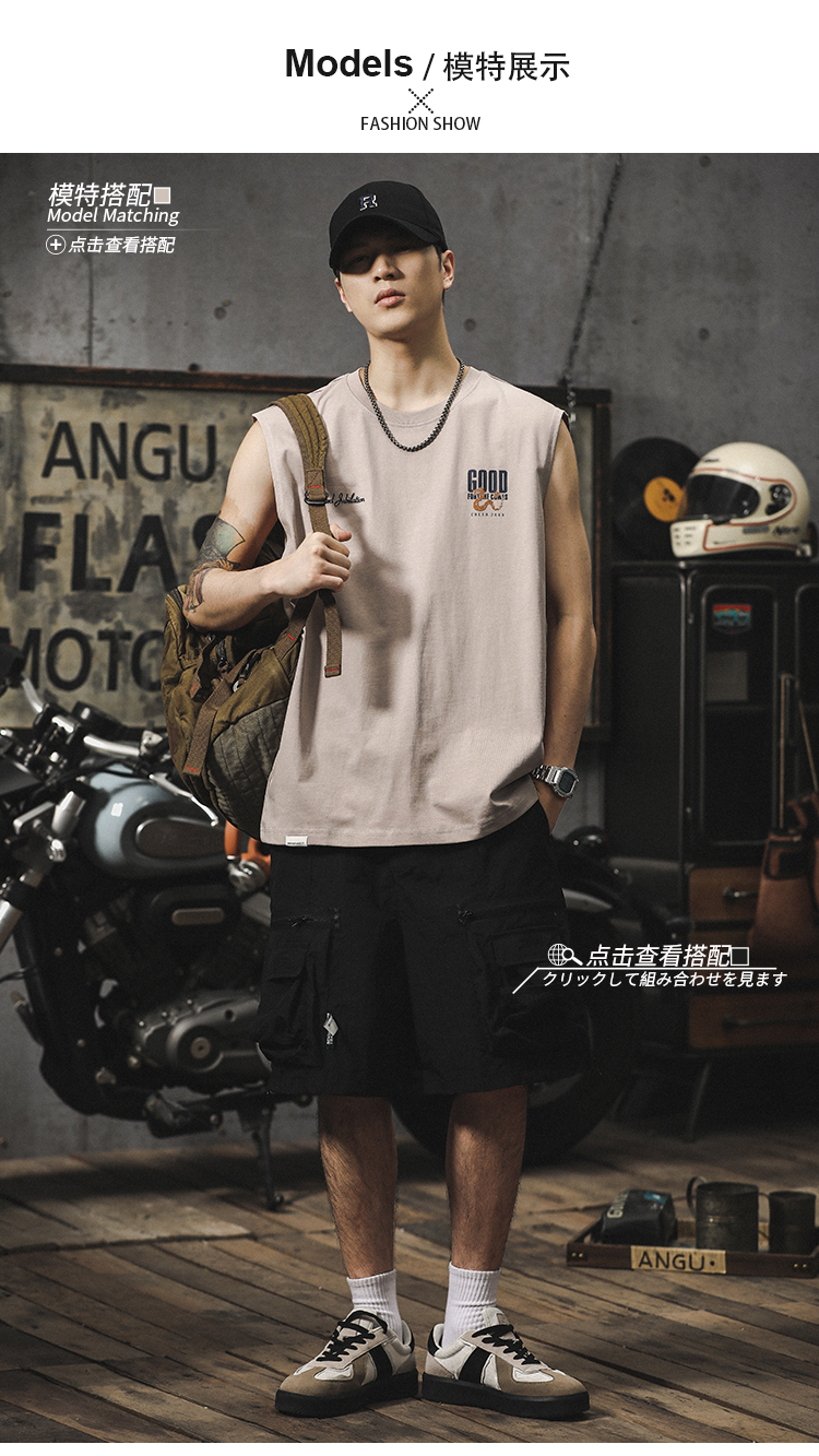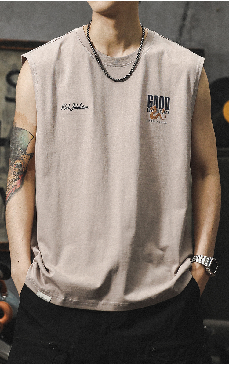 아메리칸 스타일 하이 스트리트 헤비 자수 스포츠 조끼 중국 스타일 느슨한 플러스 사이즈 퓨어 코튼 민소매 남성용 어깨 허리 코트 트렌디 브랜드스토어 가기