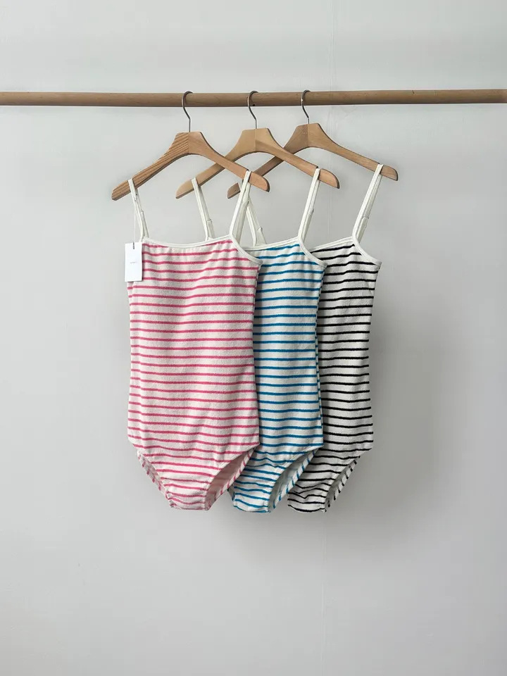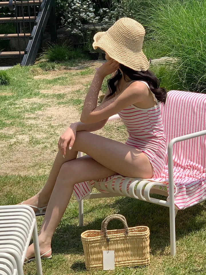 2024 한국 버전의 수영복에 바람 줄무늬 원피스 수영복 슬림 배꼽 스트랩 섹시한 수영복 여성 제조 업체 도매