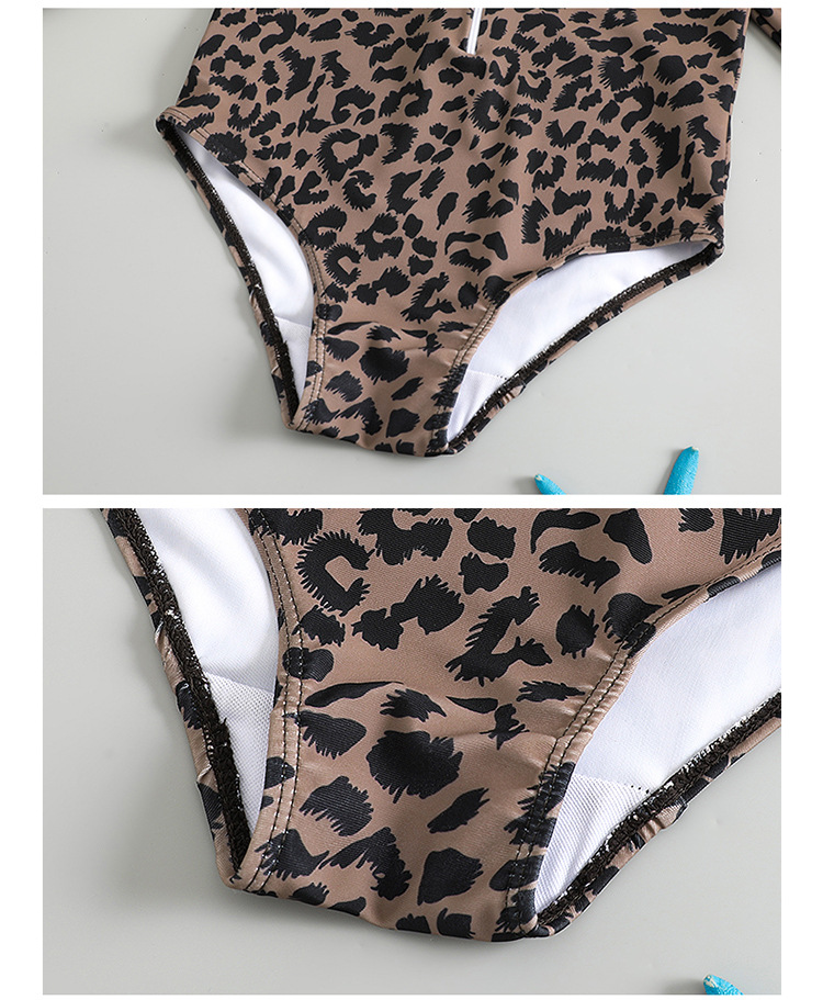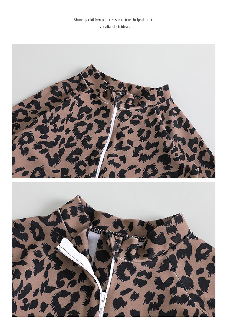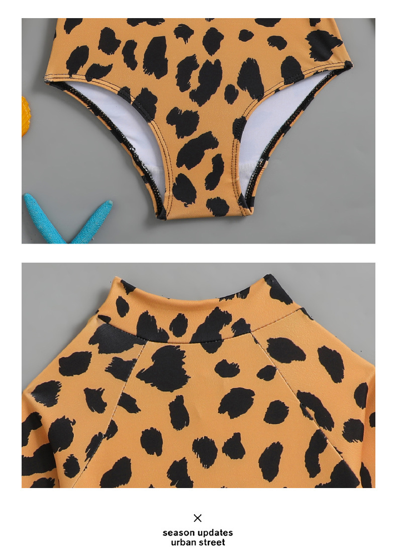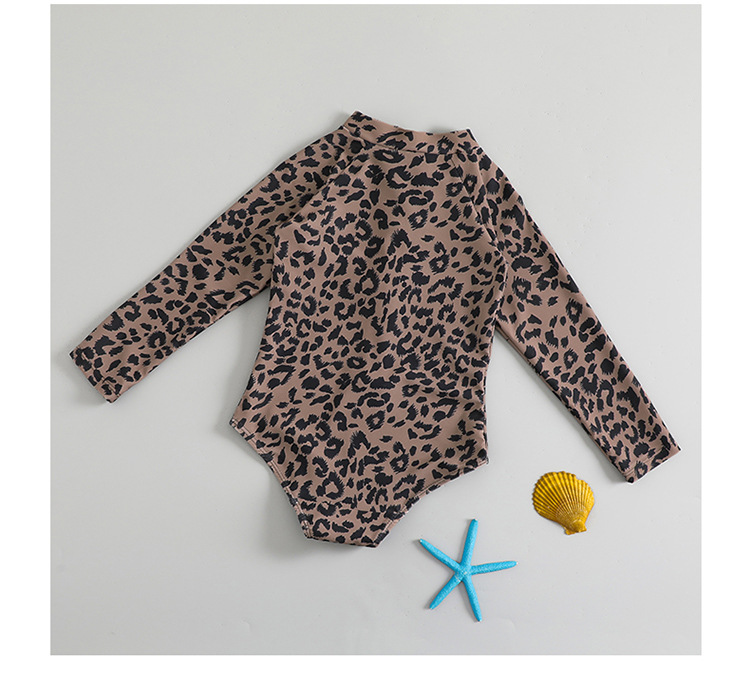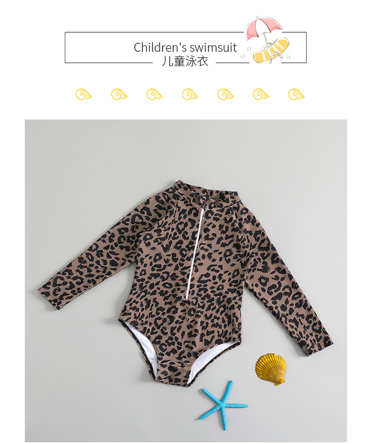 한국 여자 아기 소녀 레오파드 무늬 원피스 수영복 키즈 공주 휴일 소녀 긴 소매 태양 보호 서핑 수영복스토어 가기