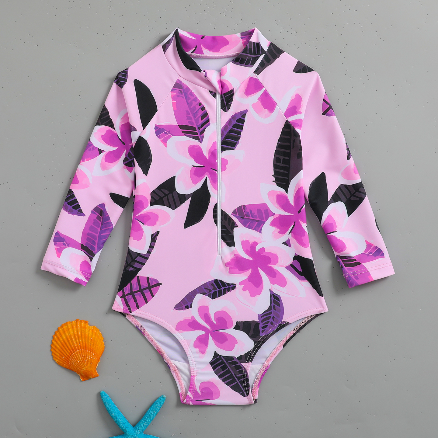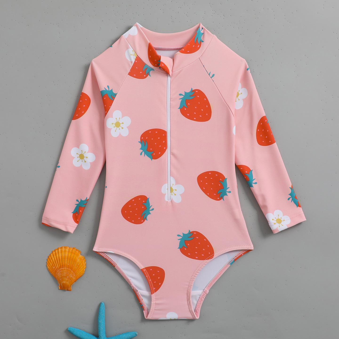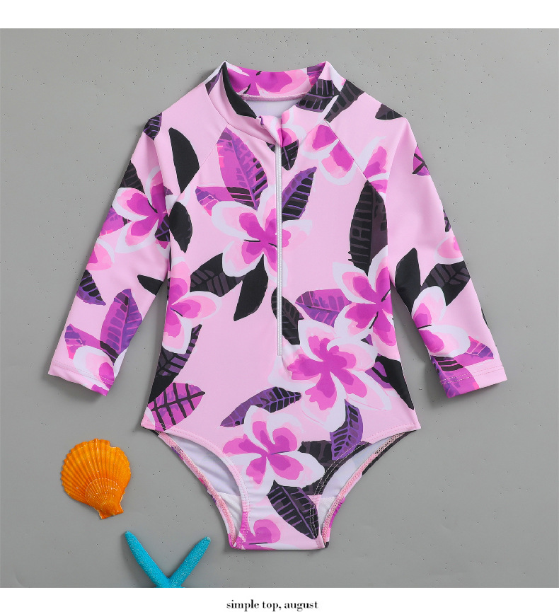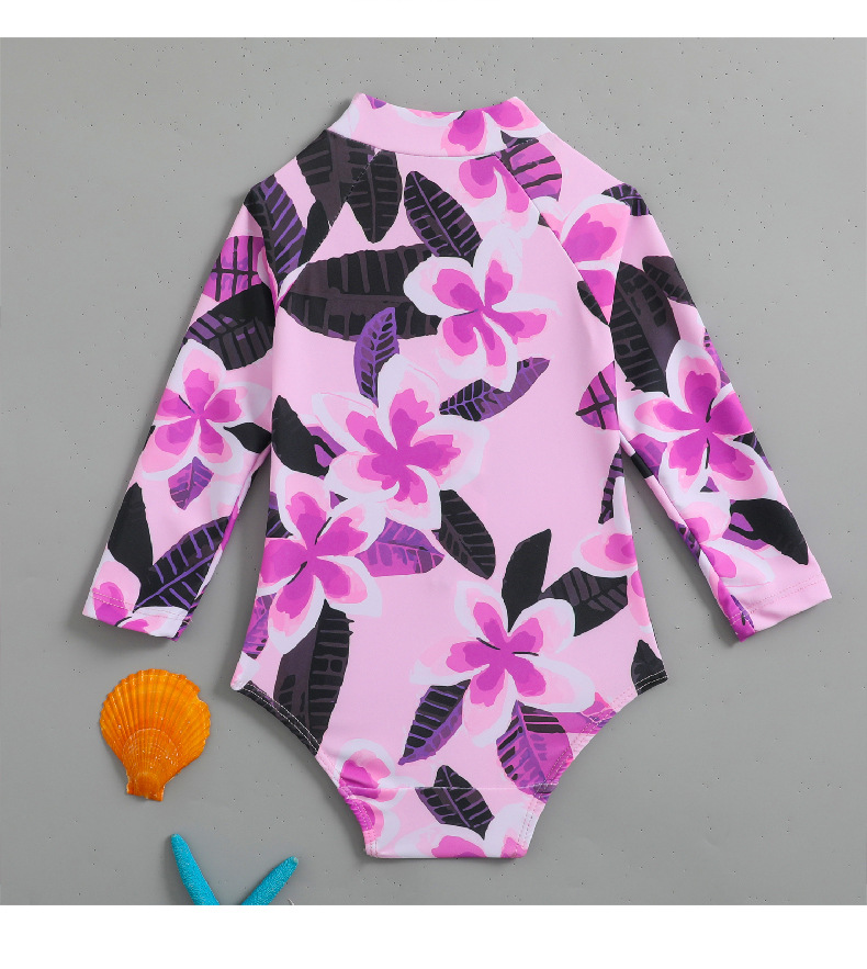 한국 여자 아기 소녀 레오파드 무늬 원피스 수영복 키즈 공주 휴일 소녀 긴 소매 태양 보호 서핑 수영복스토어 가기