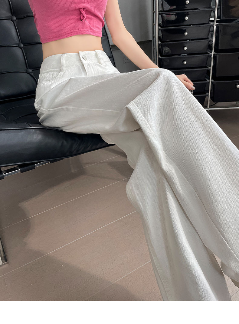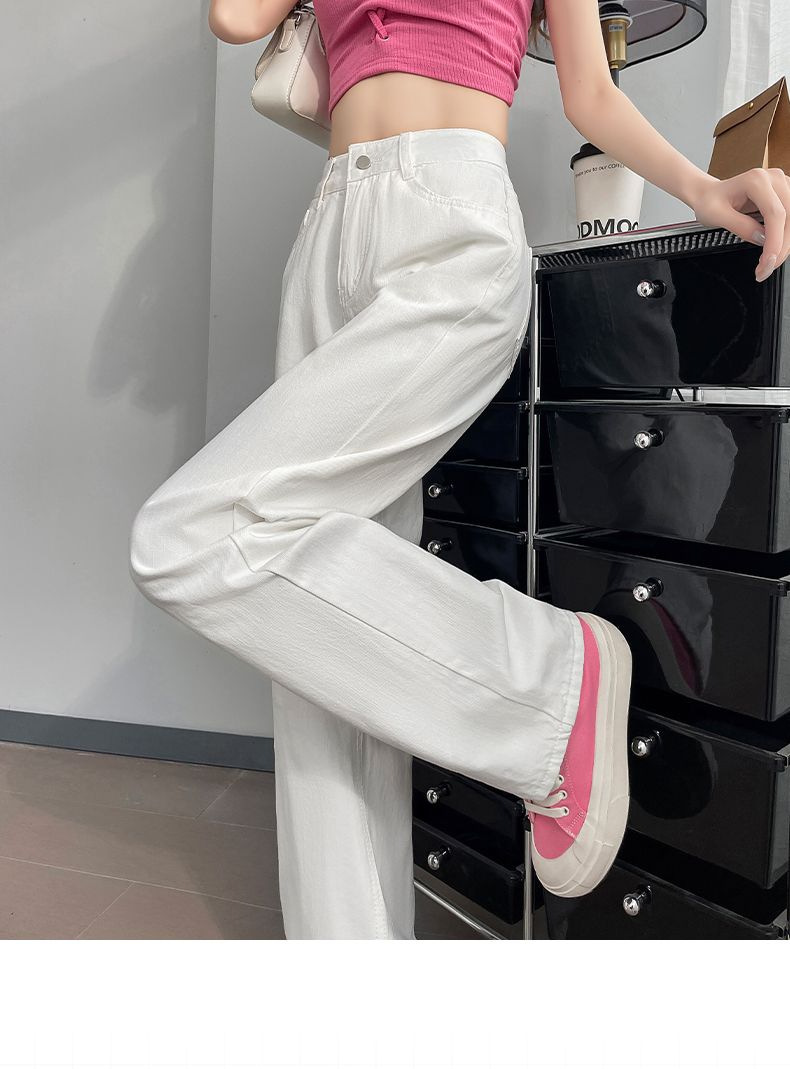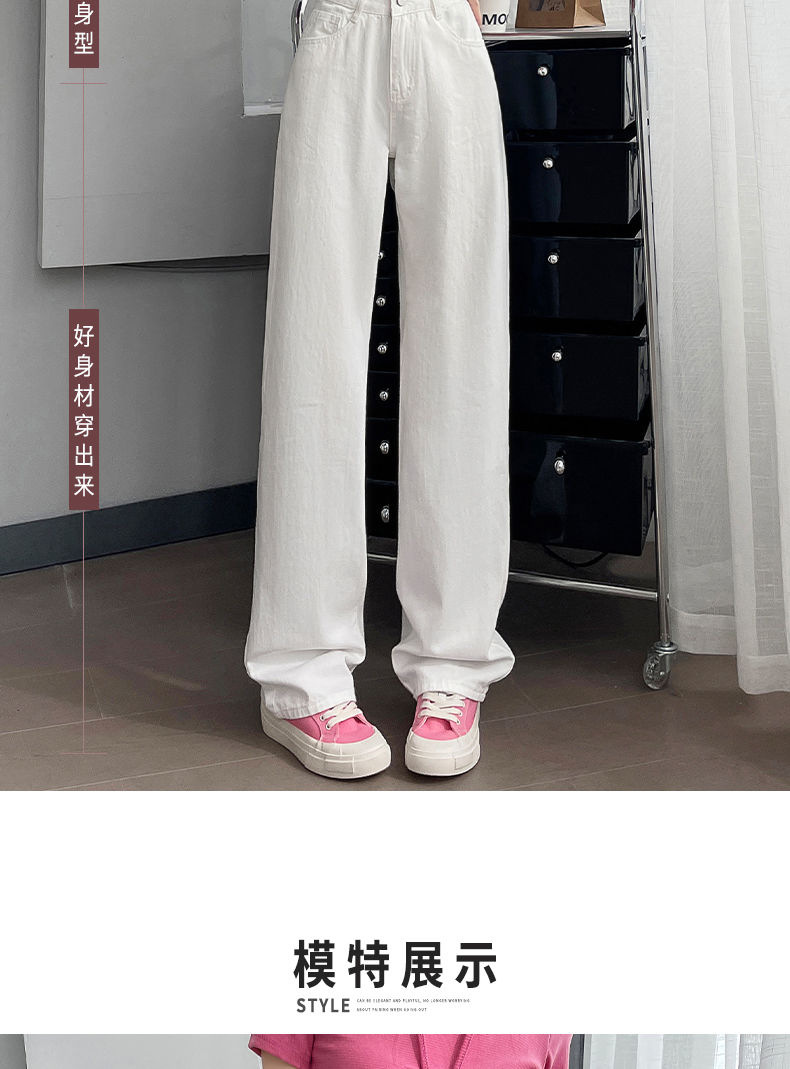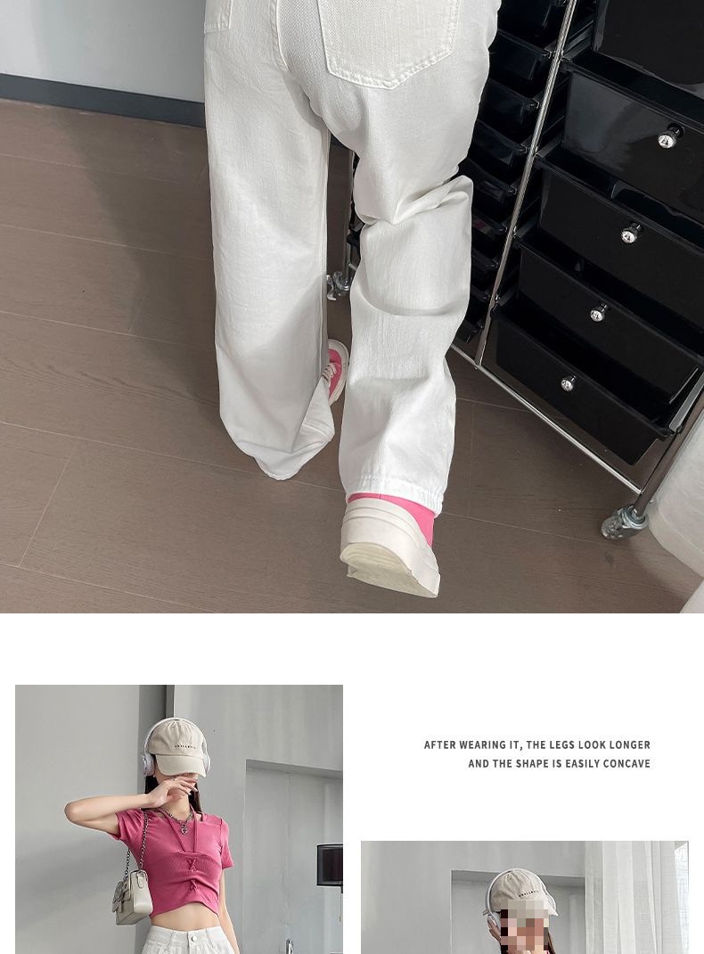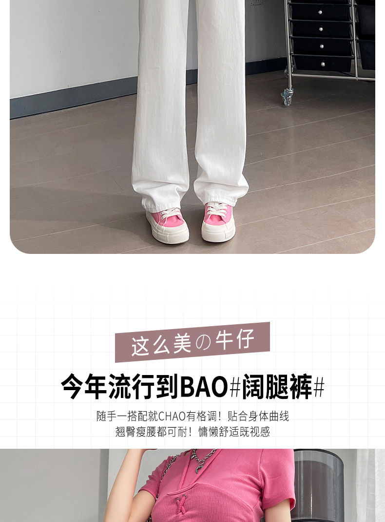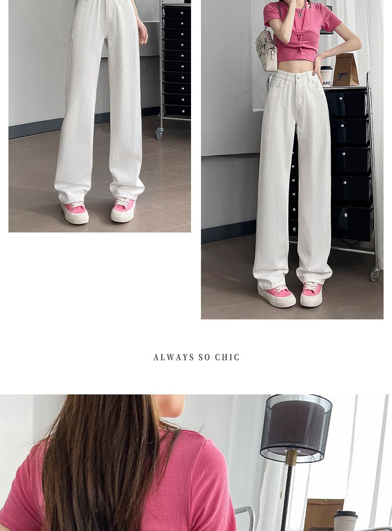 2024 여름 얇은 흰색 넓은 다리 청바지 여성의 플러스 사이즈 높은 허리 느슨한 슬리밍 스트레이트 바지스토어 가기