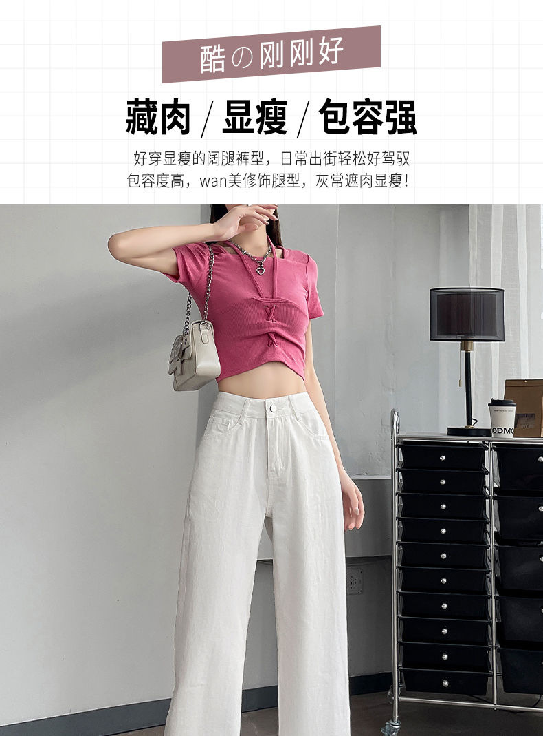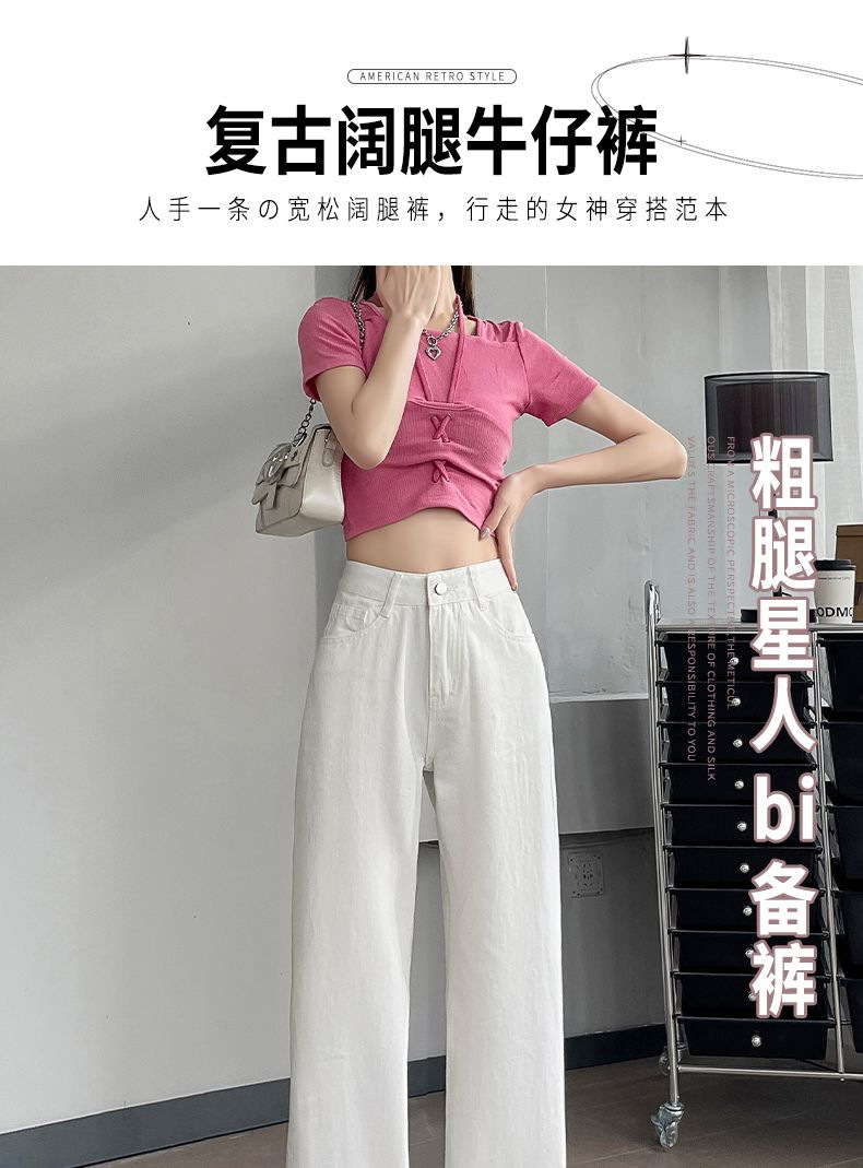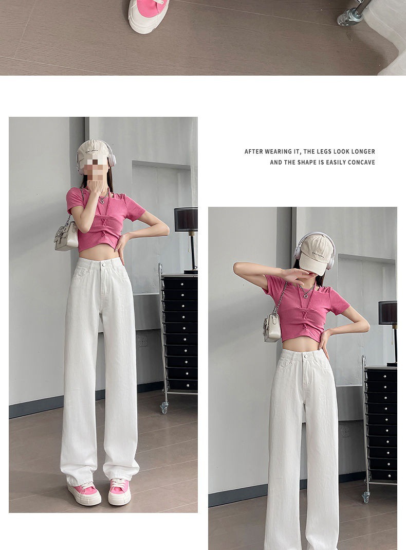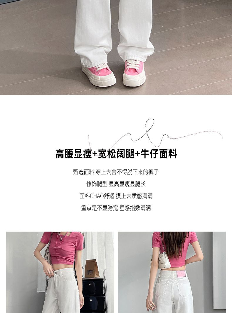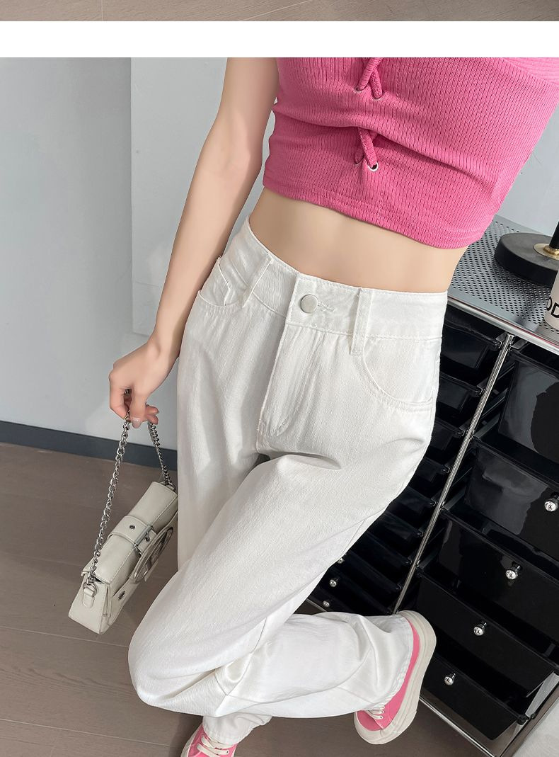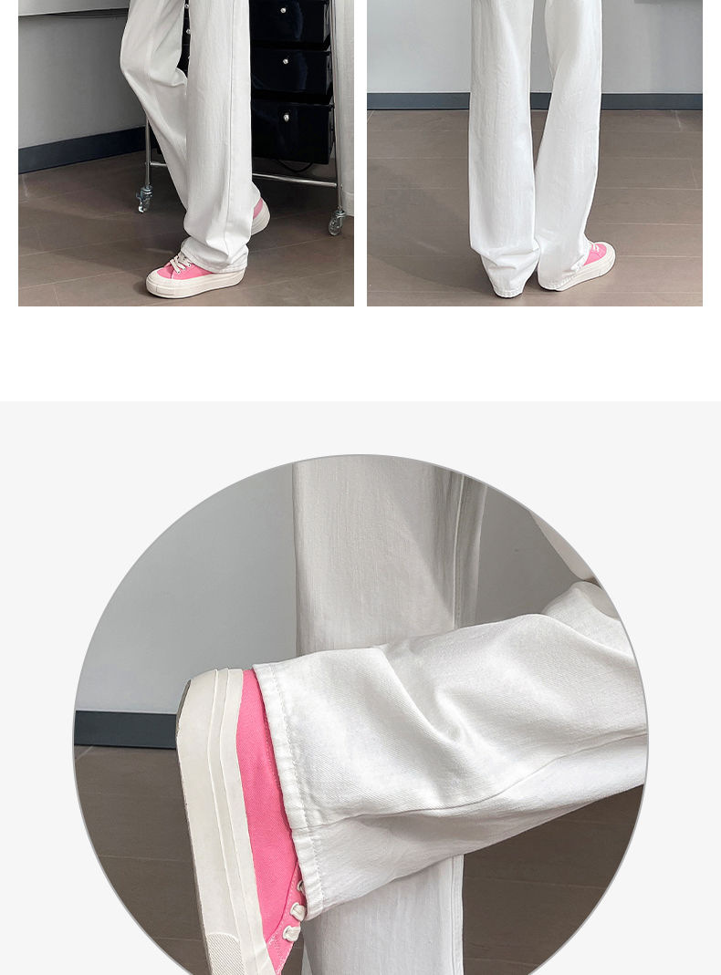 2024 여름 얇은 흰색 넓은 다리 청바지 여성의 플러스 사이즈 높은 허리 느슨한 슬리밍 스트레이트 바지스토어 가기
