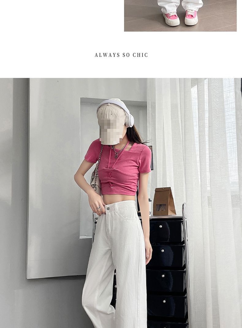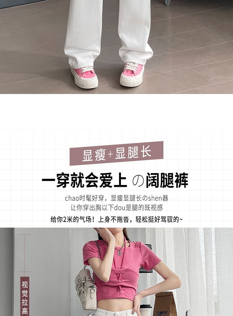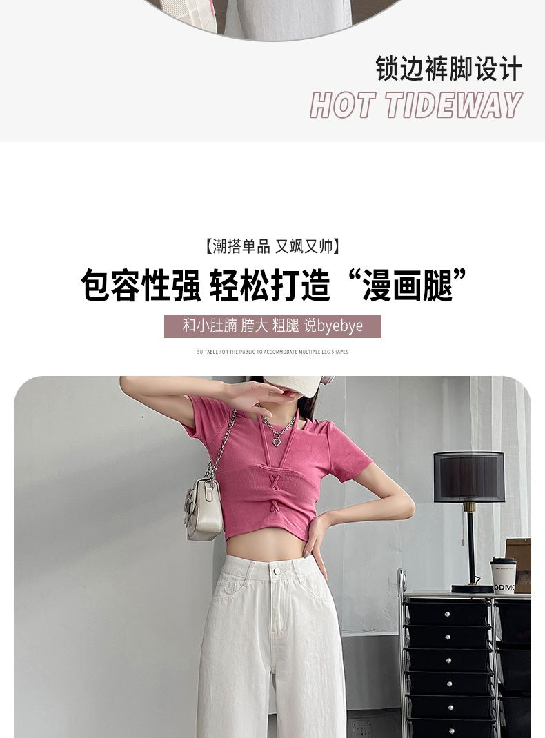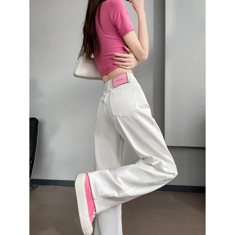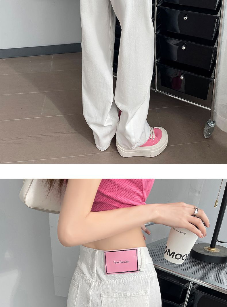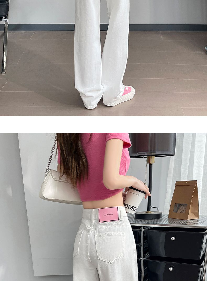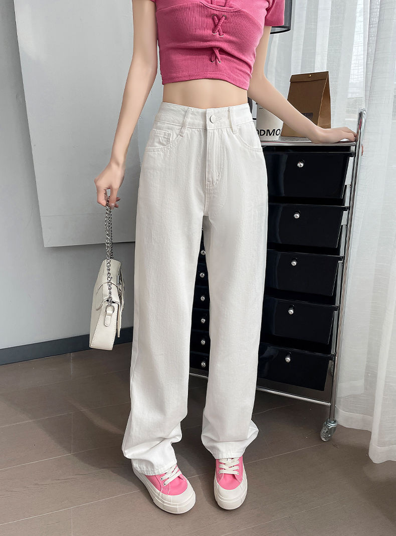 2024 여름 얇은 흰색 넓은 다리 청바지 여성의 플러스 사이즈 높은 허리 느슨한 슬리밍 스트레이트 바지스토어 가기