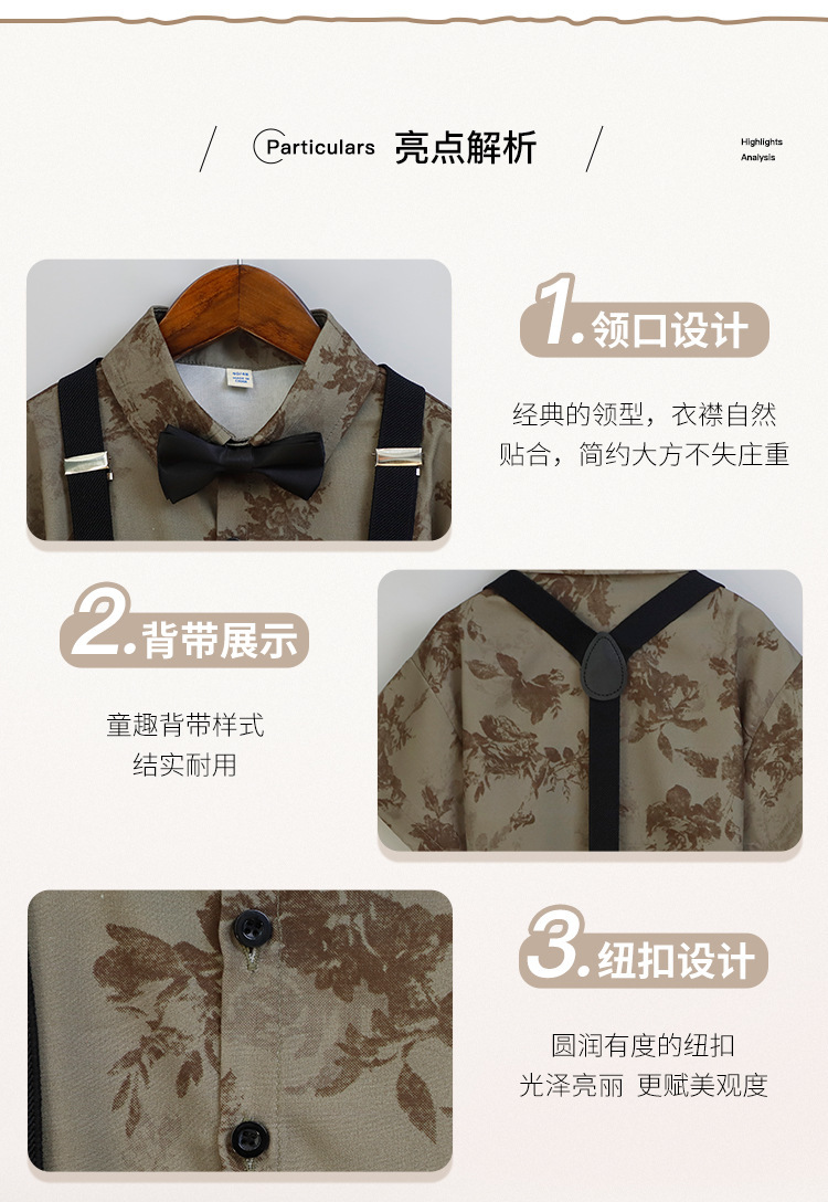 여름 소년의 새로운 중국 인쇄 국가 스타일 의상 어린이 호스트 원피스 복고풍에 세트 소년 멜빵