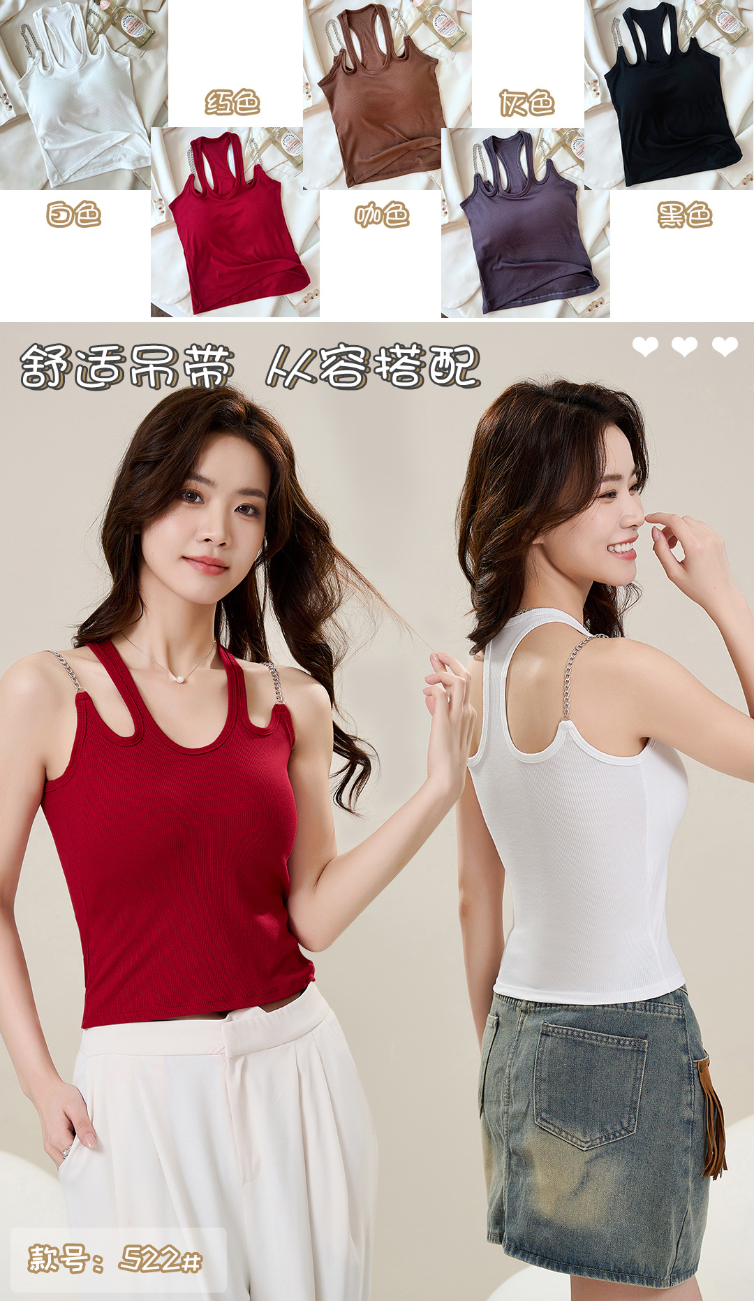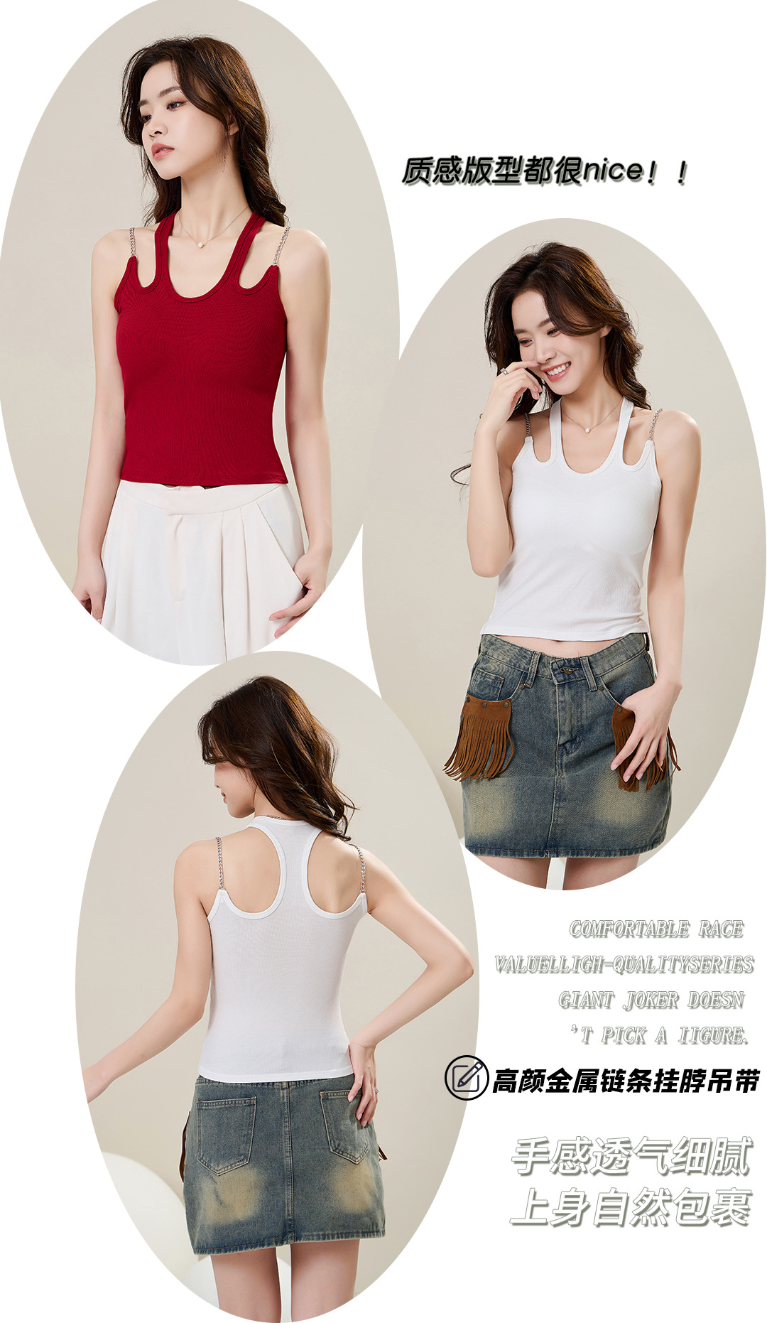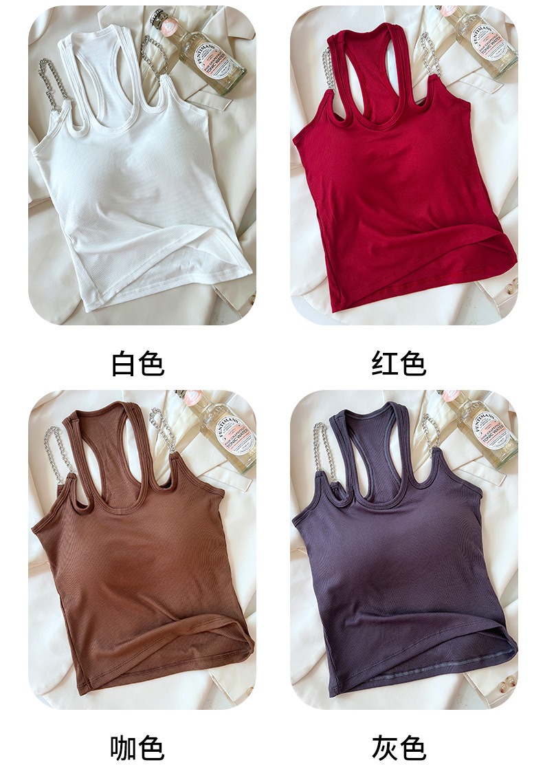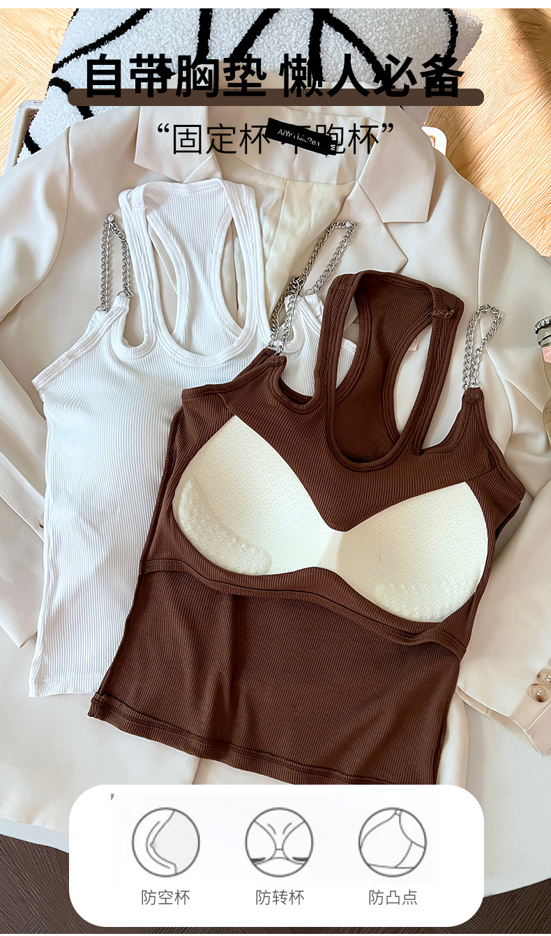 여름 새로운 스파이스 걸스 카미 솔 여성 아우터 웨어 체인 섹시한 벨트 가슴 패드 아름다운 백 독특한 기본 탑 착용스토어 가기