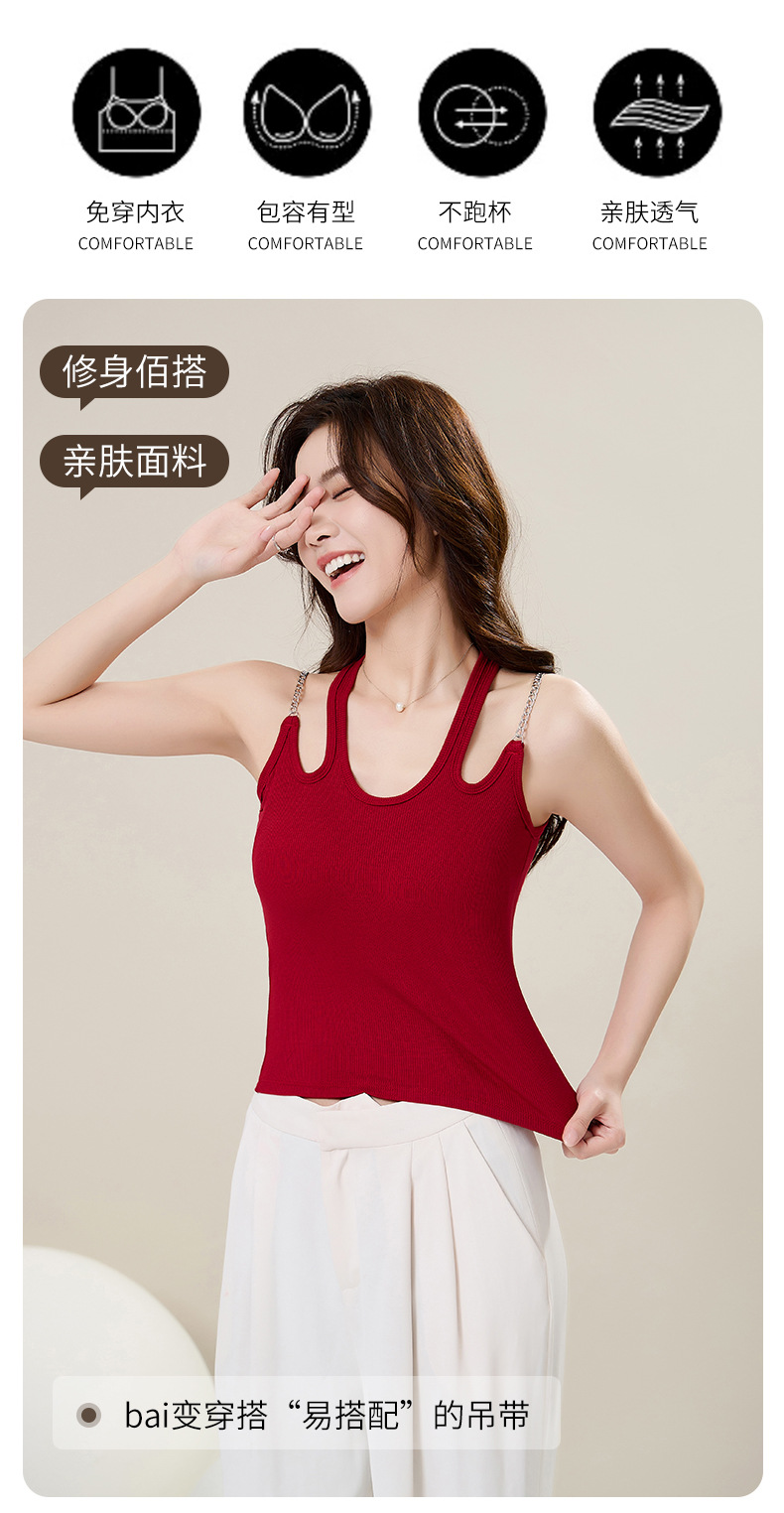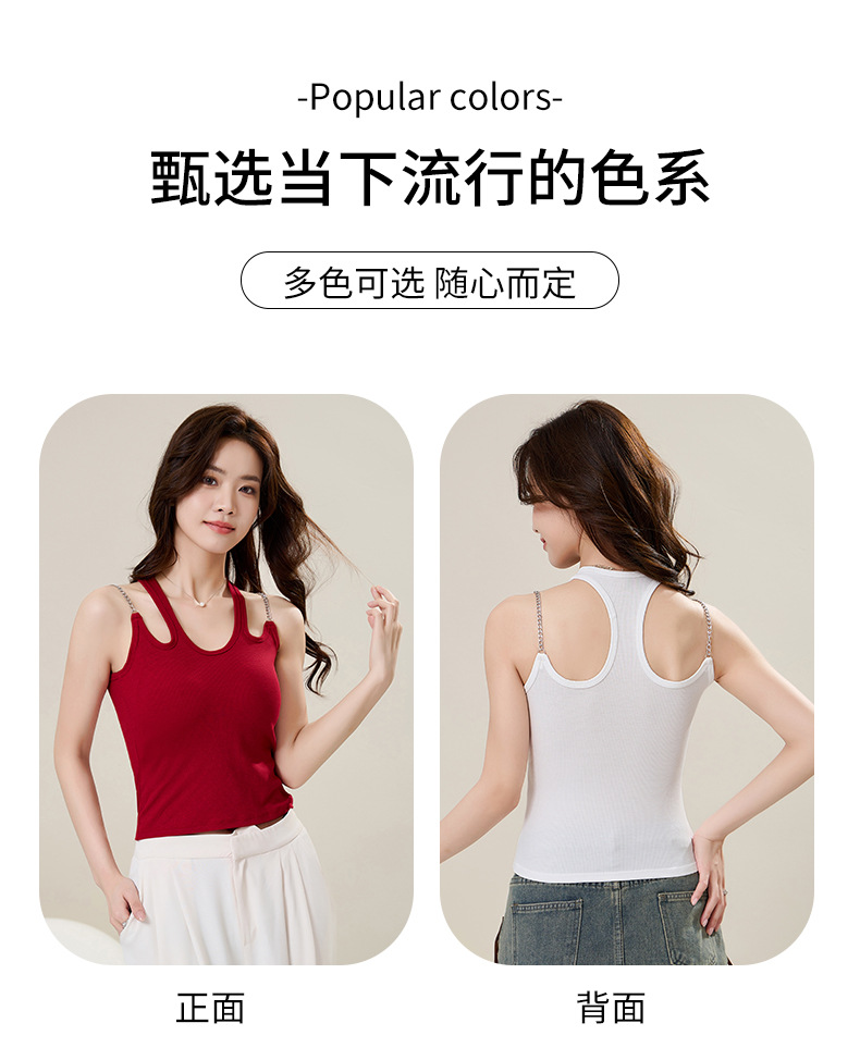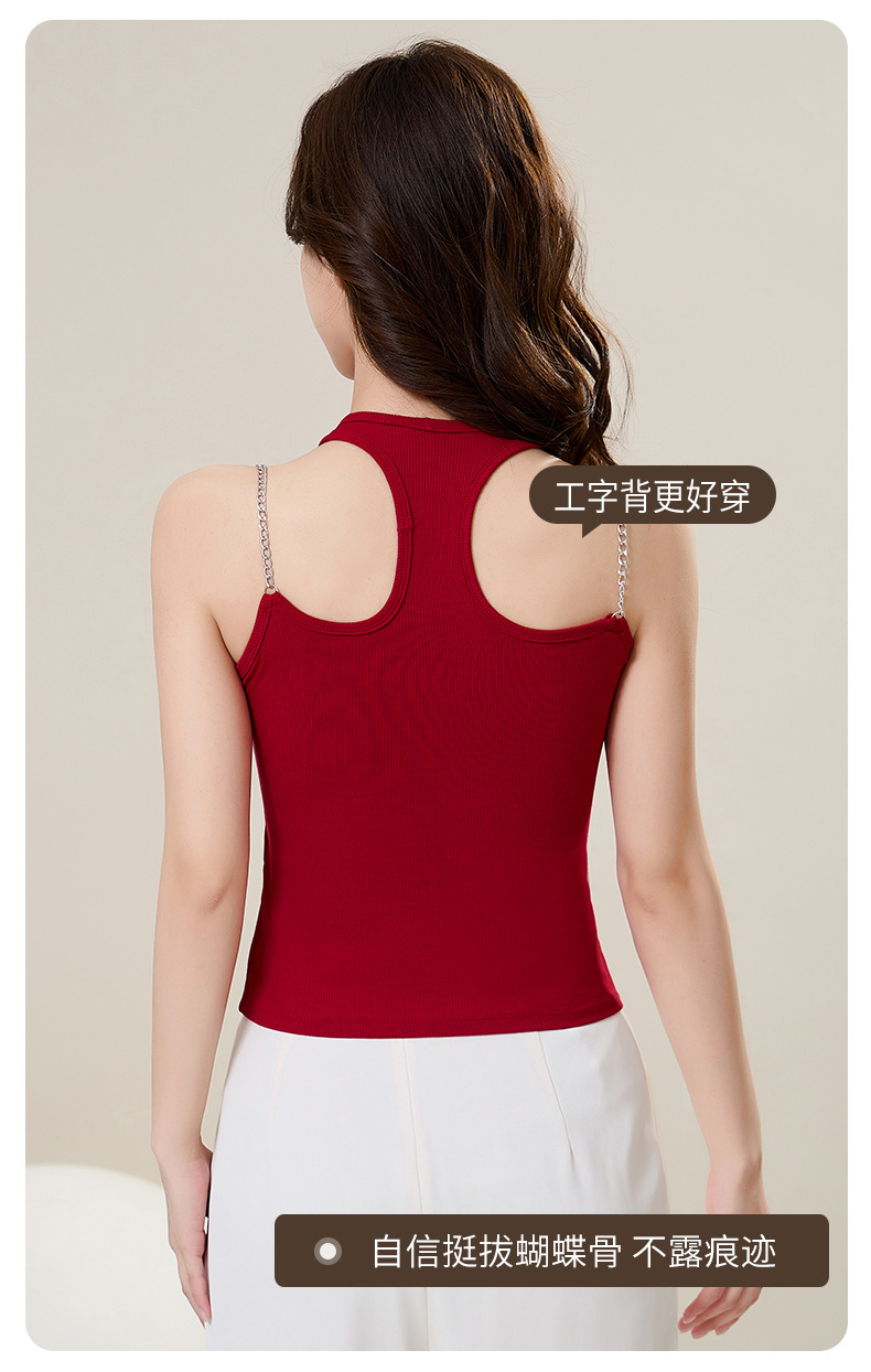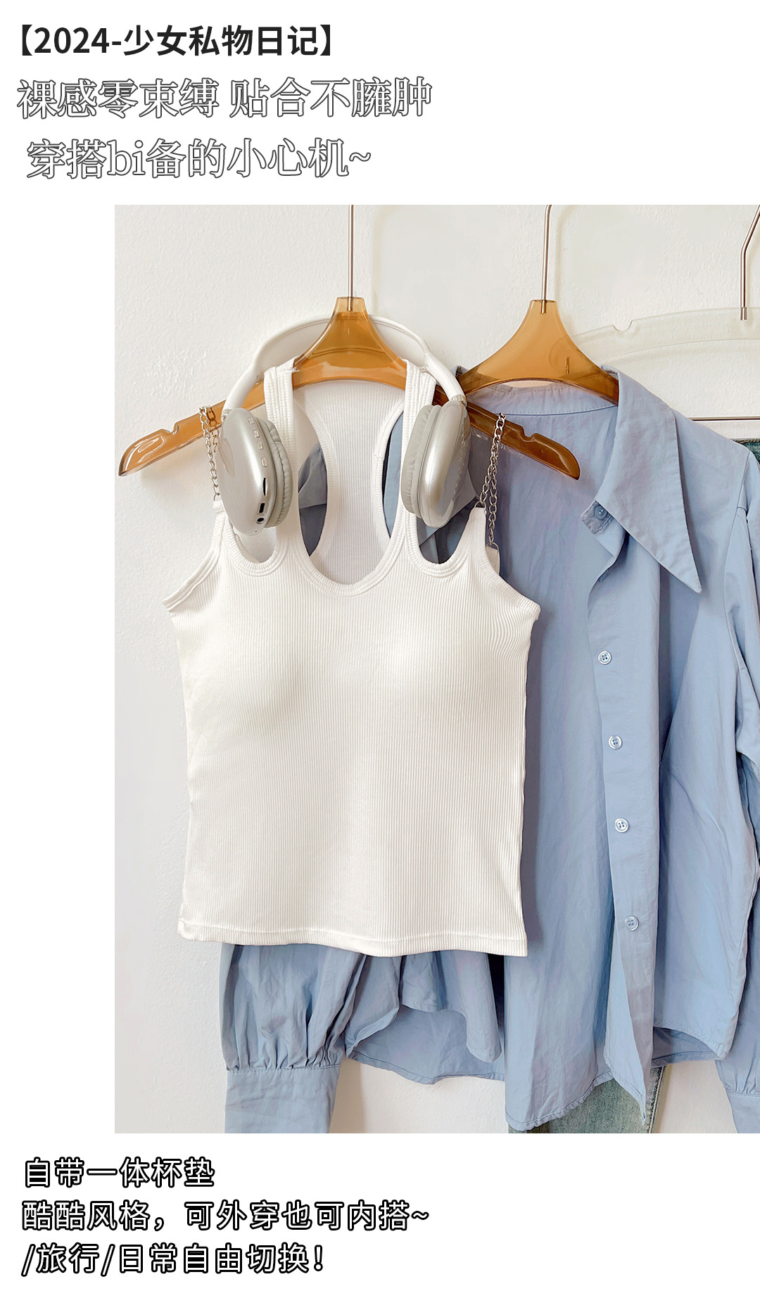 여름 새로운 스파이스 걸스 카미 솔 여성 아우터 웨어 체인 섹시한 벨트 가슴 패드 아름다운 백 독특한 기본 탑 착용스토어 가기