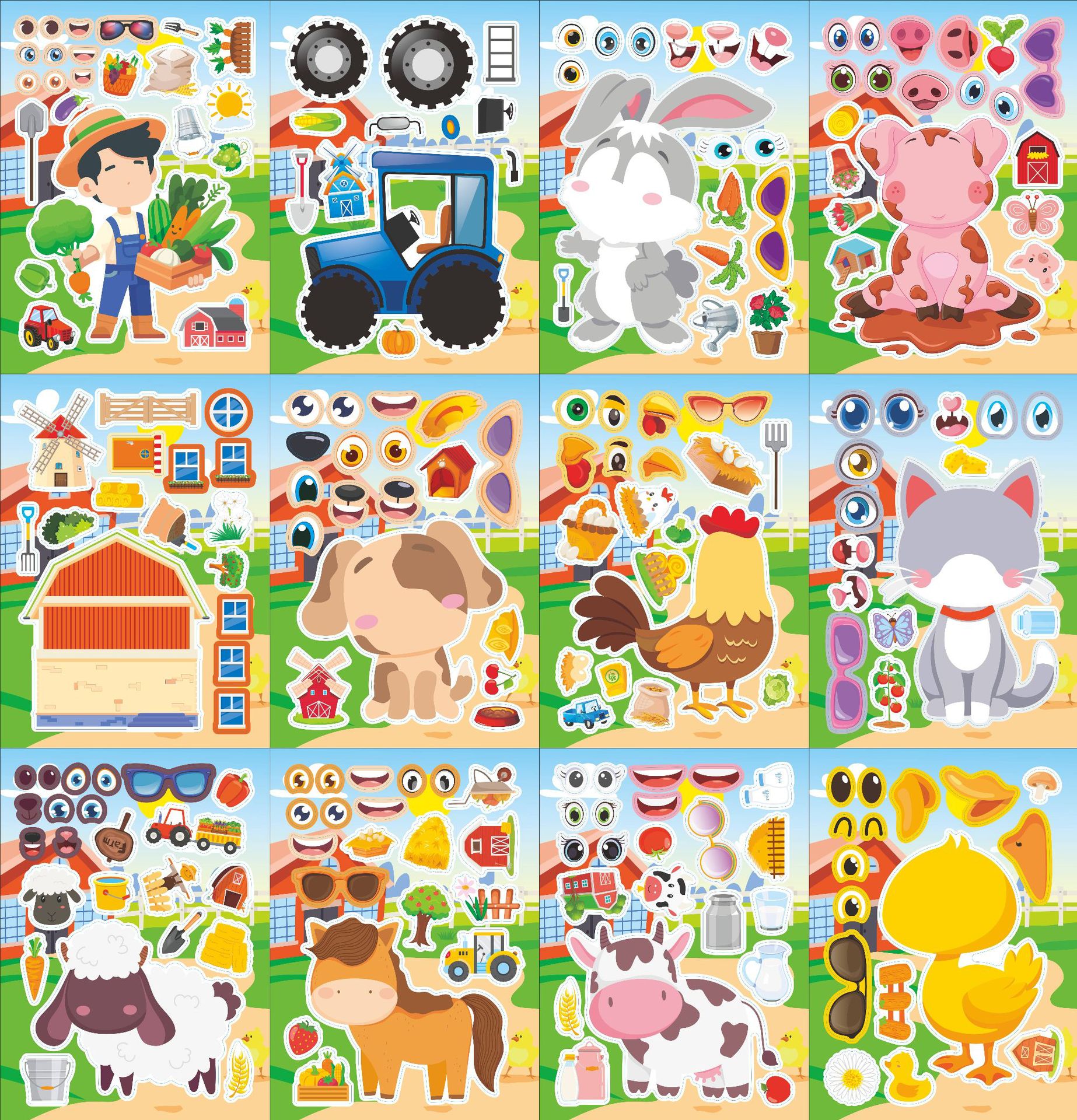 CM2406004 어린이 만화 농장 동물 부모-자식 대화 형 퍼즐 손 계정 DIY 얼굴 스티커스토어 가기