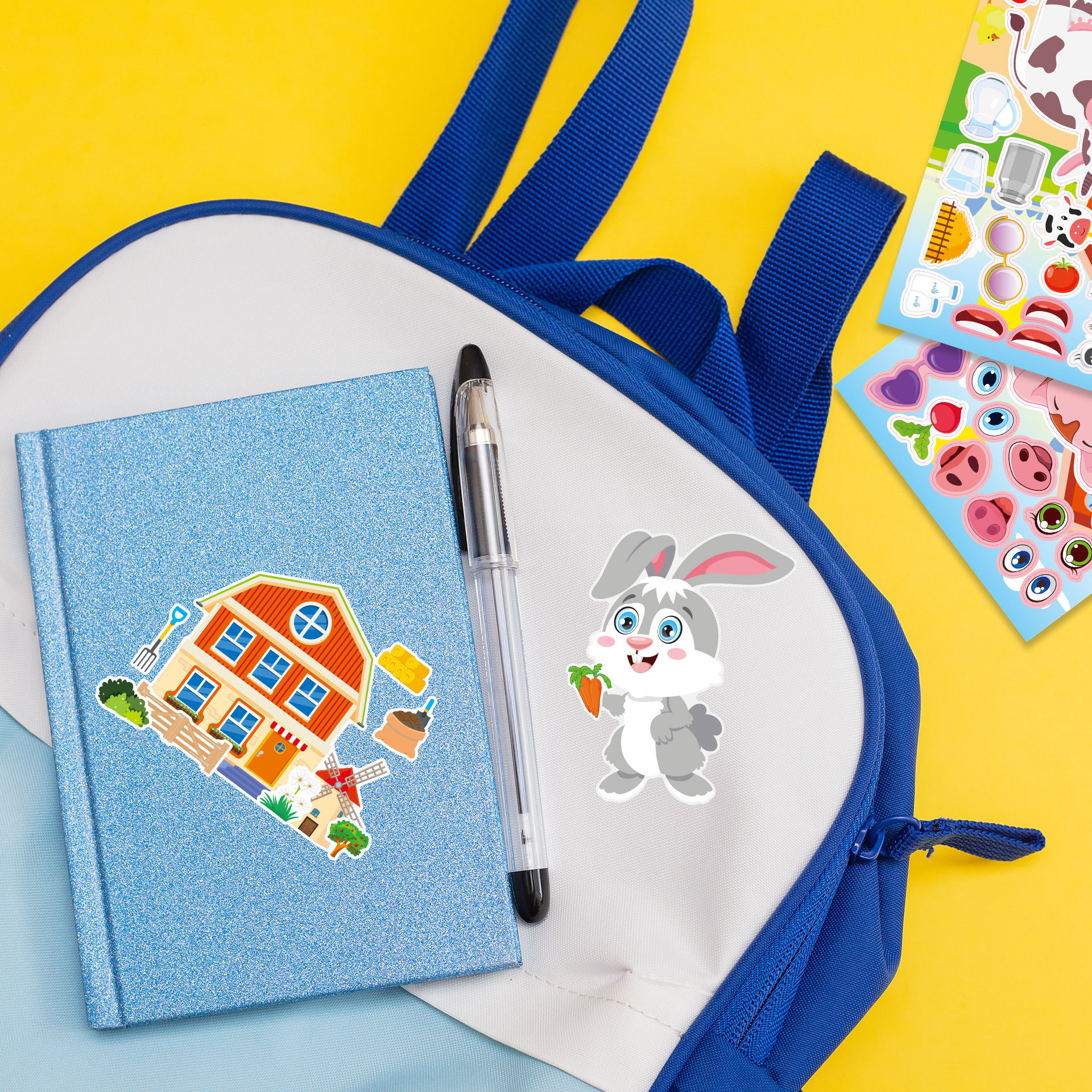 CM2406004 어린이 만화 농장 동물 부모-자식 대화 형 퍼즐 손 계정 DIY 얼굴 스티커