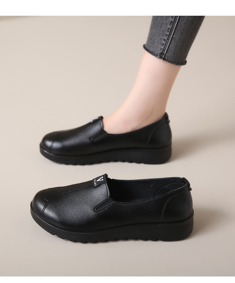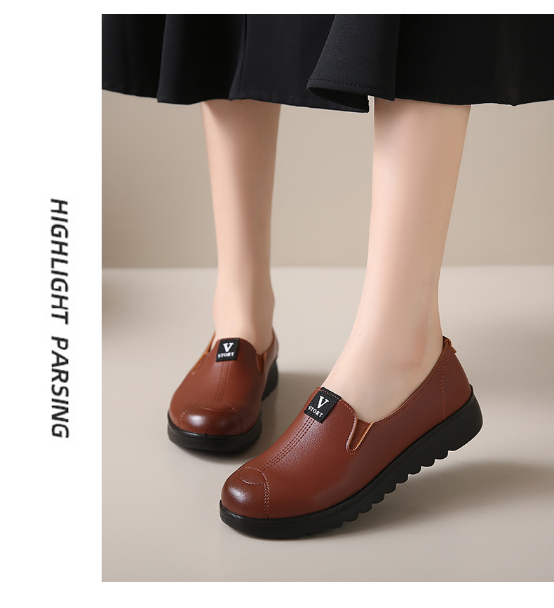 중년 및 노인 여성 신발 봄 새로운 가죽 캐주얼 야외 신발 싱글 레이어 신발 로우 탑 소프트 솔 슬립 온 편안한 엄마 신발