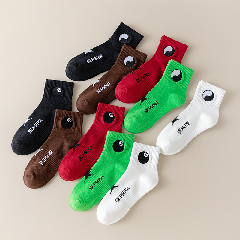 새로운 블랙 8 가십 자수 양말 솔리드 컬러 여름 편지 스케이트 보드 양말 짧은 양말 트렌디 양말 남성 및 여성 Ins 트렌디 양말스토어 가기