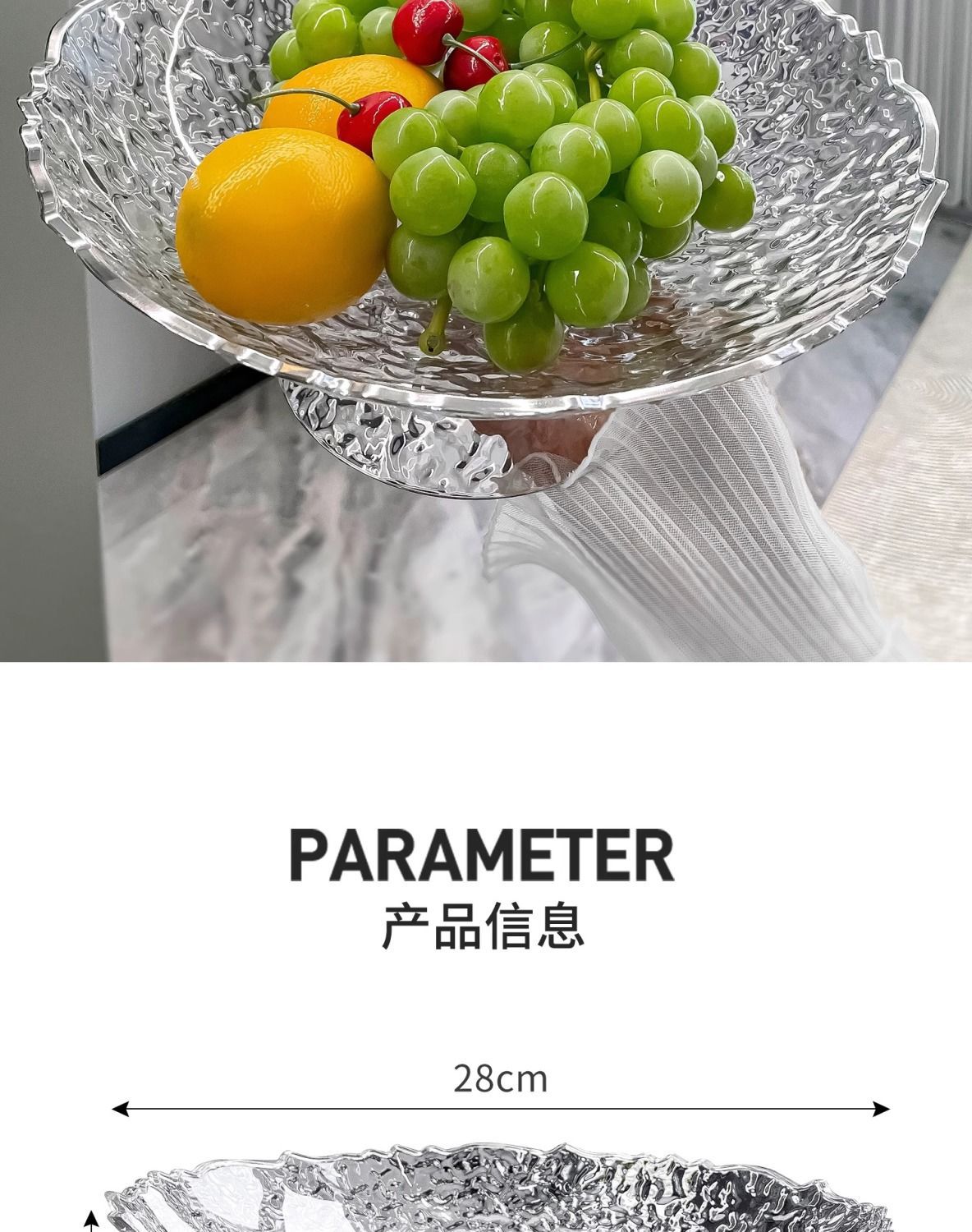 • 질감이 있는 라이트 럭셔리 과일 접시 [1팩] 핫 실버 스타일