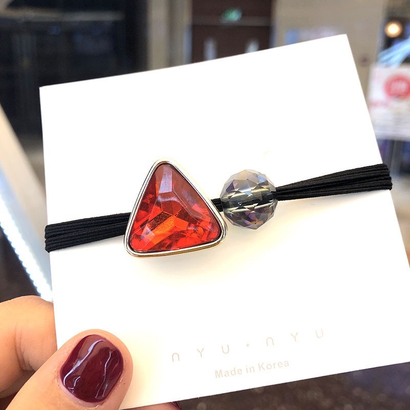 봄 여름 한국 스타일 헤어 링 한국 동대문 인터넷 빨간 머리 로프 크리스탈 다이아몬드 삼각형 다이아몬드 가죽 재킷 여성의 간단한 다채로운 고무